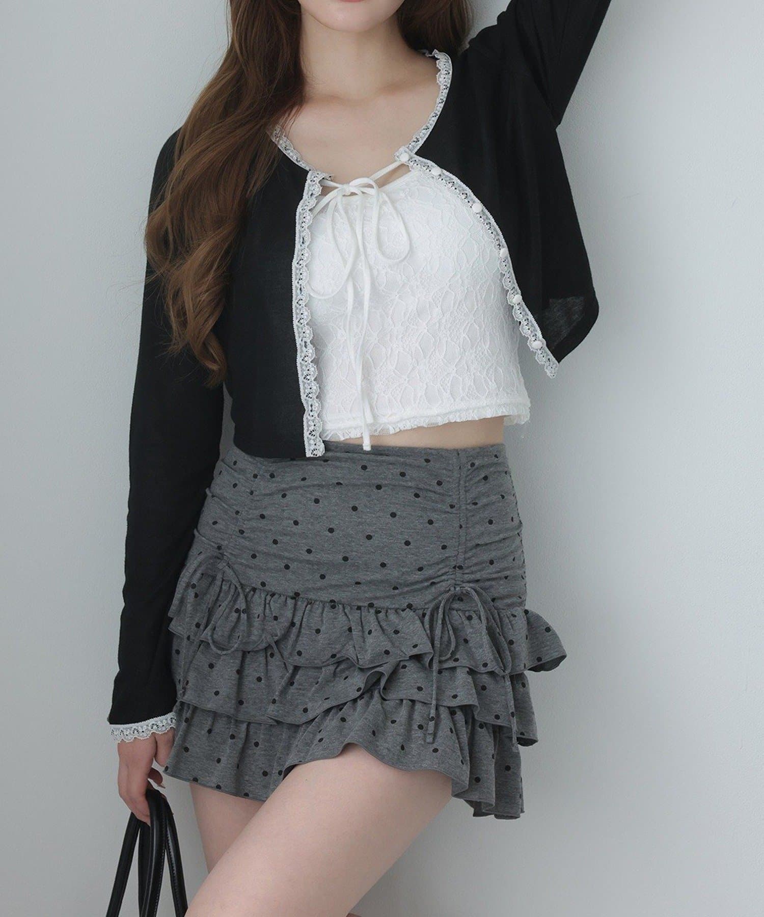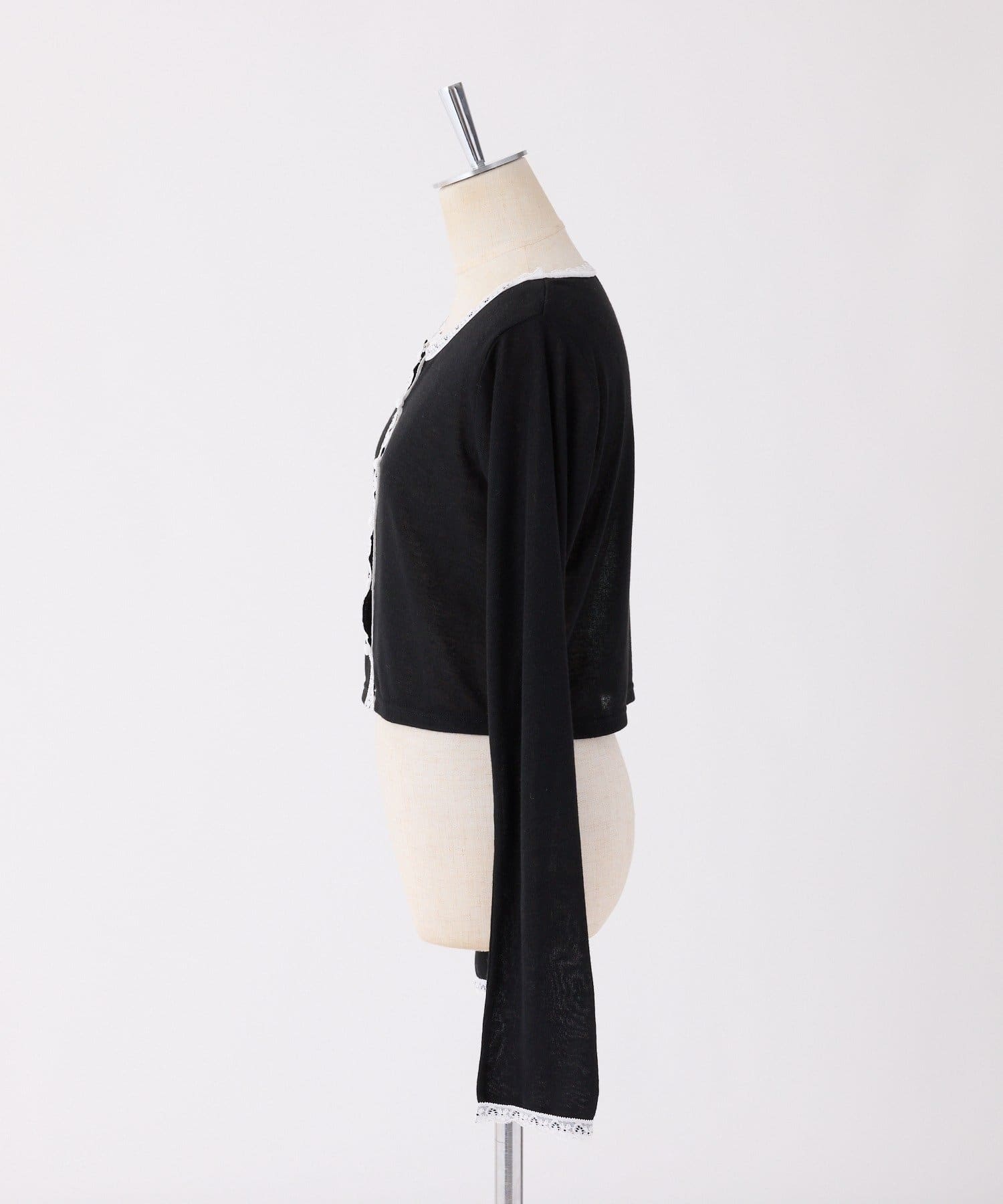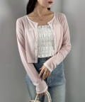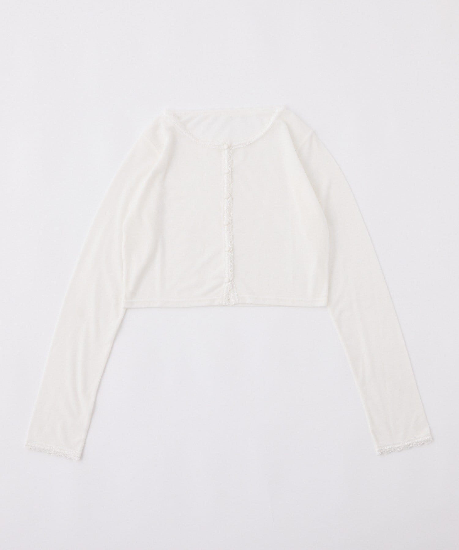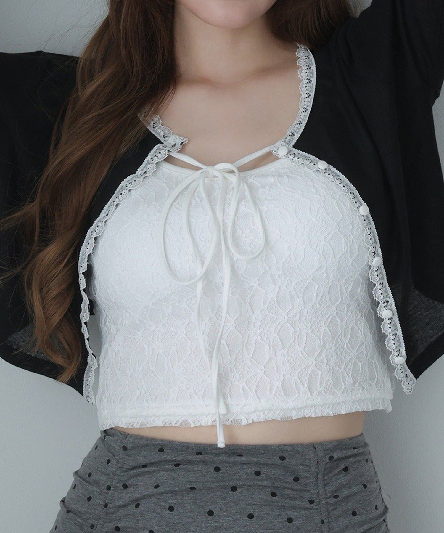 ショート丈でこなれ感があり、レースが華やかさをプラスしてくれるカット素材のカーディガン