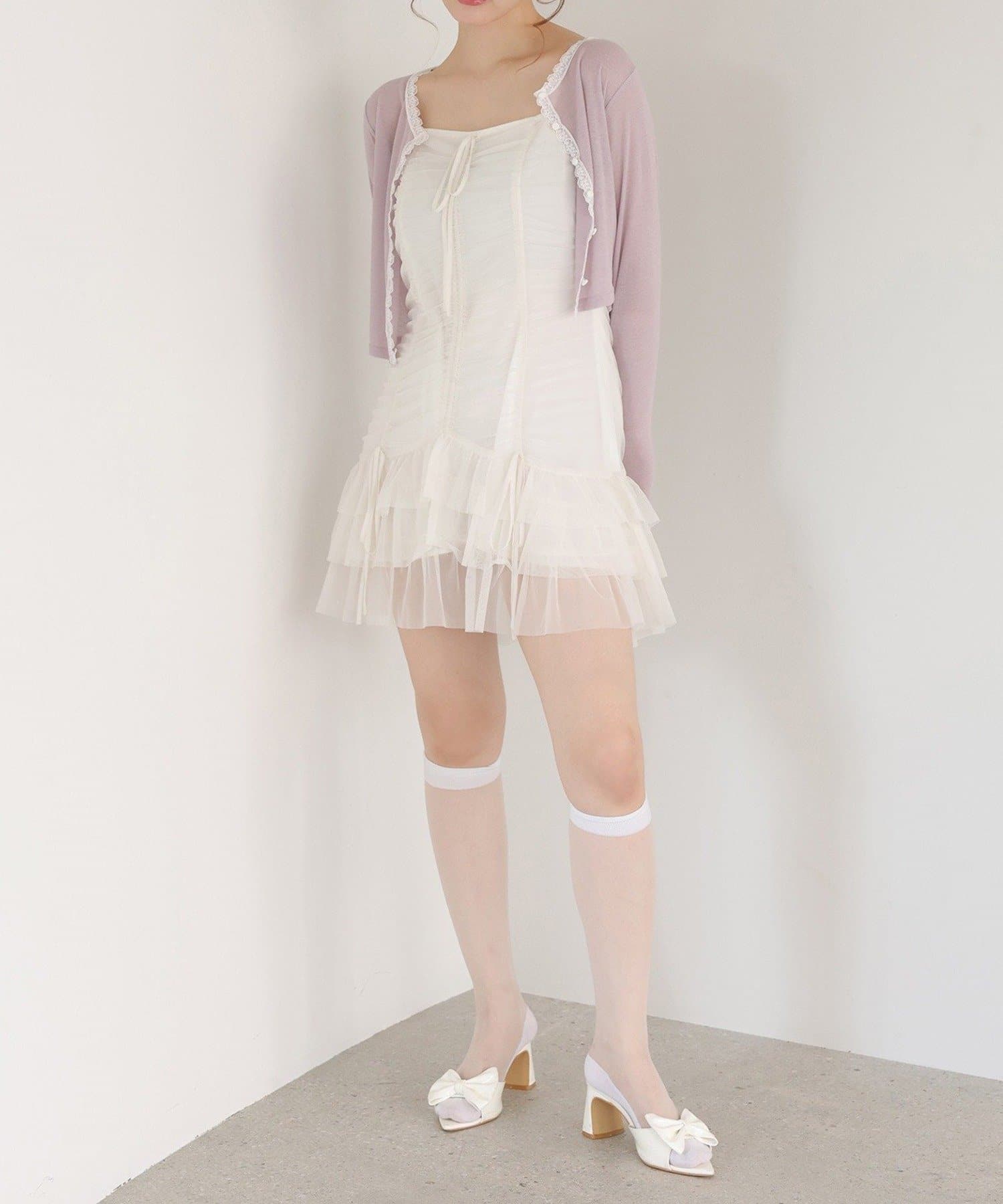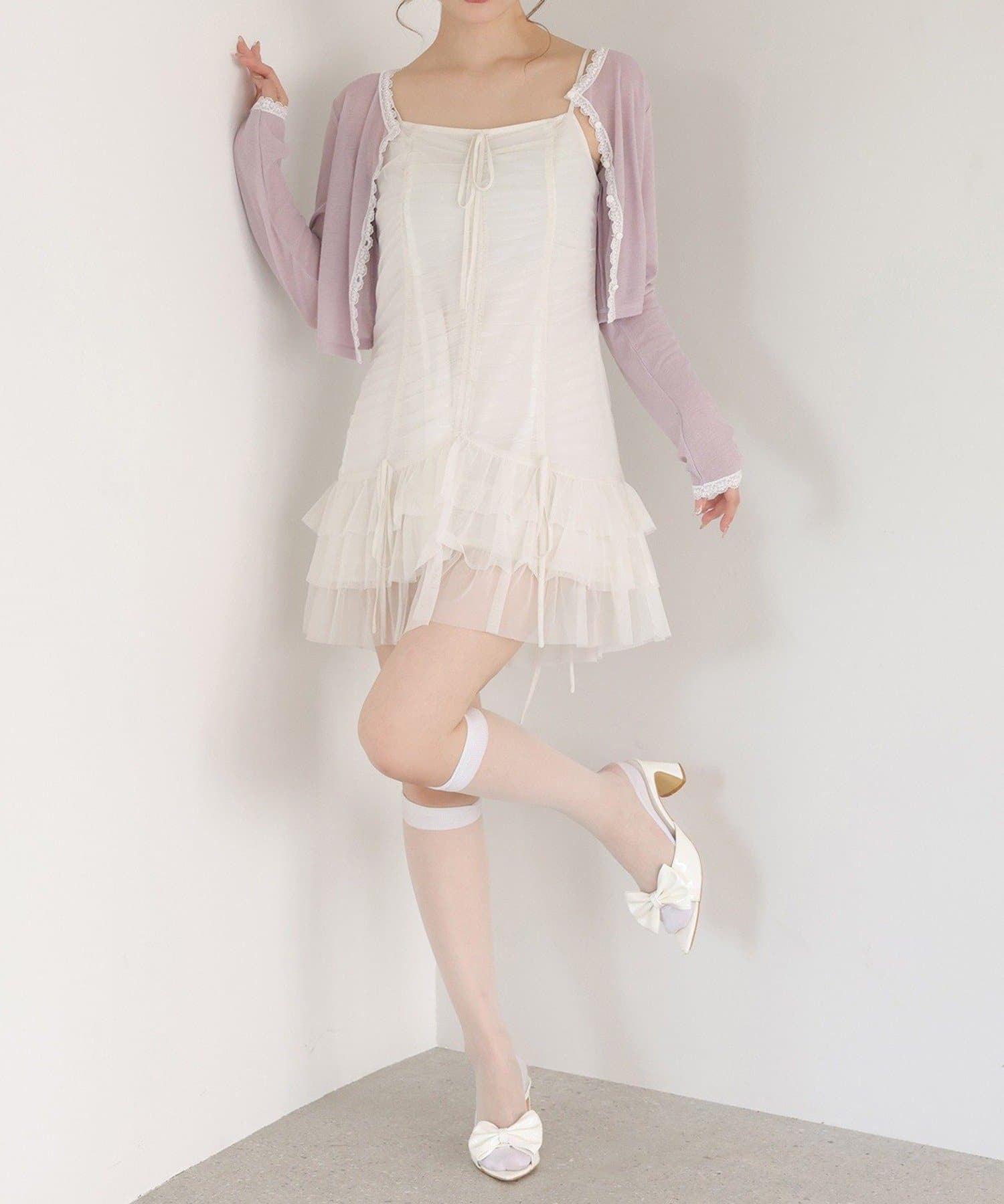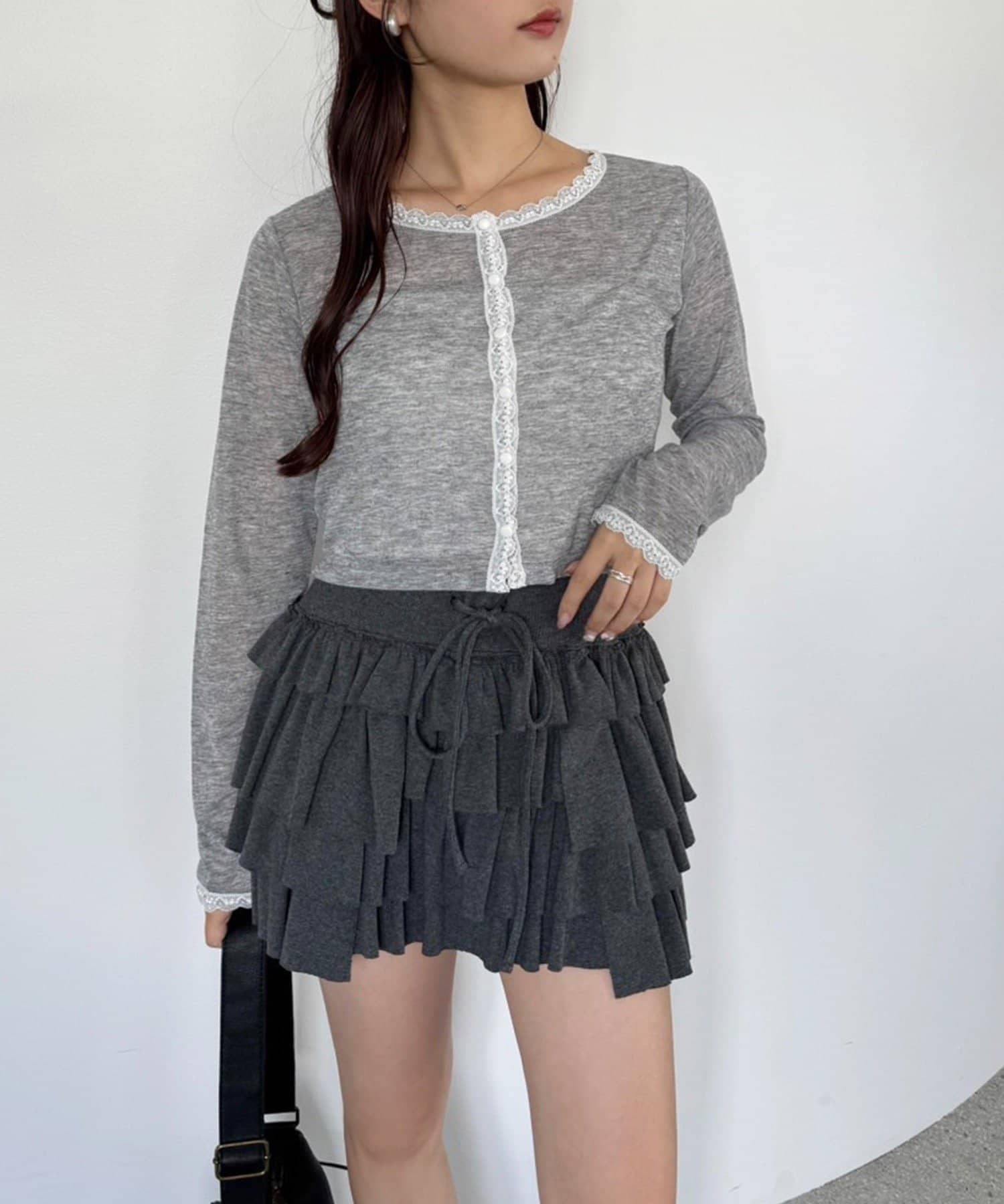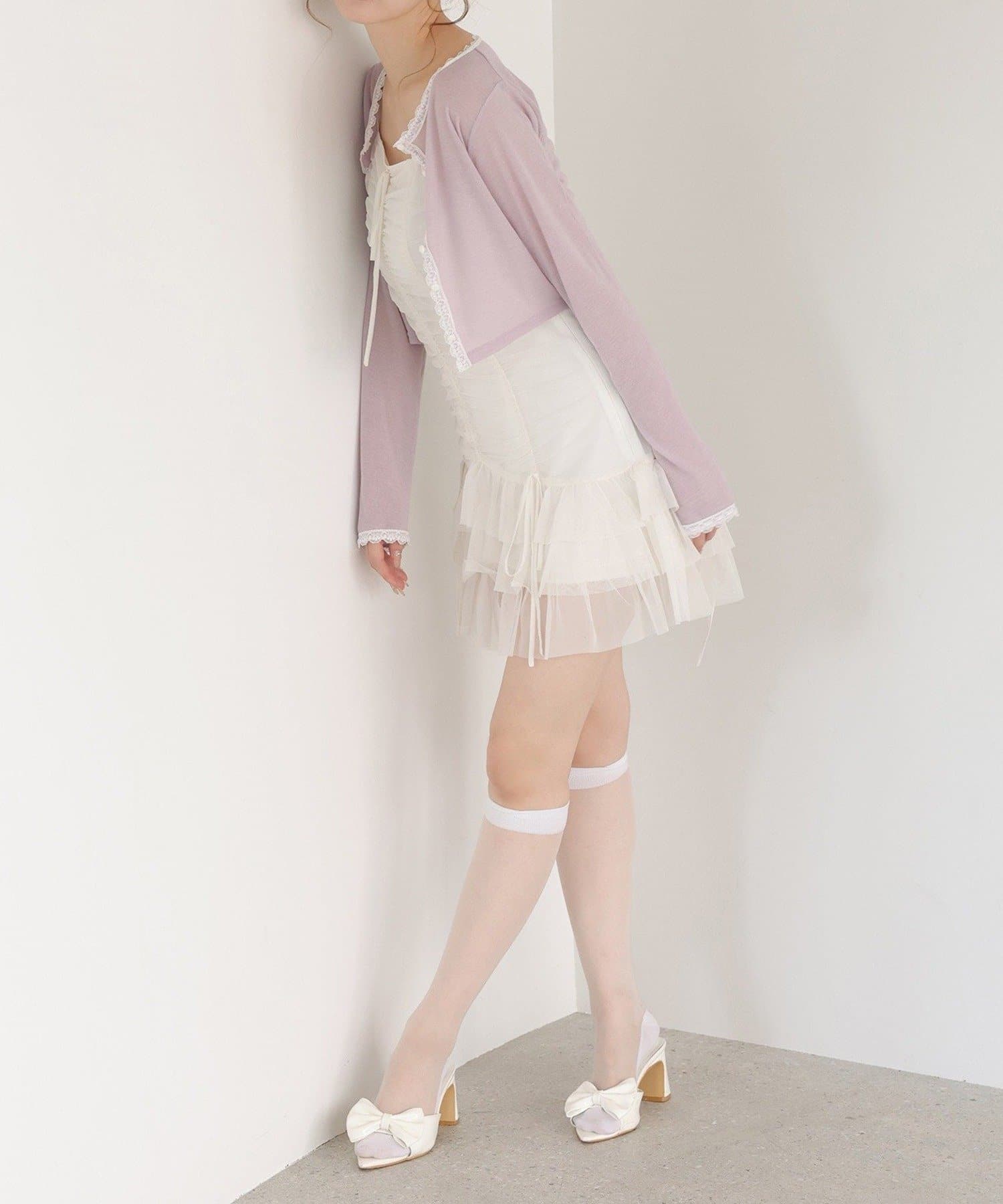 ショート丈でこなれ感があり、レースが華やかさをプラスしてくれるカット素材のカーディガン