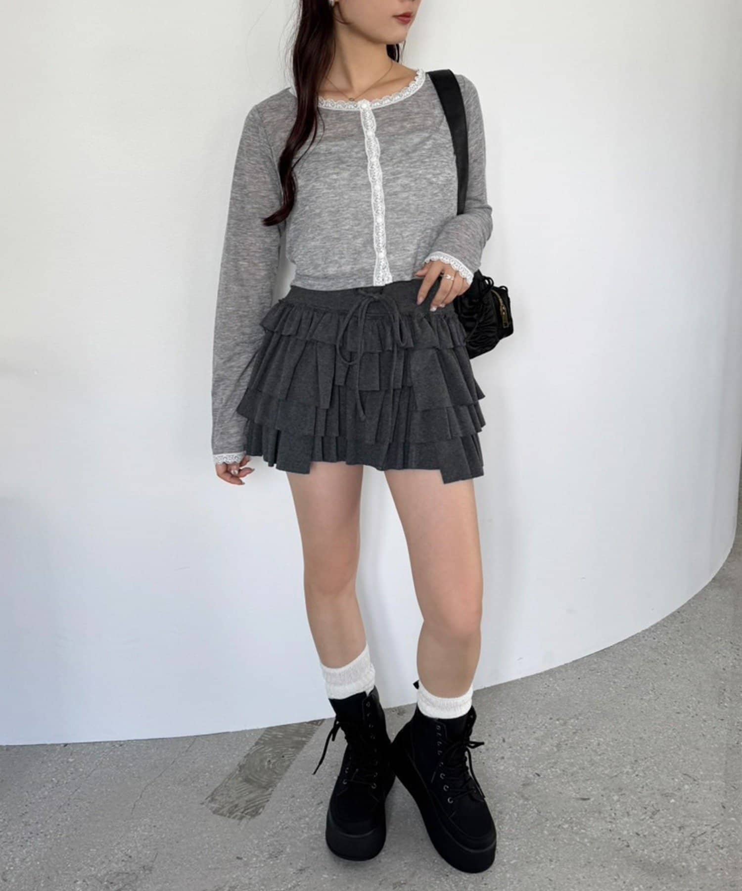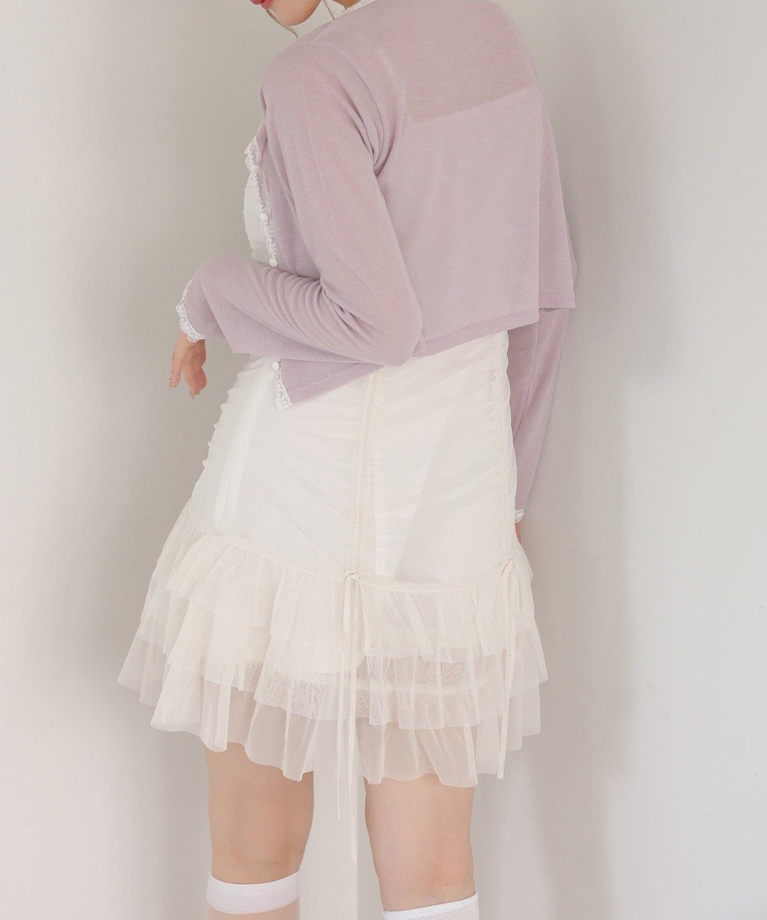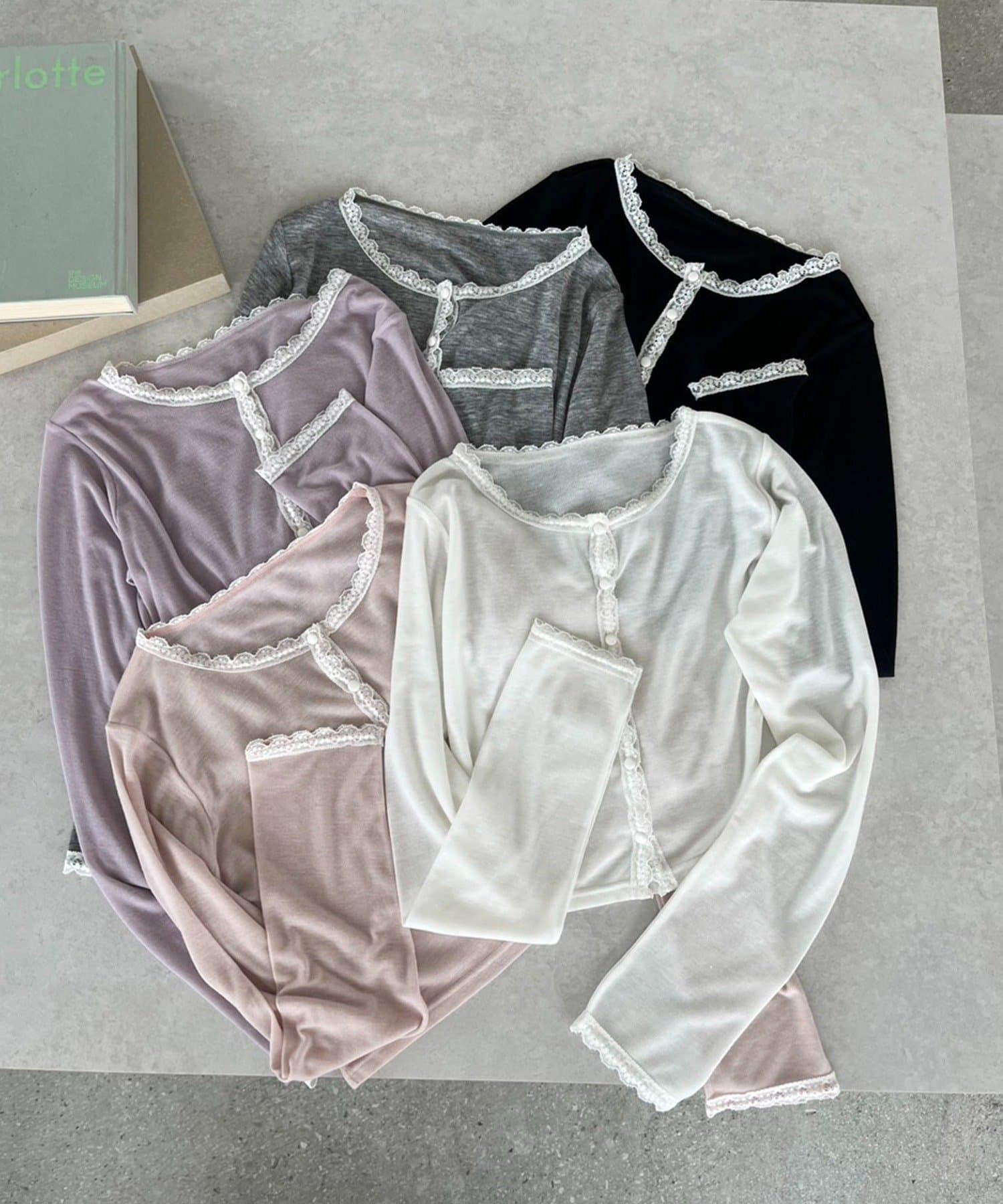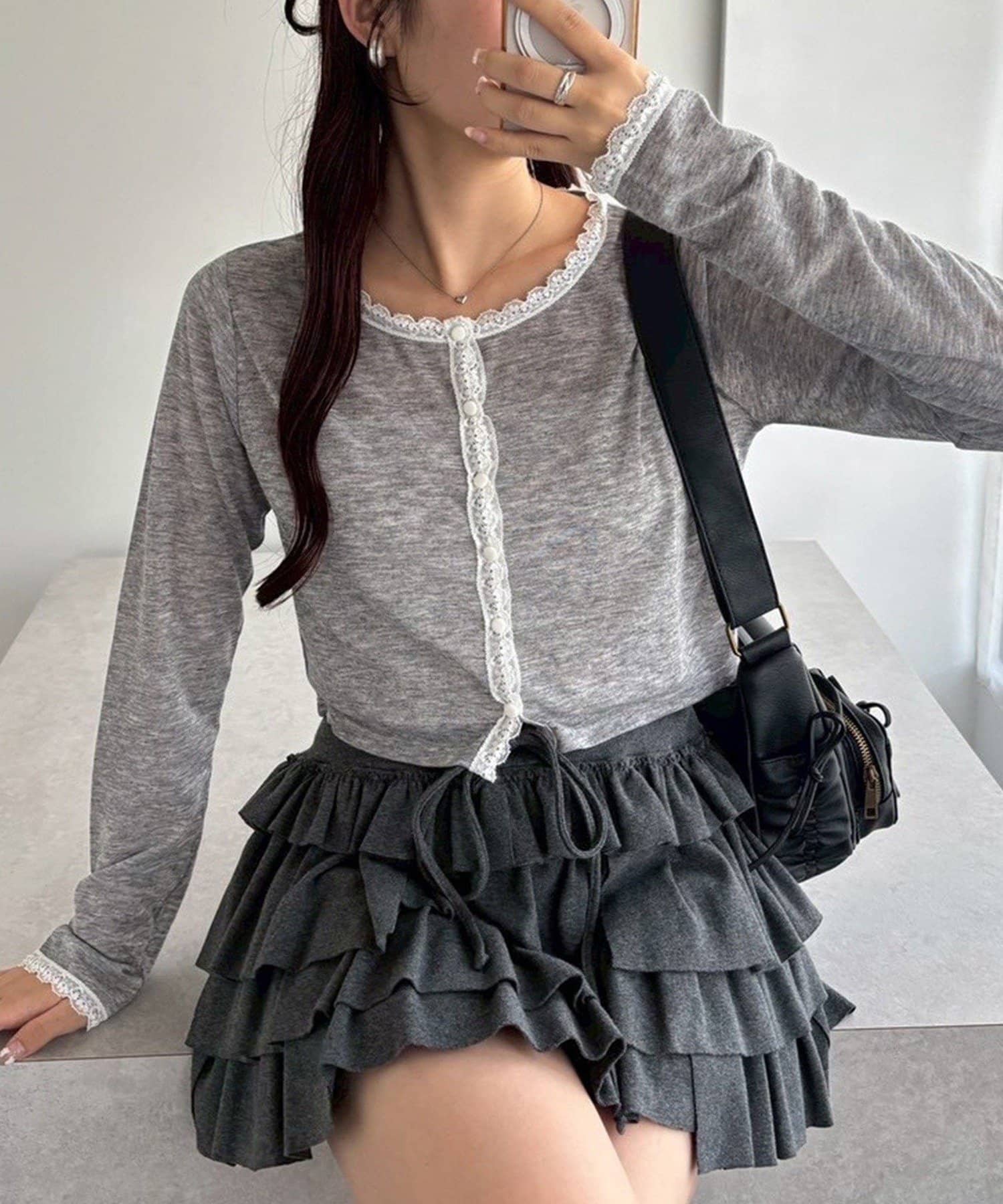 ショート丈でこなれ感があり、レースが華やかさをプラスしてくれるカット素材のカーディガン