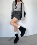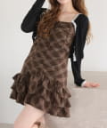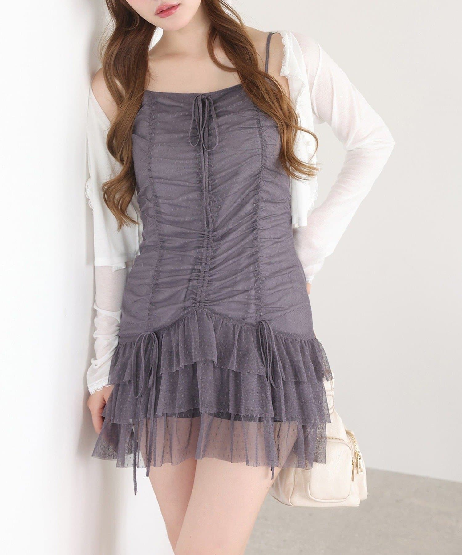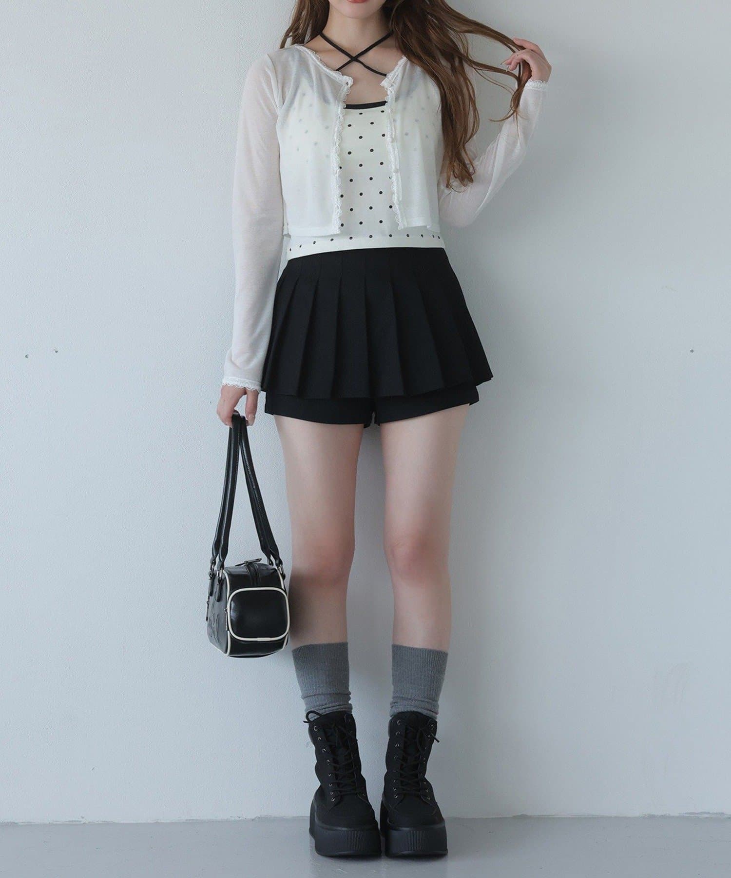 トップスとして着るときは前のボタンを閉じ、中にキャミソールを合わせるのがオススメ。