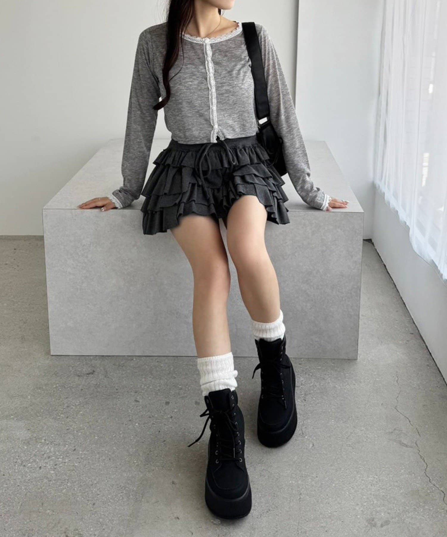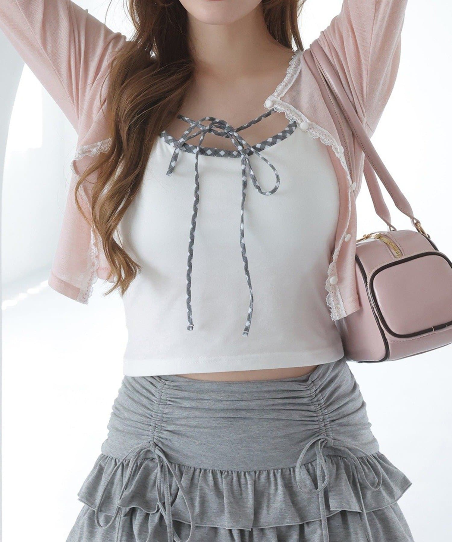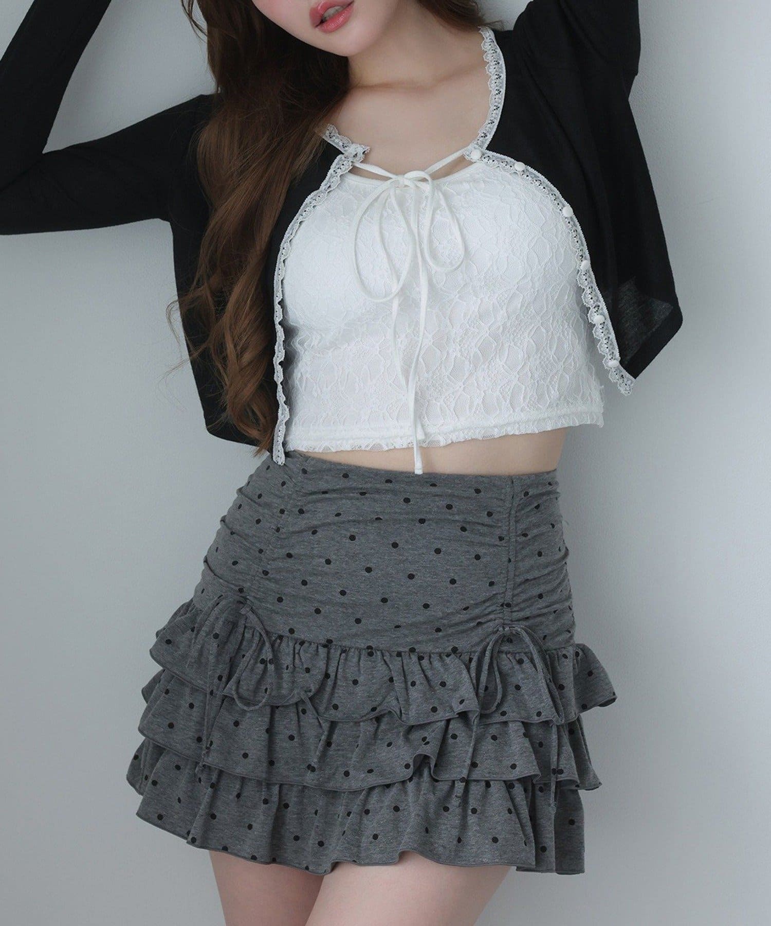 ボレロとしてはもちろん、クロップド丈のトップスとしても着られるマルチなアイテムです。