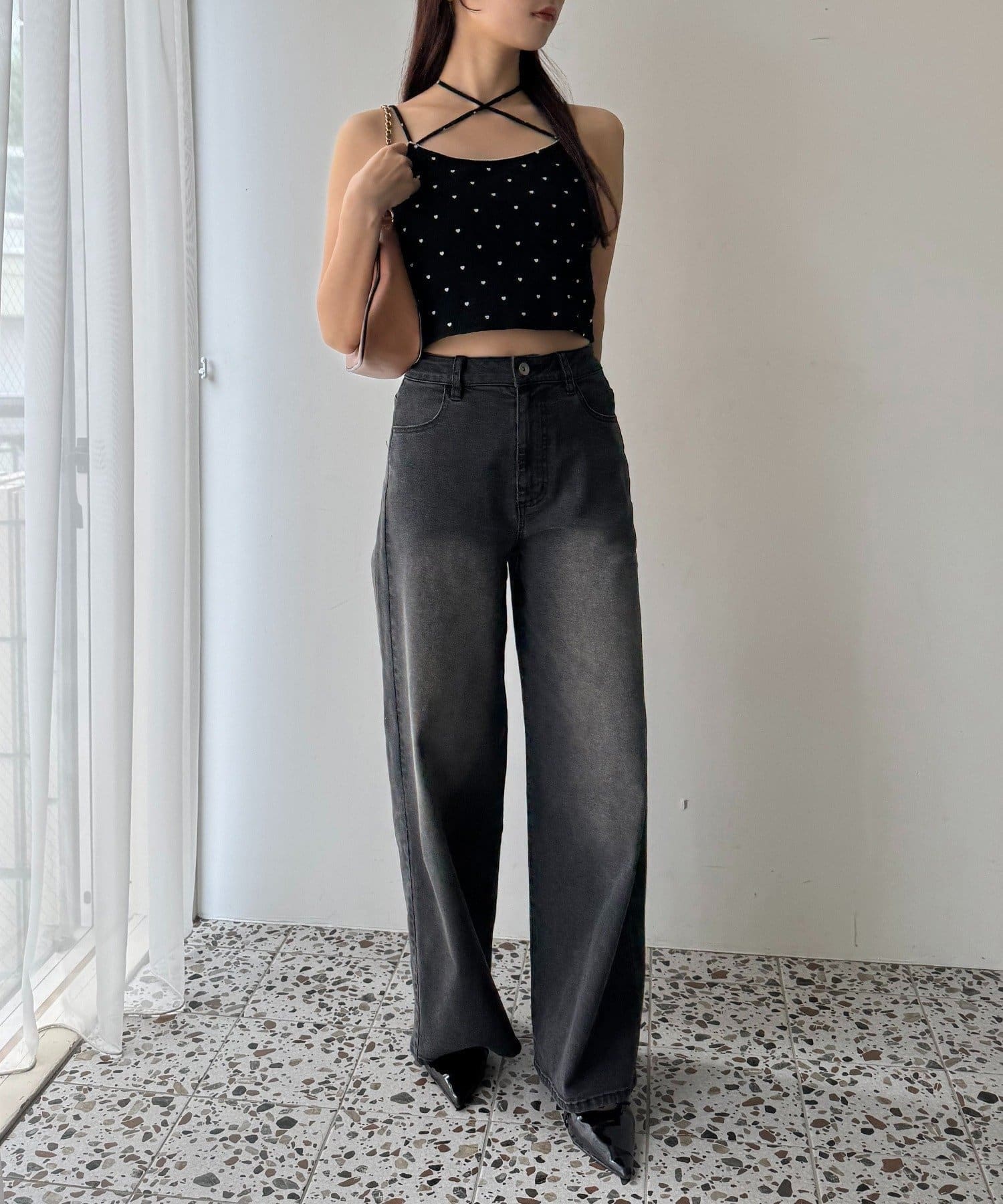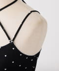 キャミは細めの肩紐で華奢見えし、女性らしさを引き立てます。