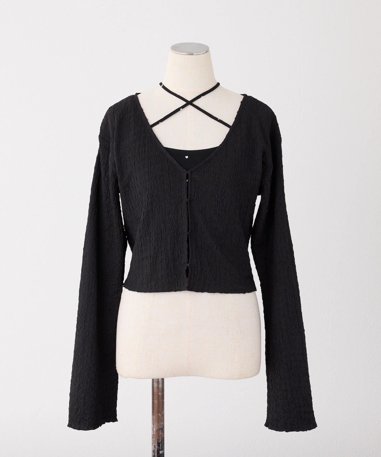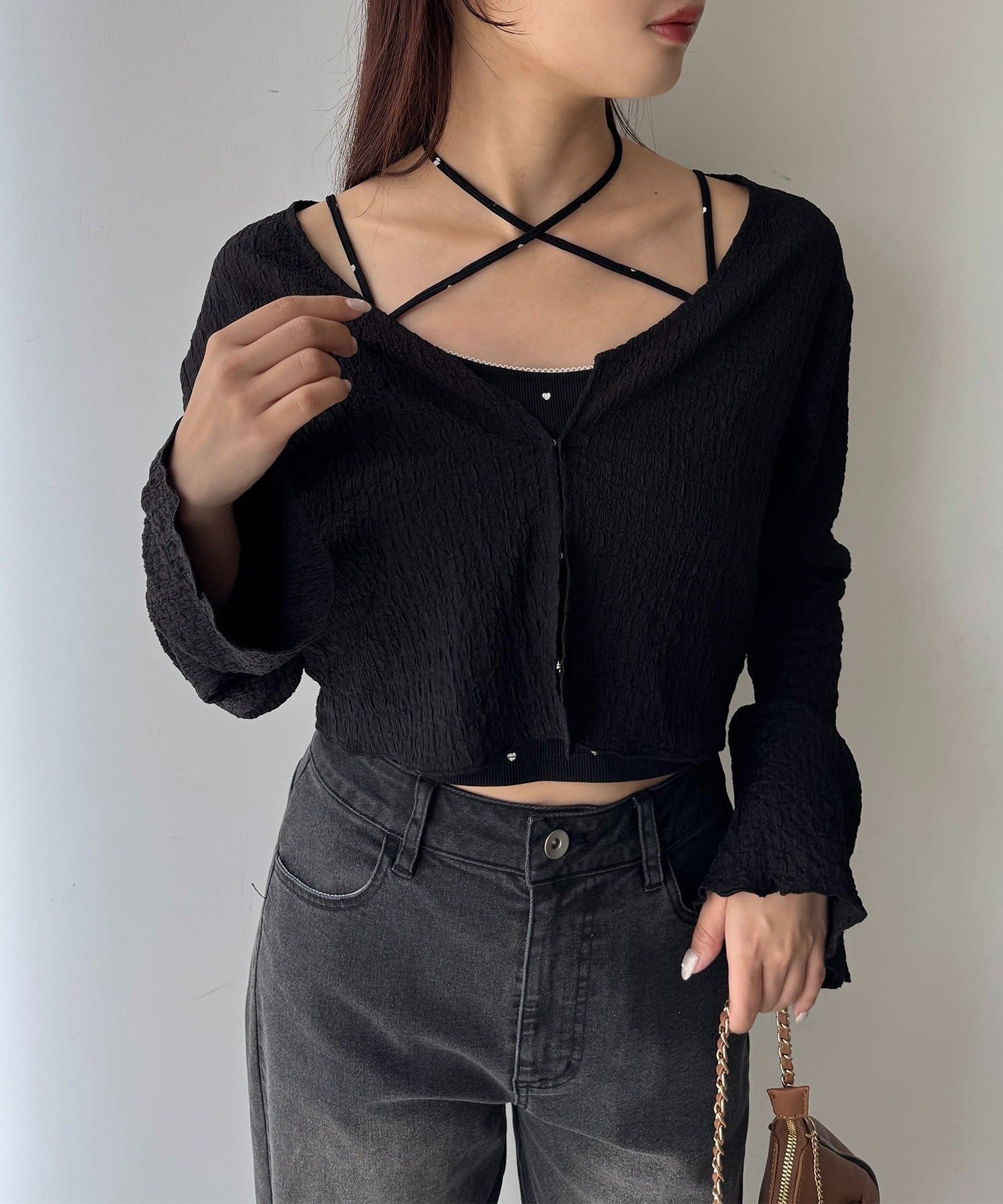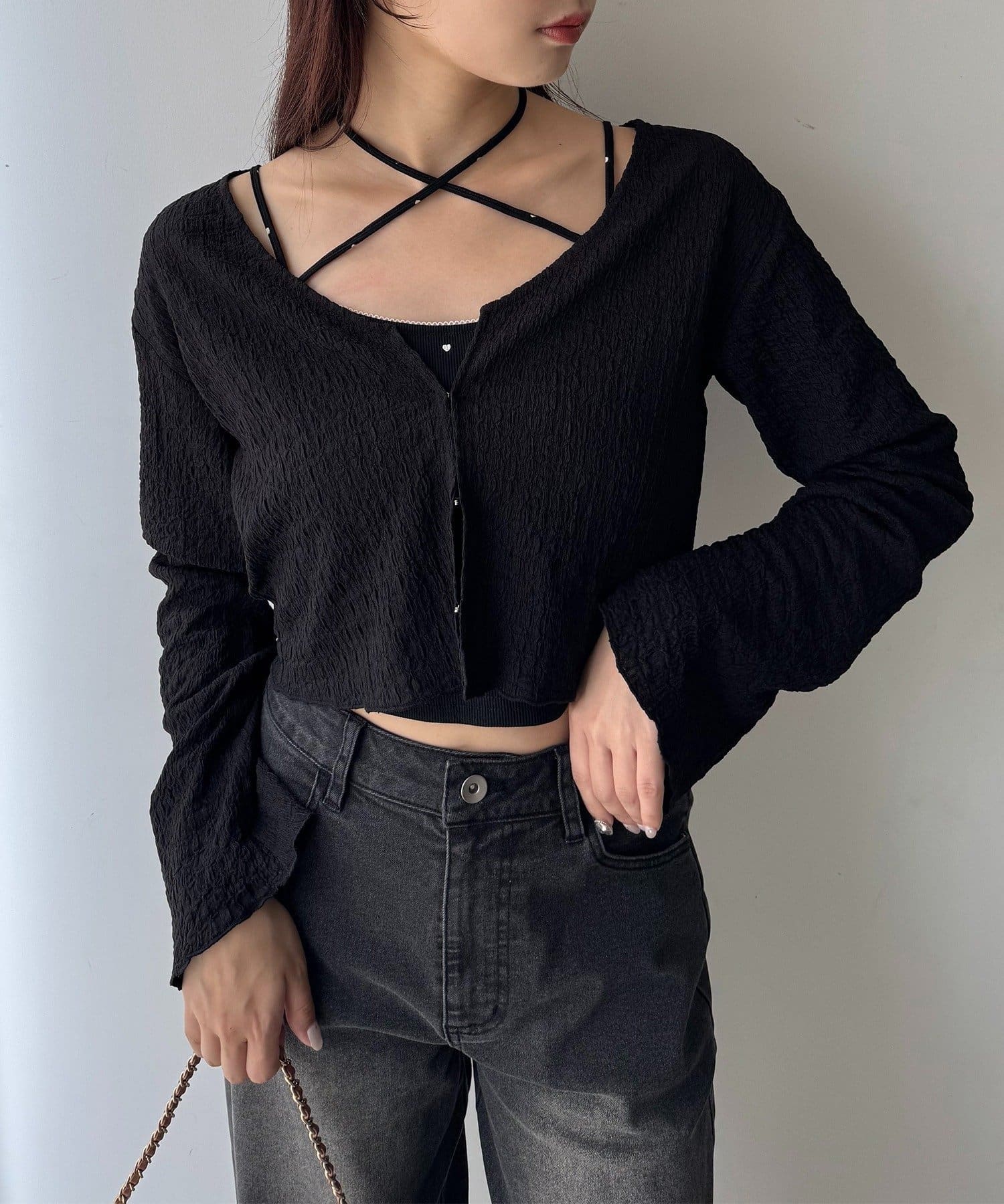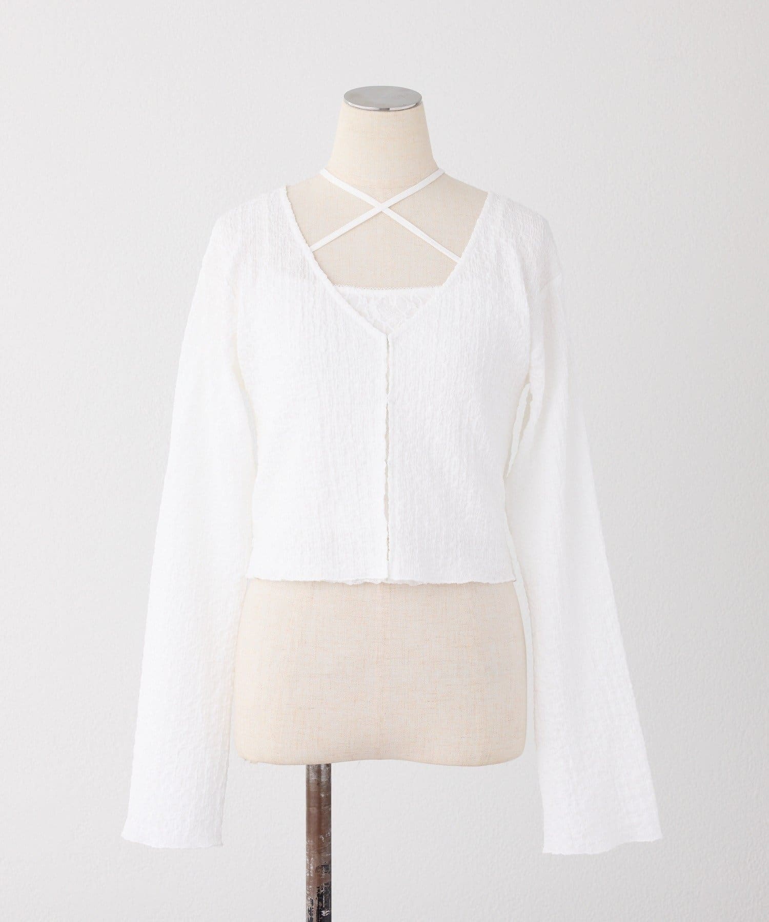カーディガンとキャミソールがセットになった、着回し力抜群のアイテム。