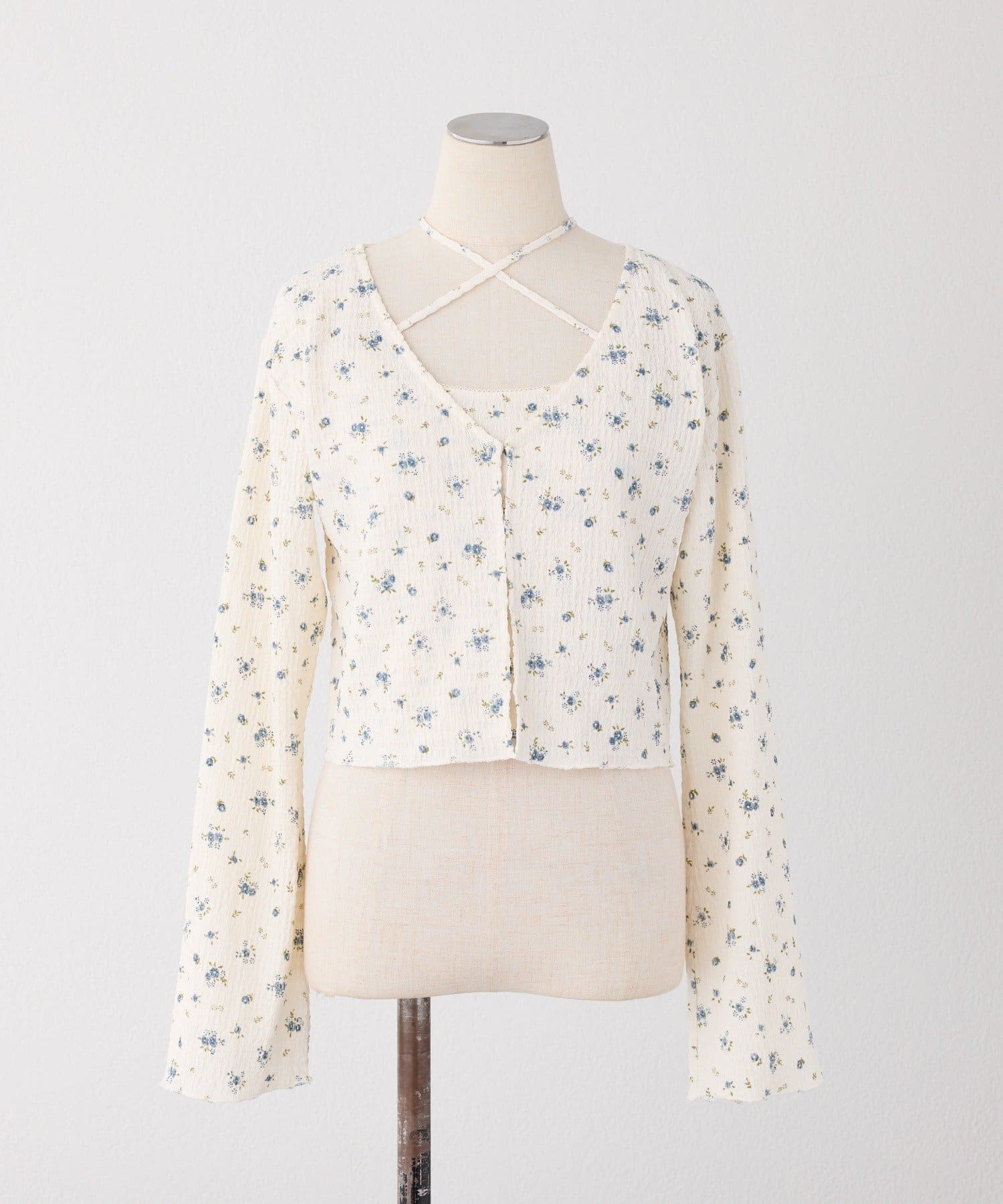 素材 【オフホワイト】カーディガン:ナイロン90% ポリウレタン10% キャミ:コットン80% ポリエステル18% ポリウレタン2%