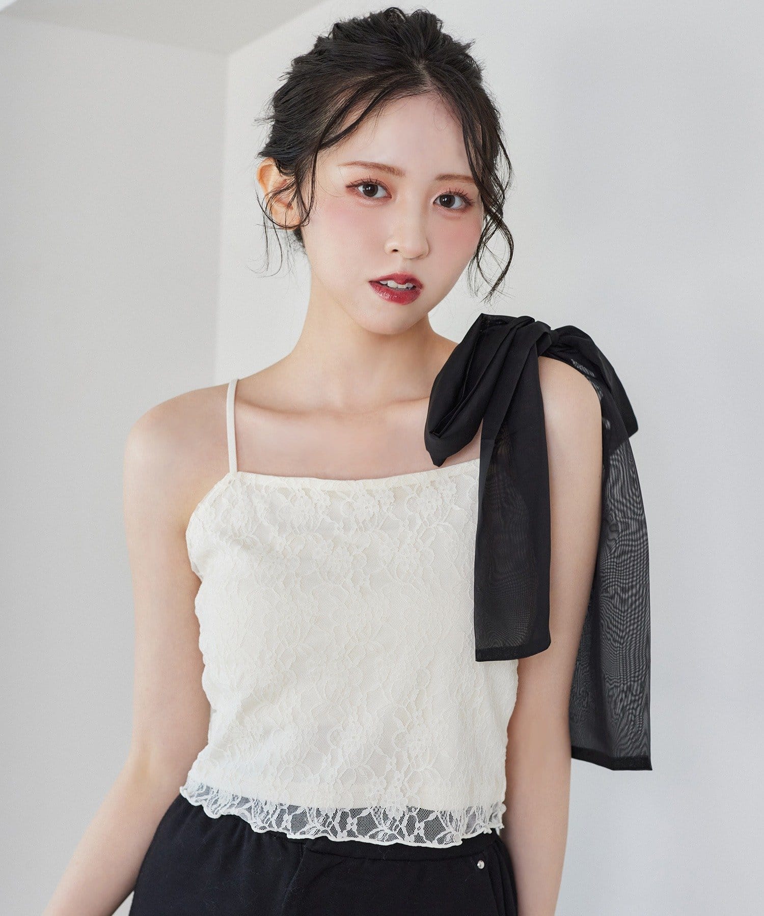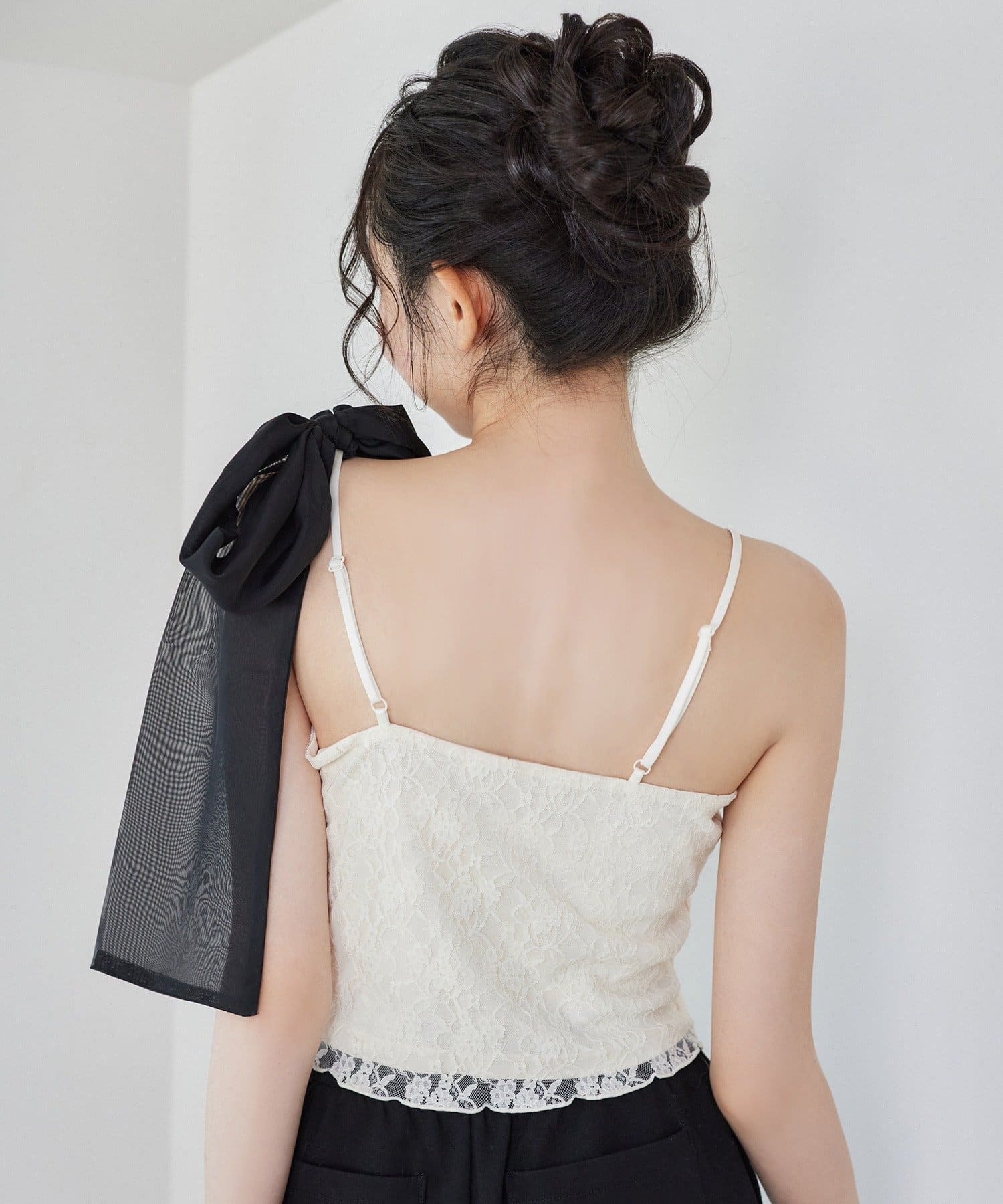 肩のリボンは取り外しができ、肩紐アジャスターで調節できます。