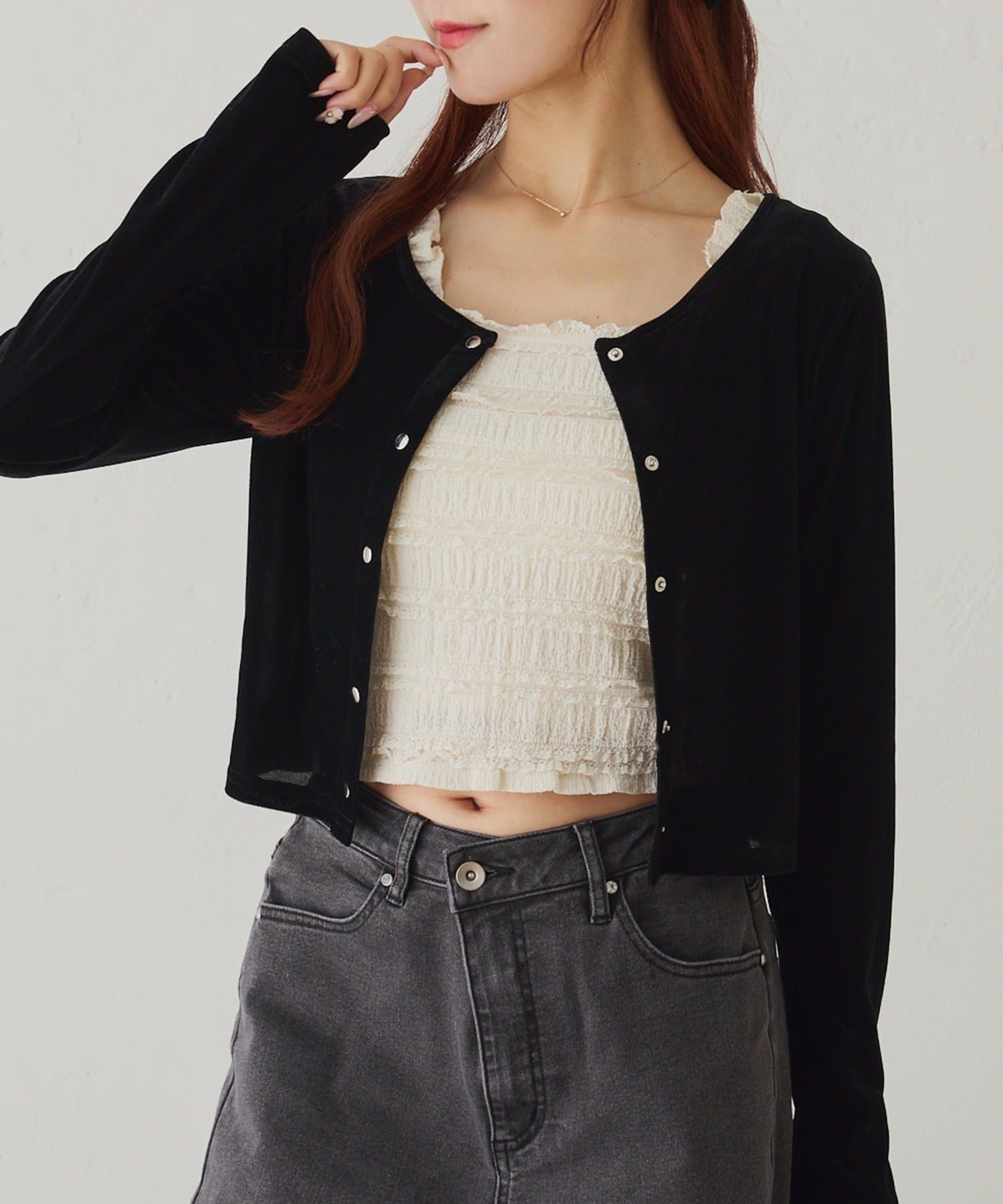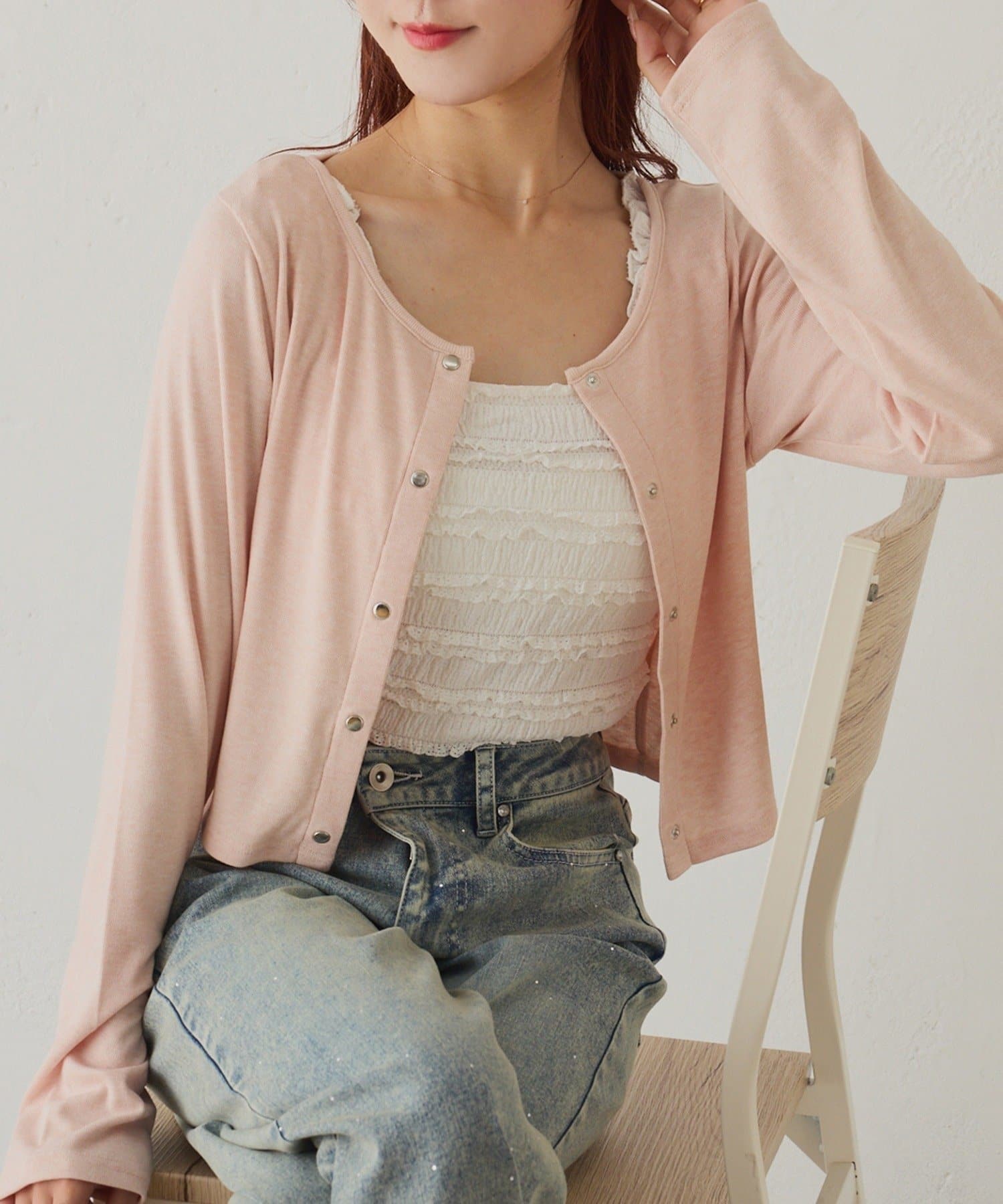 カーディガンはシンプルなデザインなので、ビスチェと合わせるのはもちろん、お手持ちのアイテムとも好相性◎