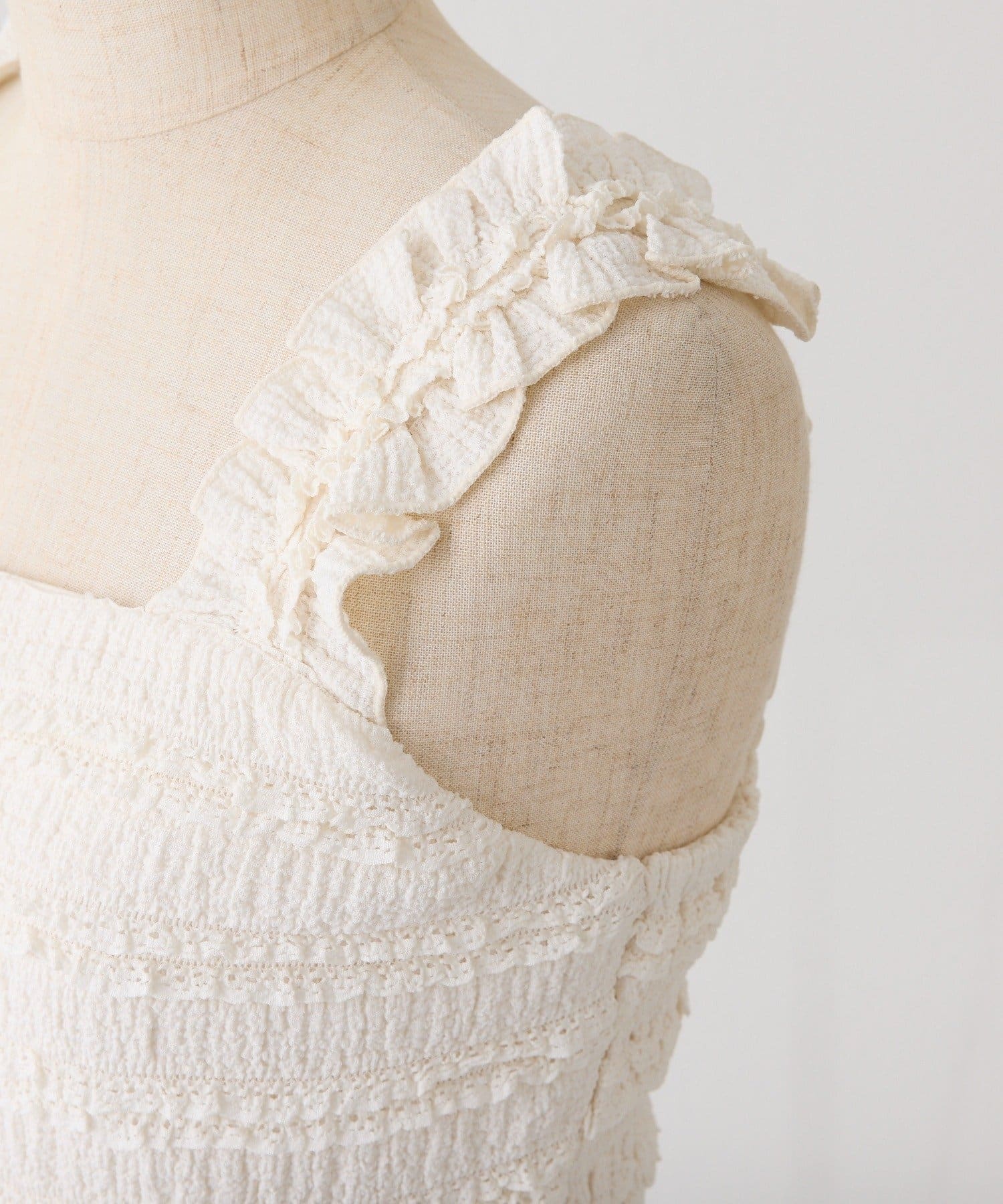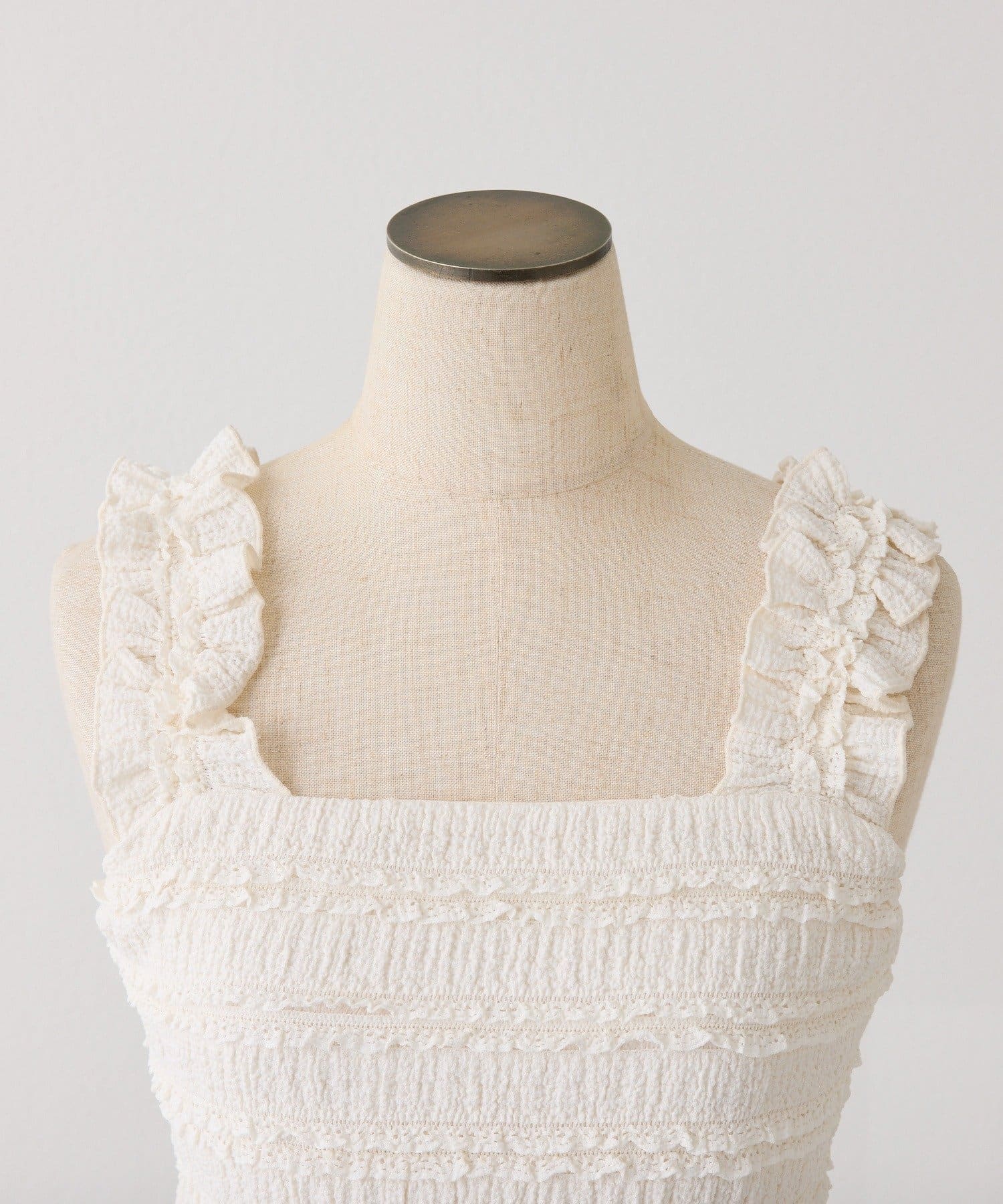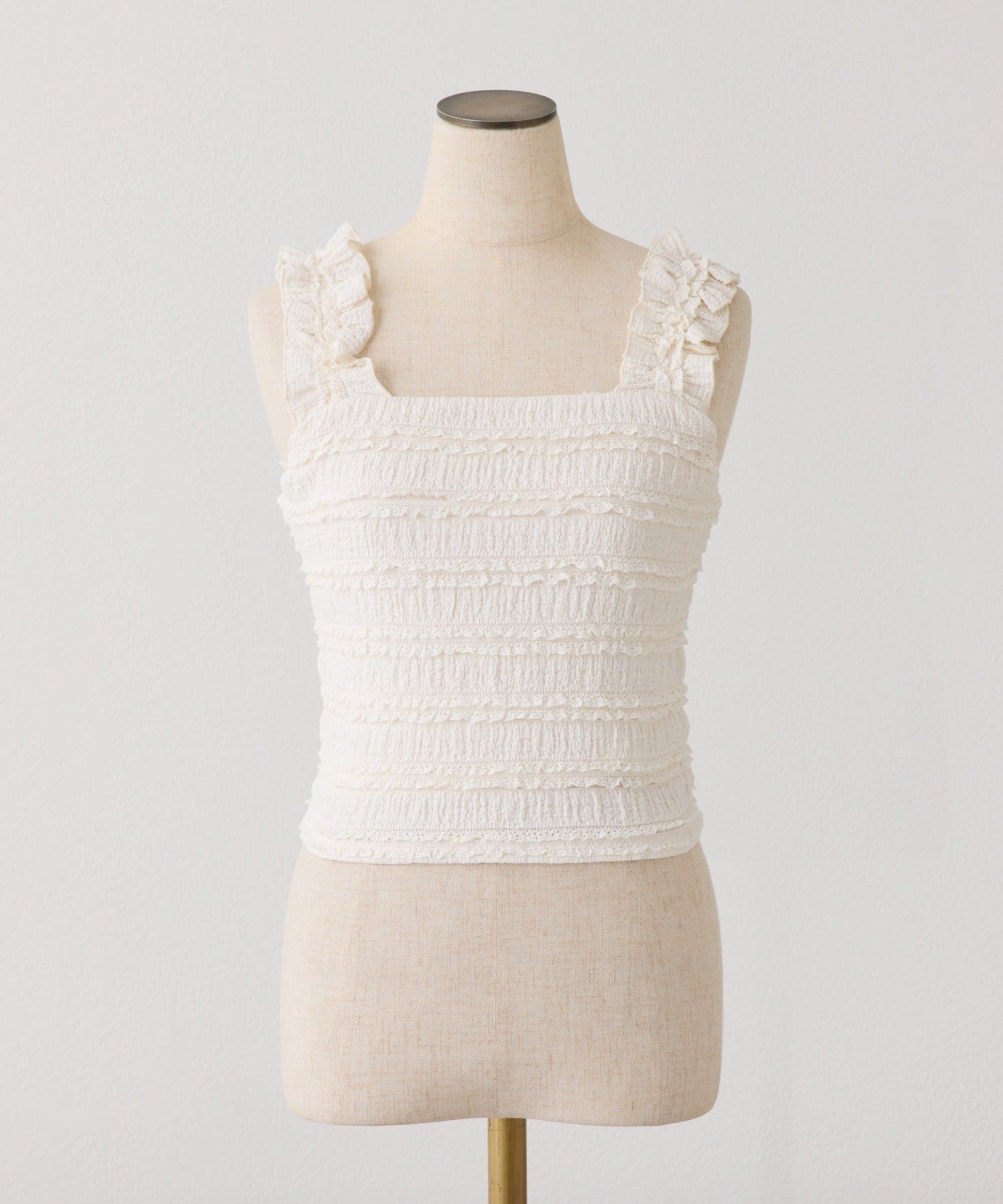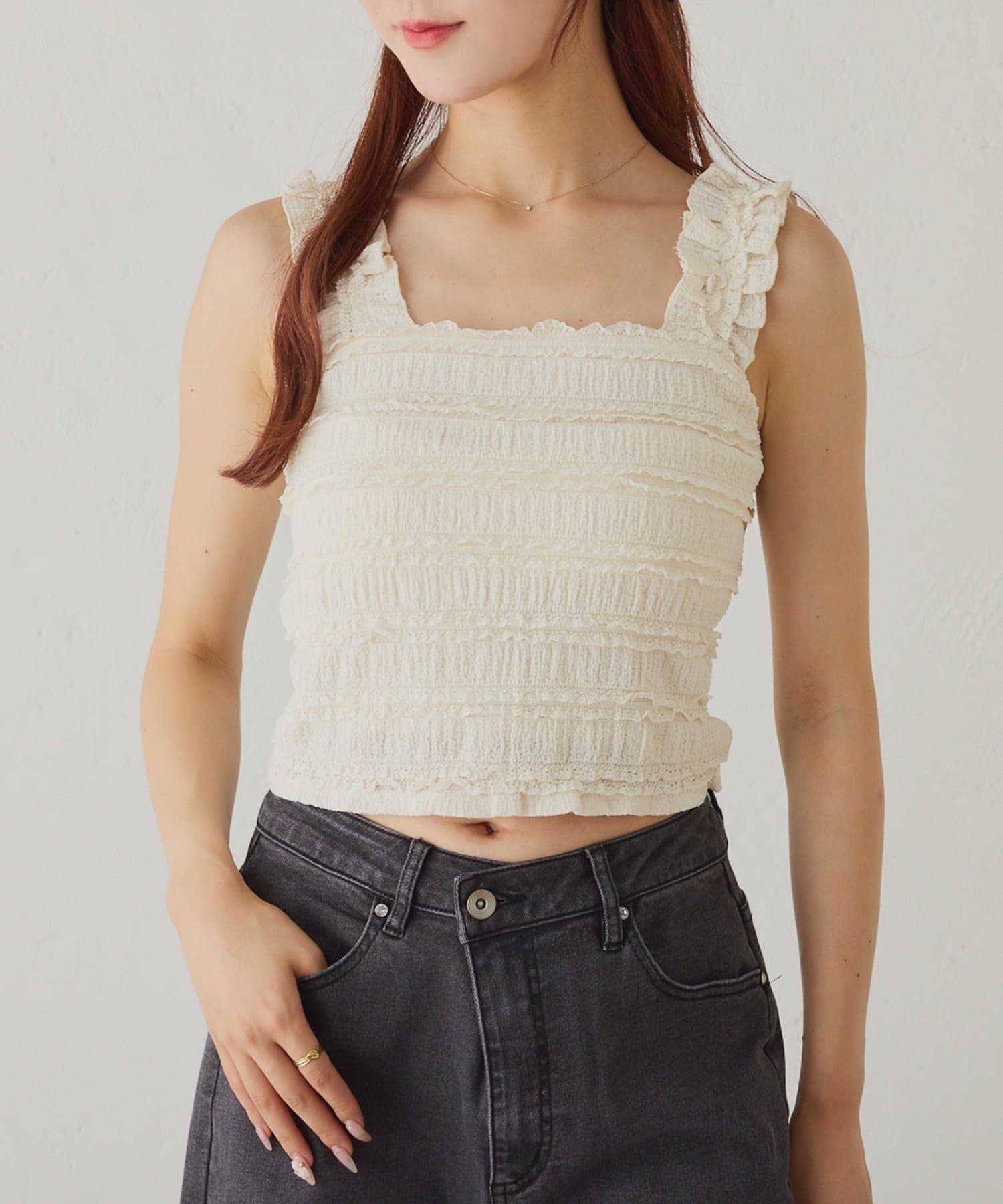 程よくフィット感のあるビスチェは、レイヤードするだけで一気にトレンド感のあるスタイリングに。