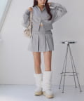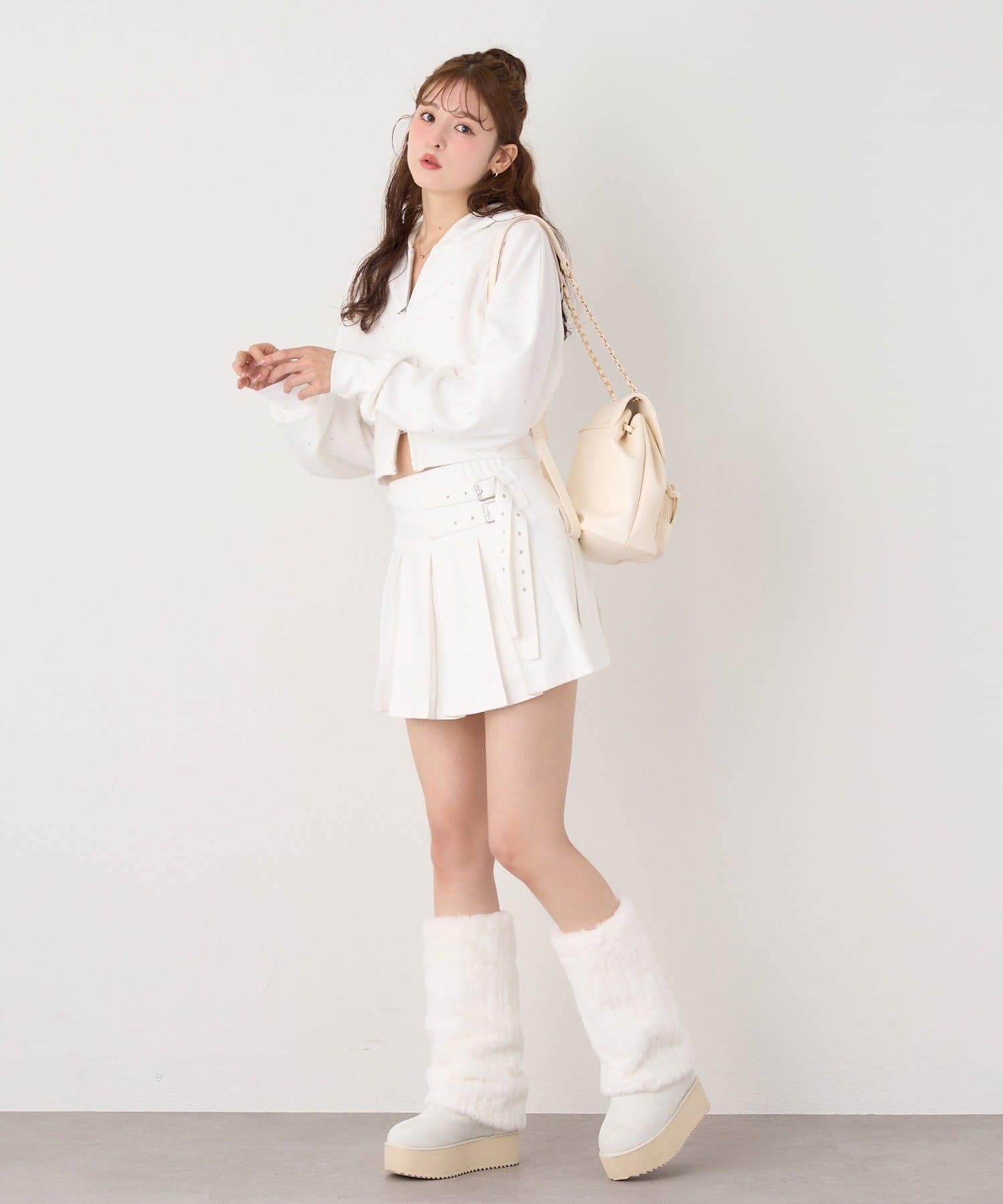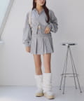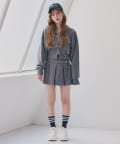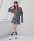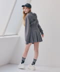 足元はハイソックス×スニーカーで、トレンド感溢れるスタイルに。