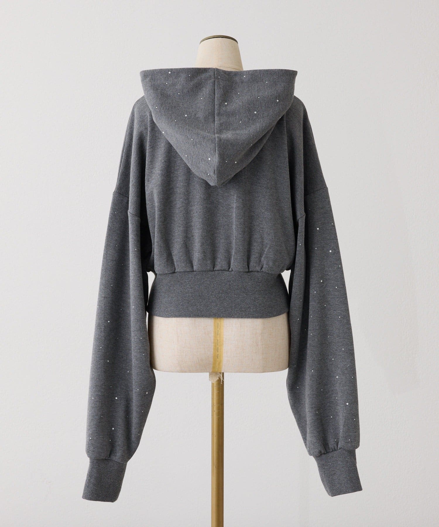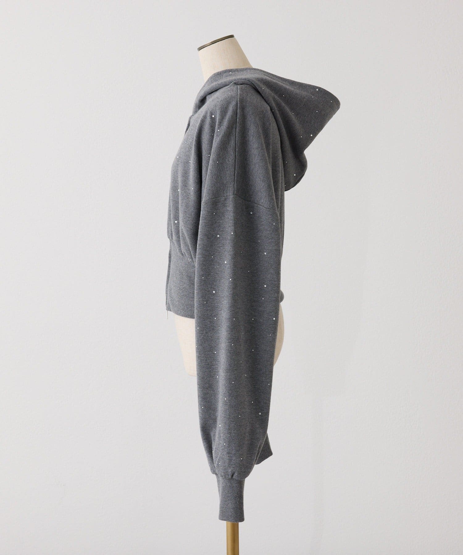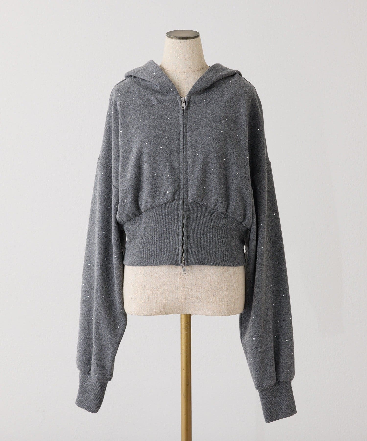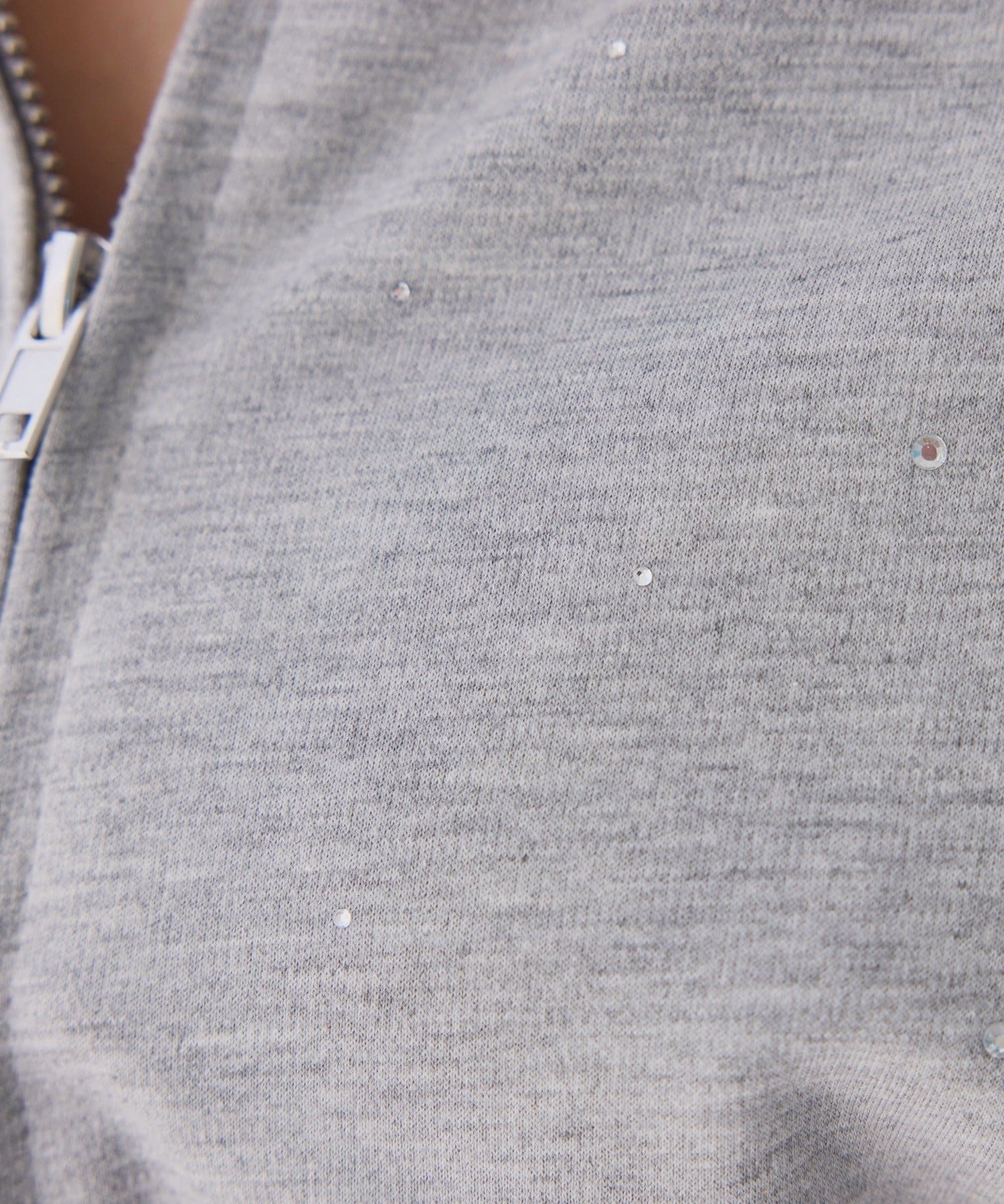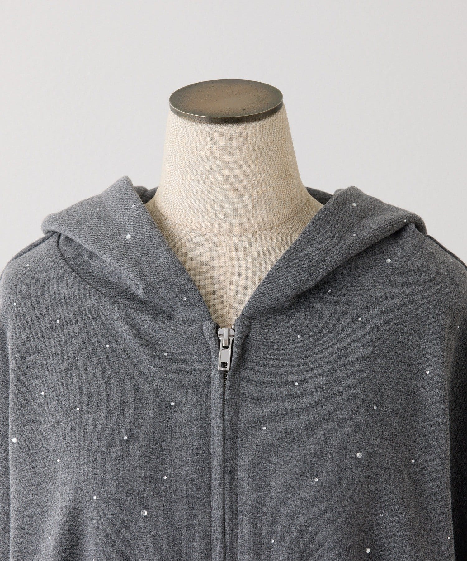 全体ににビジューをあしらった、大人フェミニンなパーカー