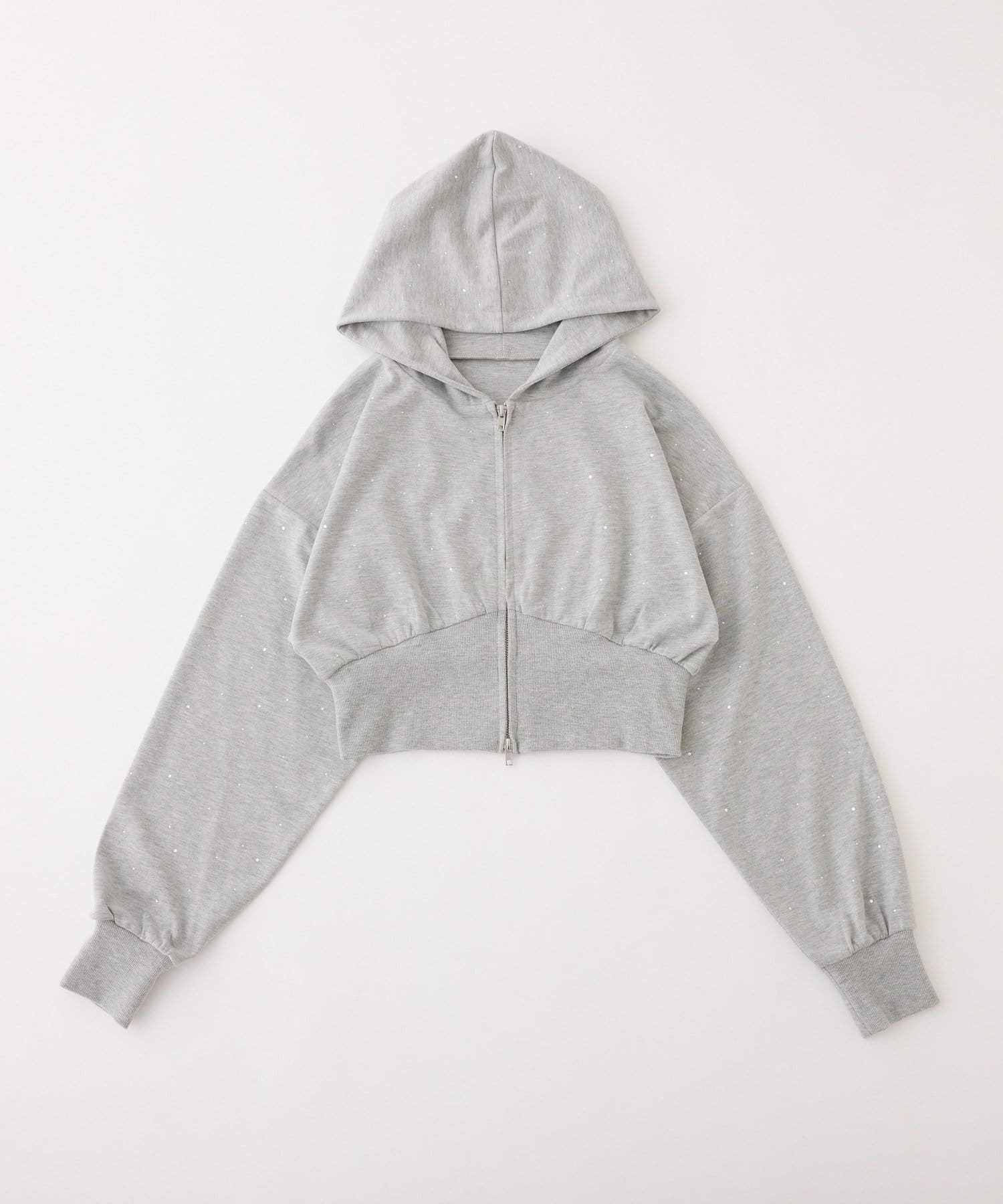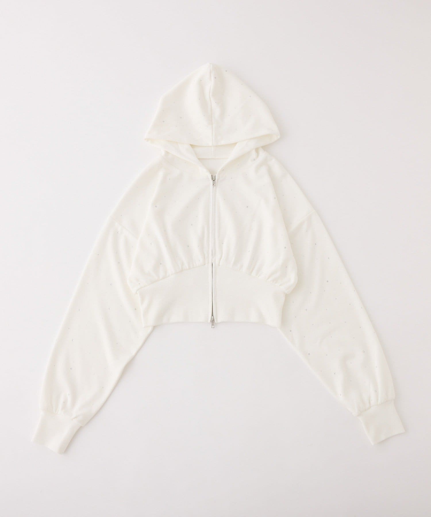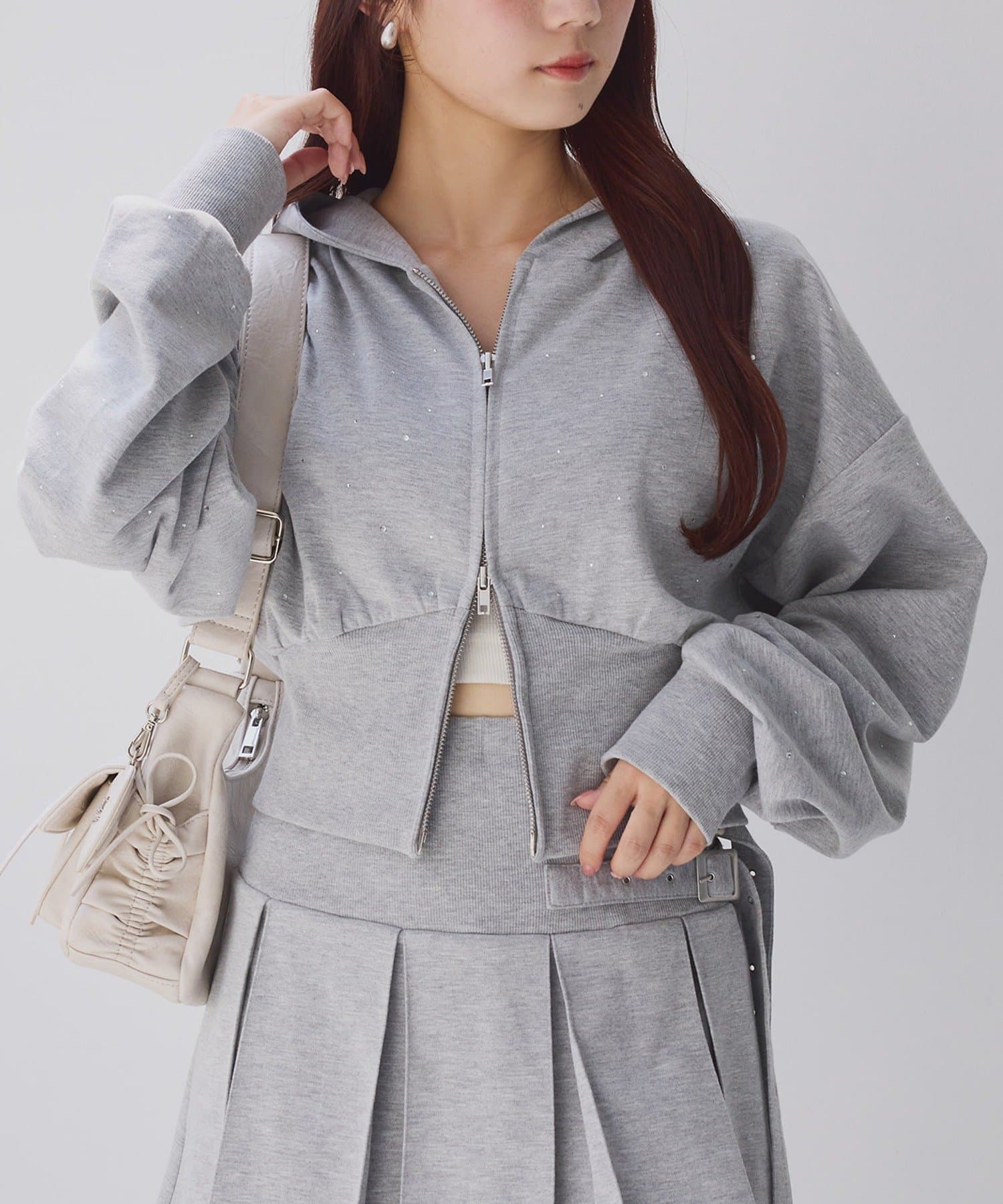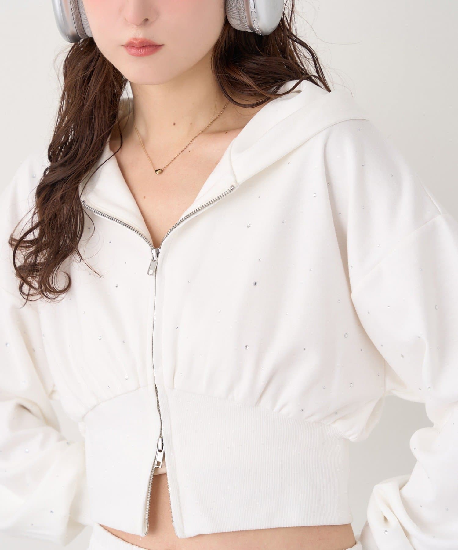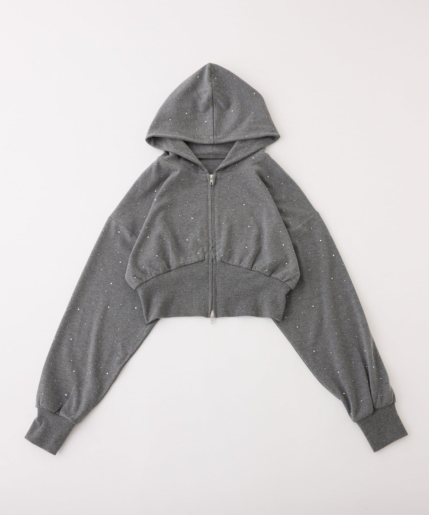 全体ににビジューをあしらった、大人フェミニンなパーカー