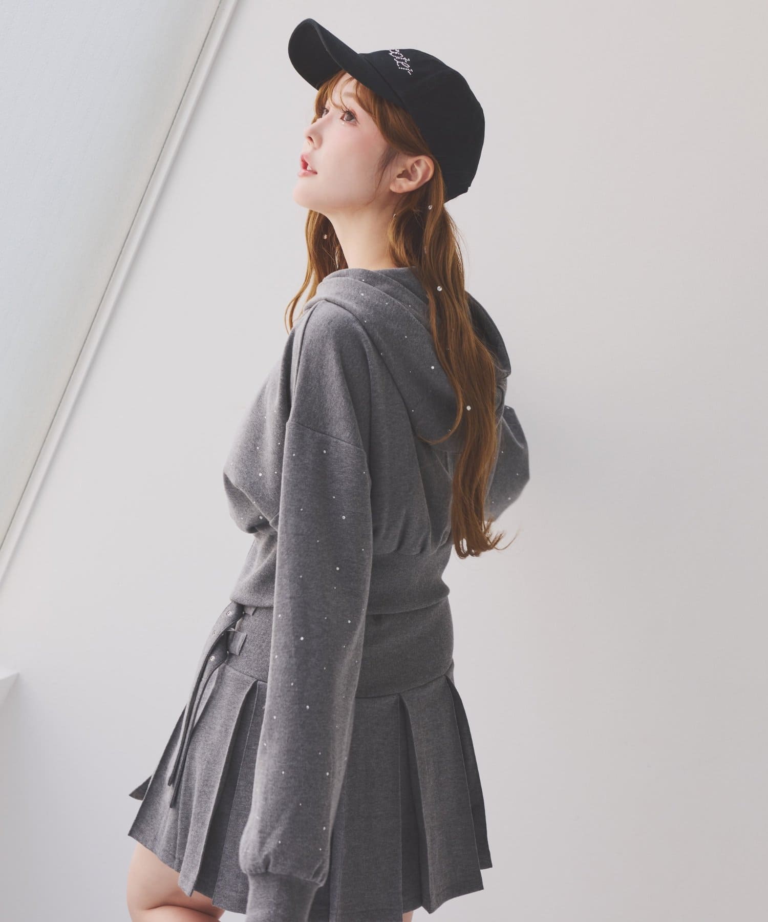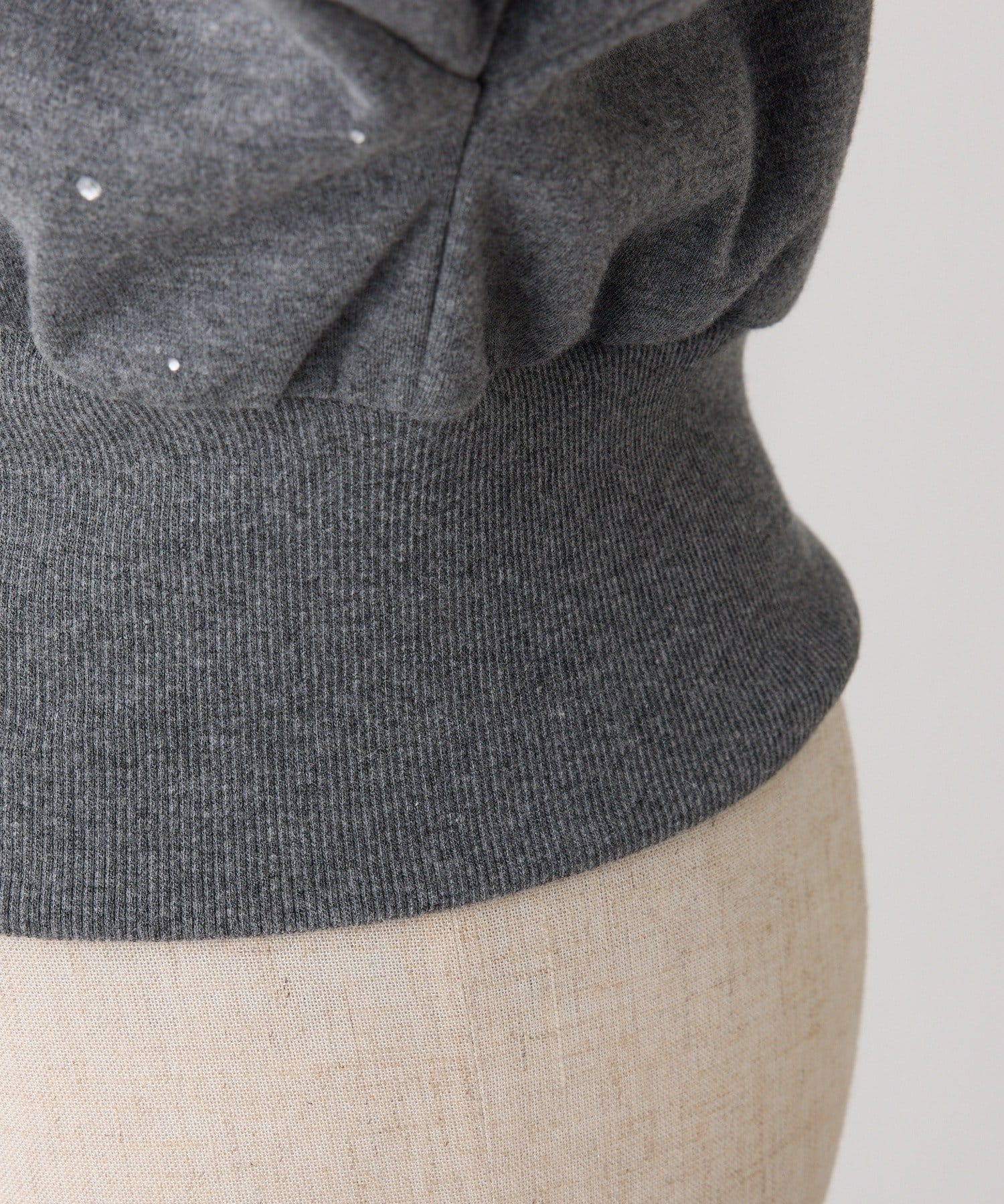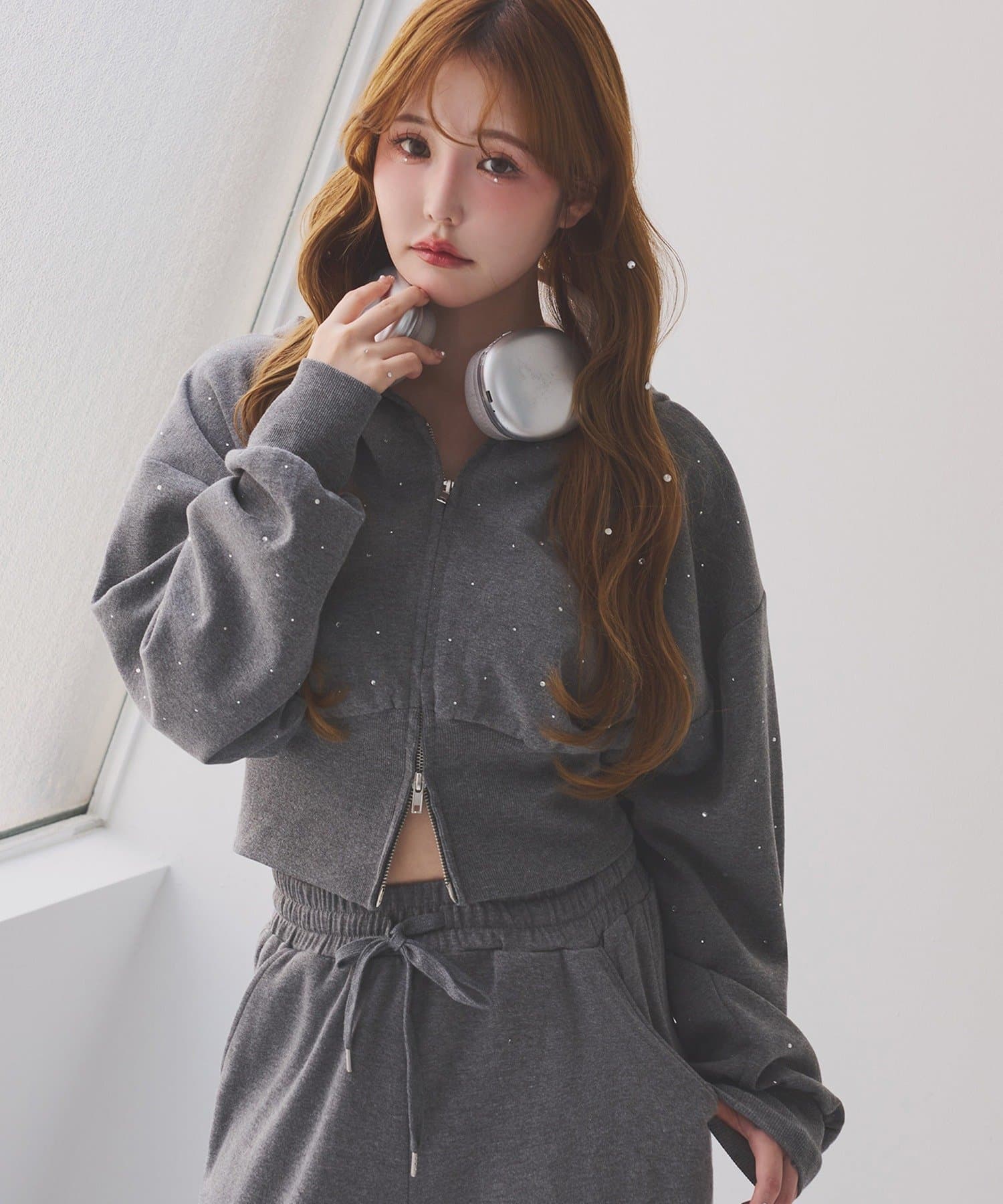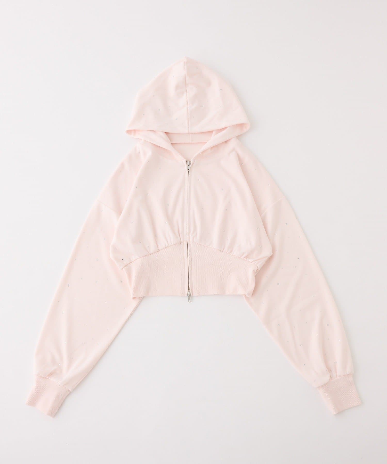 全体ににビジューをあしらった、大人フェミニンなパーカー