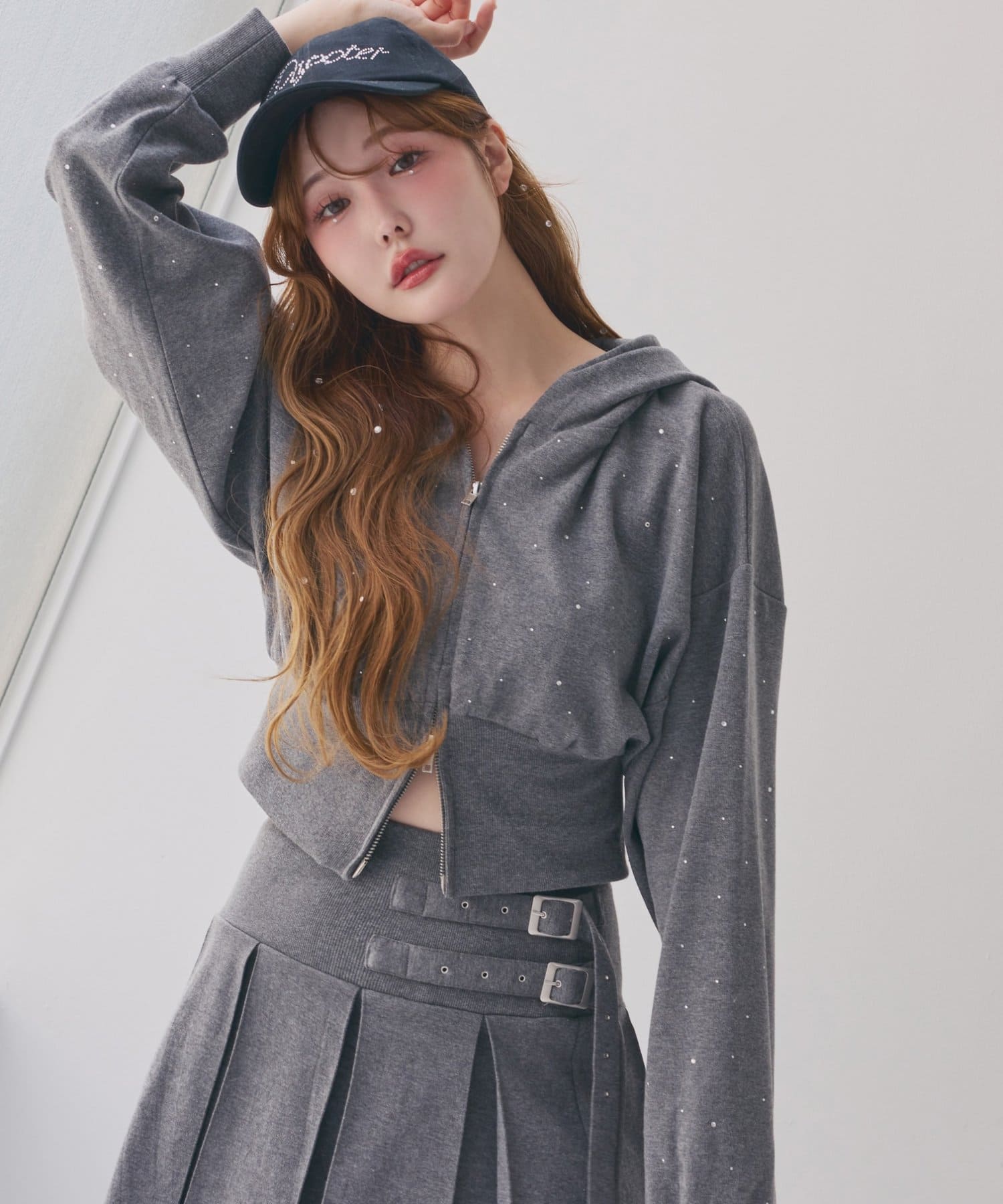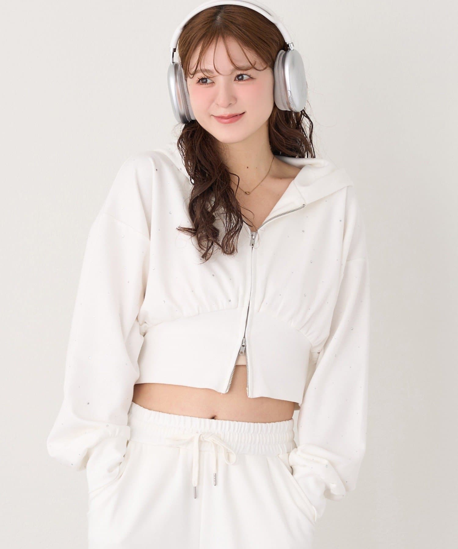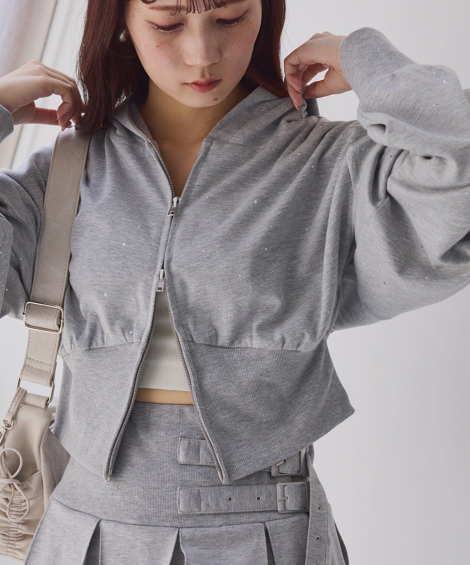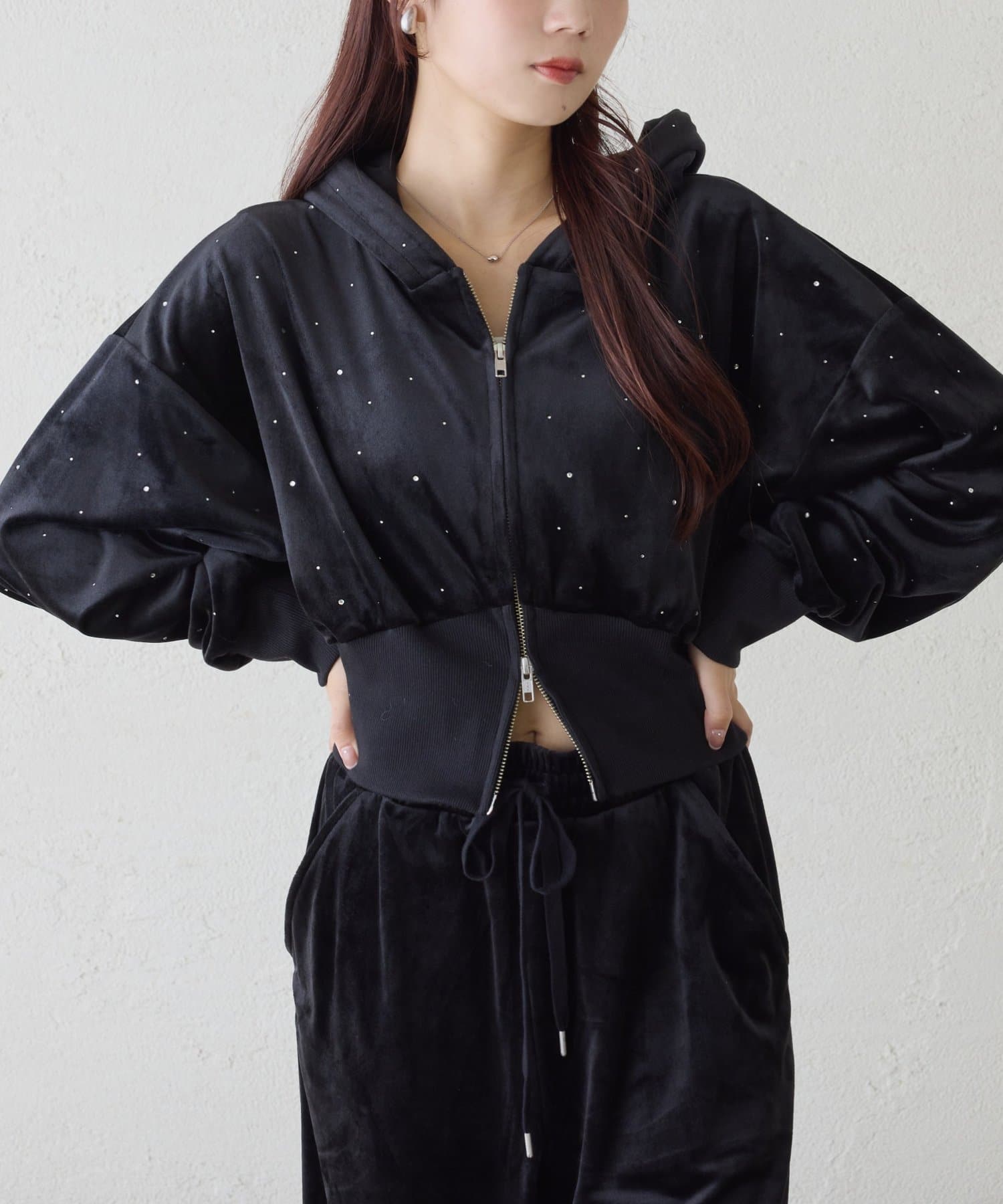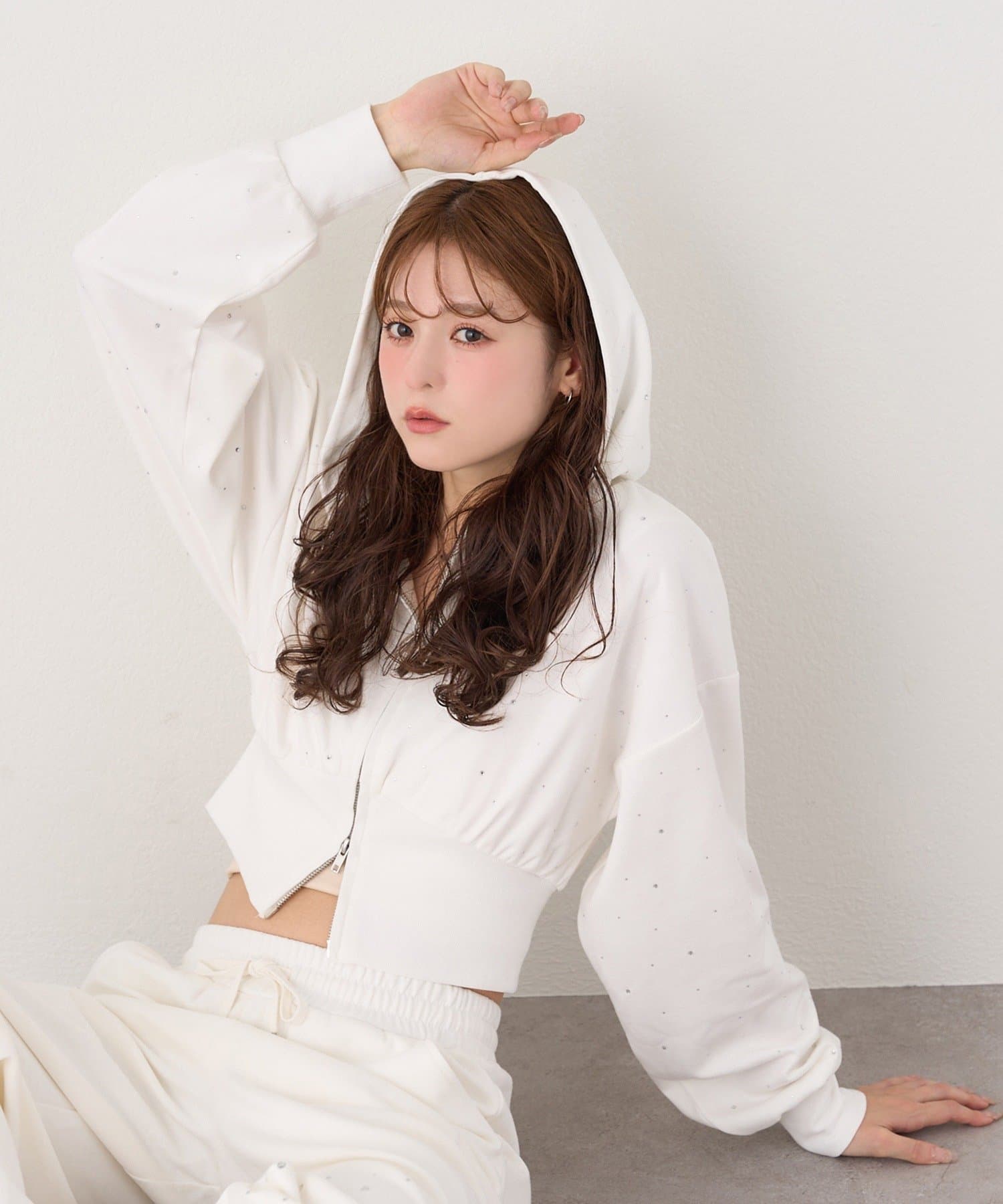 全体ににビジューをあしらった、大人フェミニンなパーカー