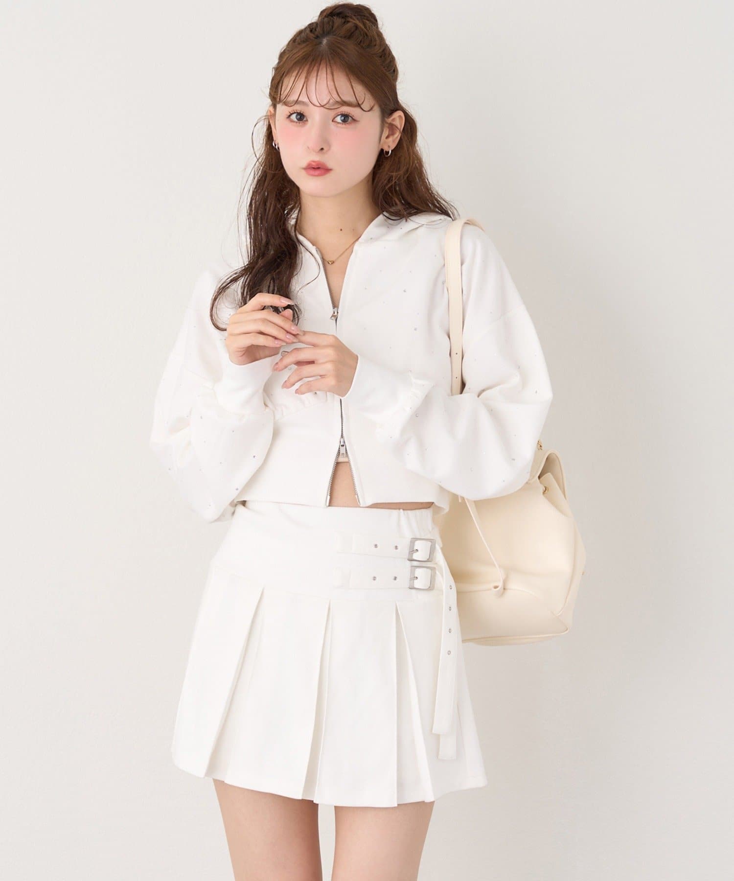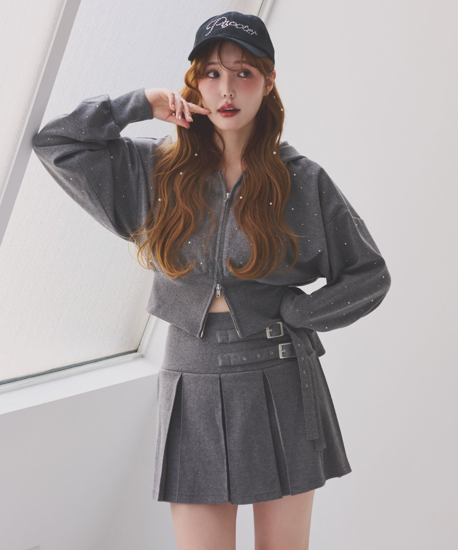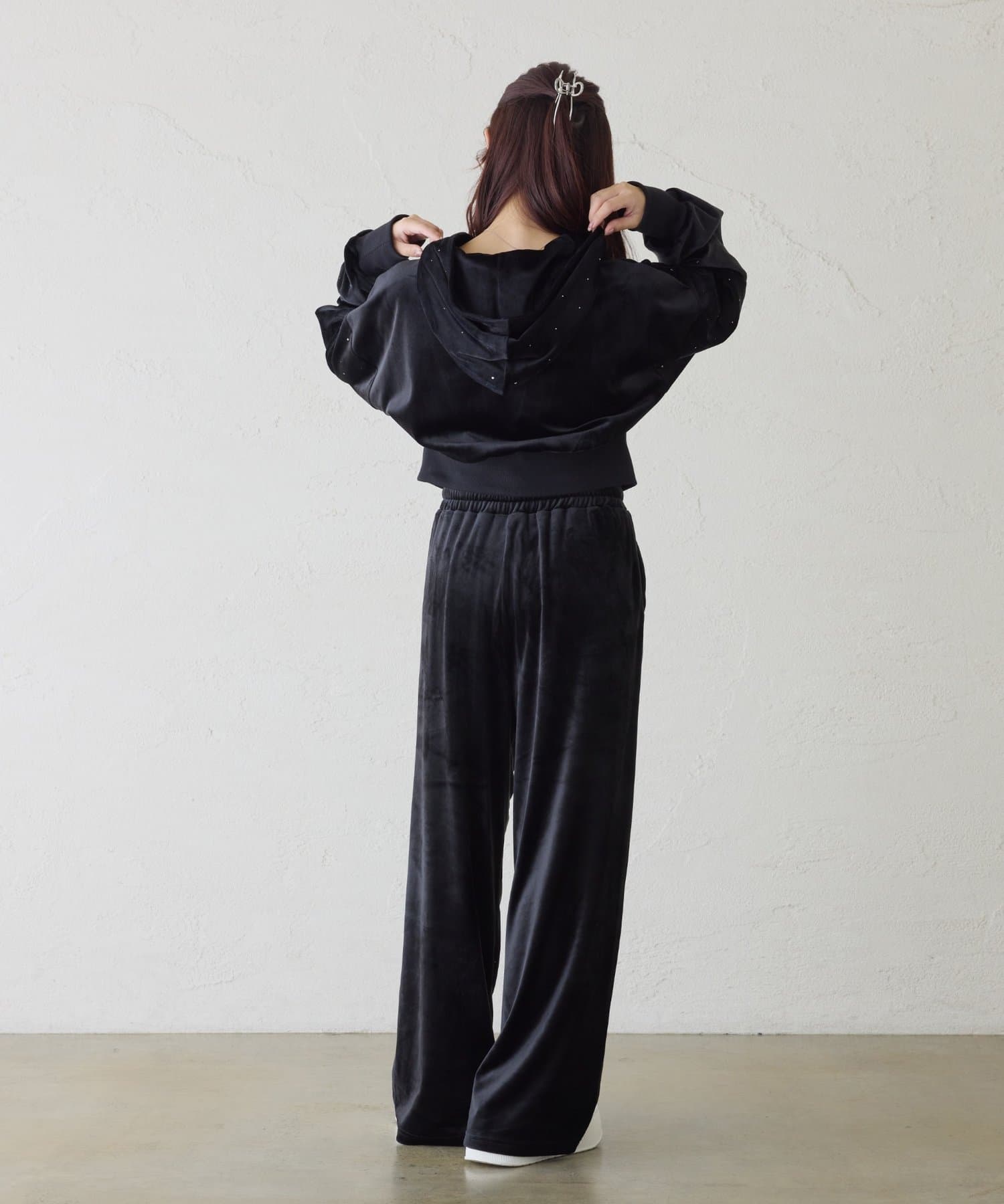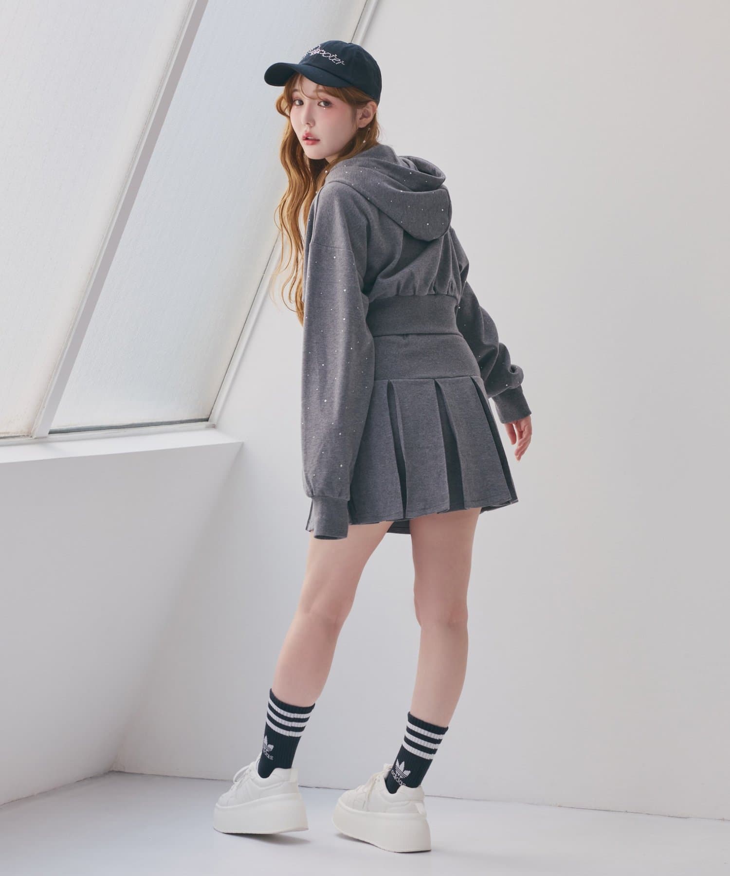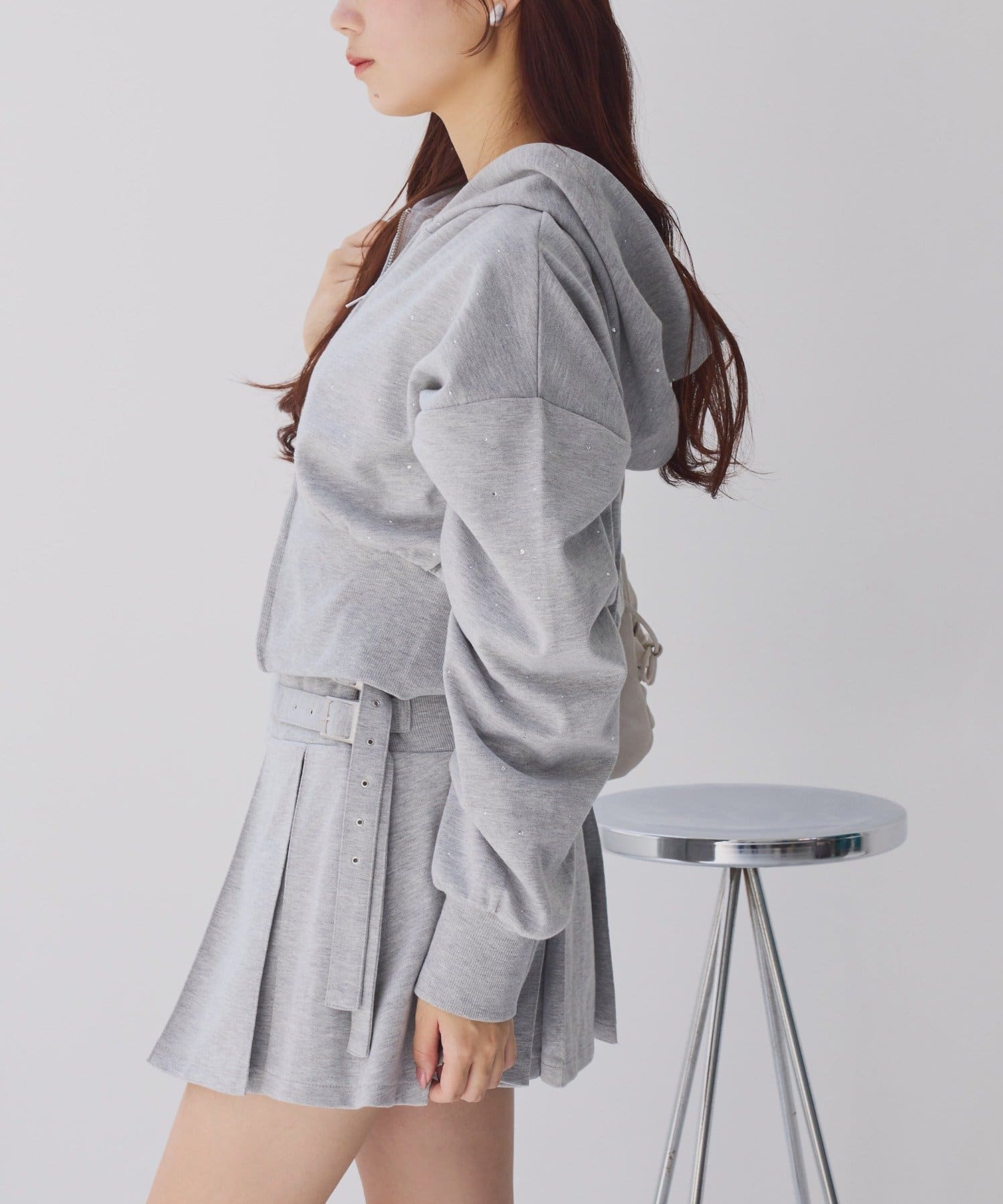全体ににビジューをあしらった、大人フェミニンなパーカー