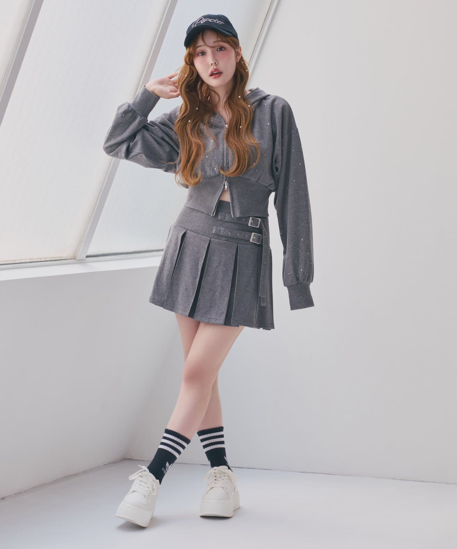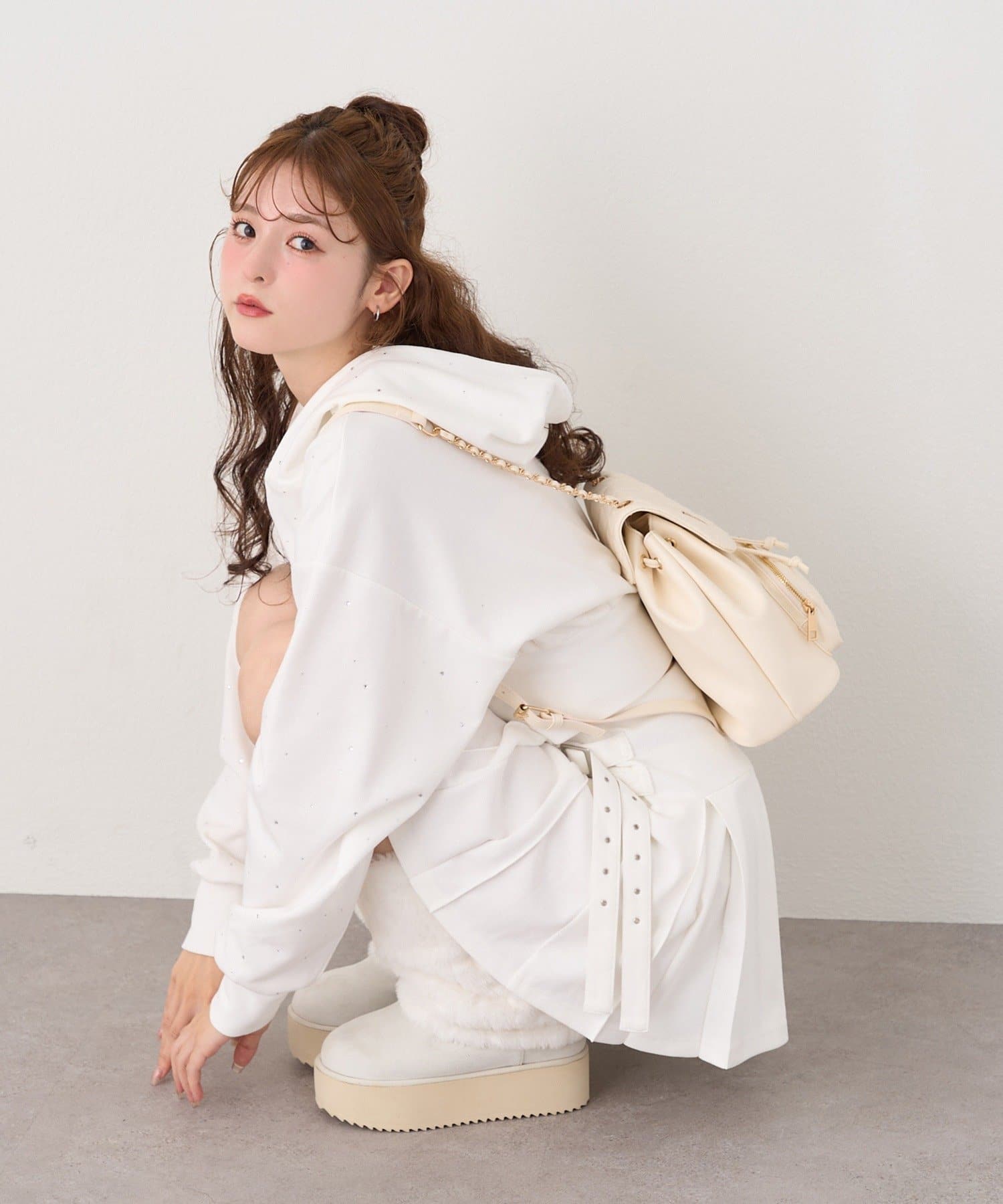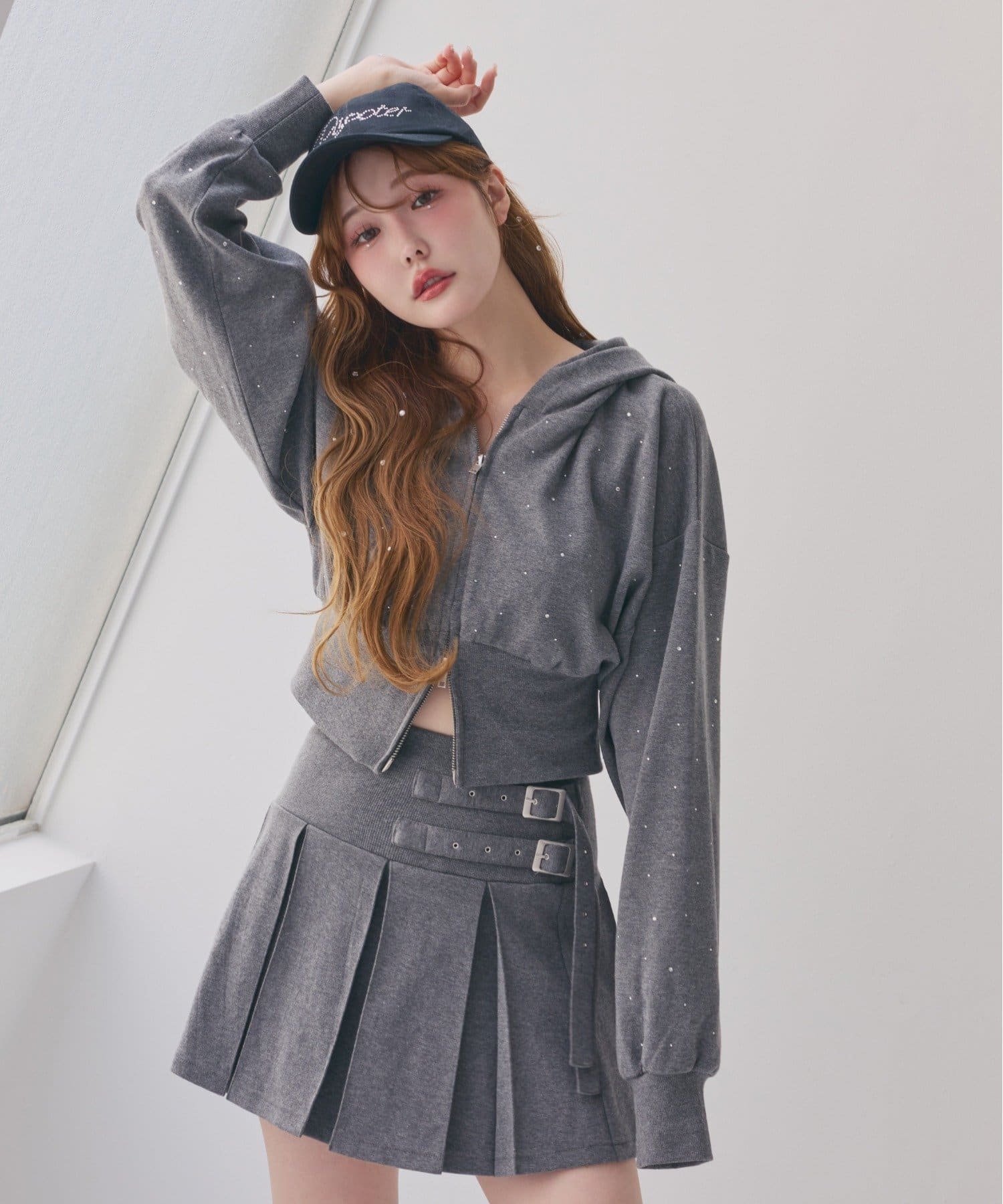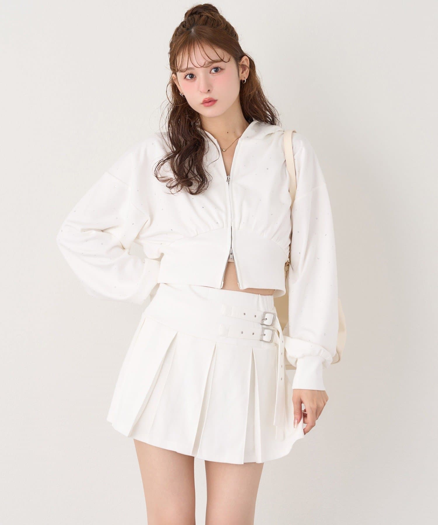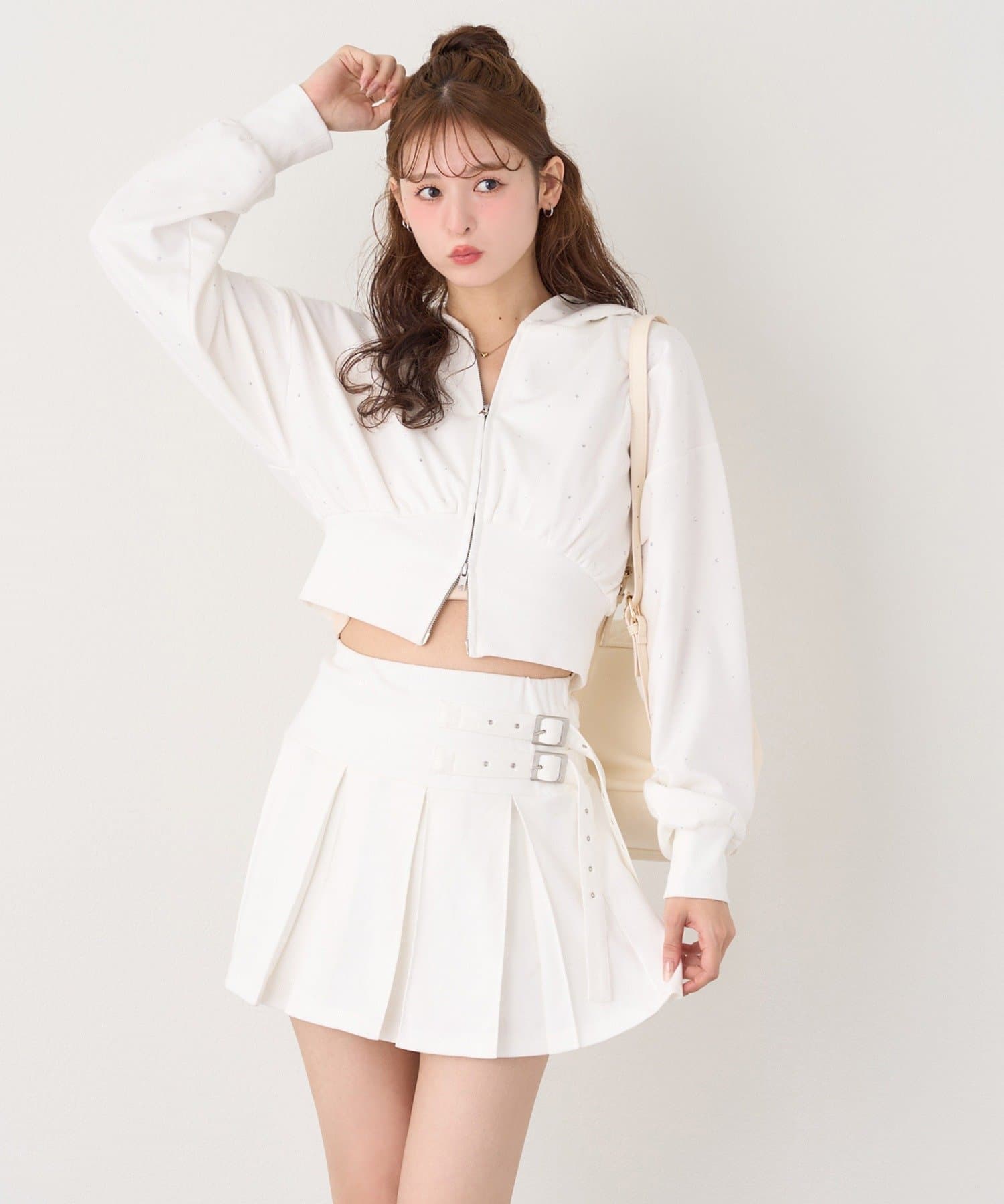 全体ににビジューをあしらった、大人フェミニンなパーカー