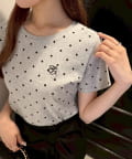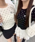ガーリーなドット柄と胸元のロゴ刺繍をプラスした1枚。