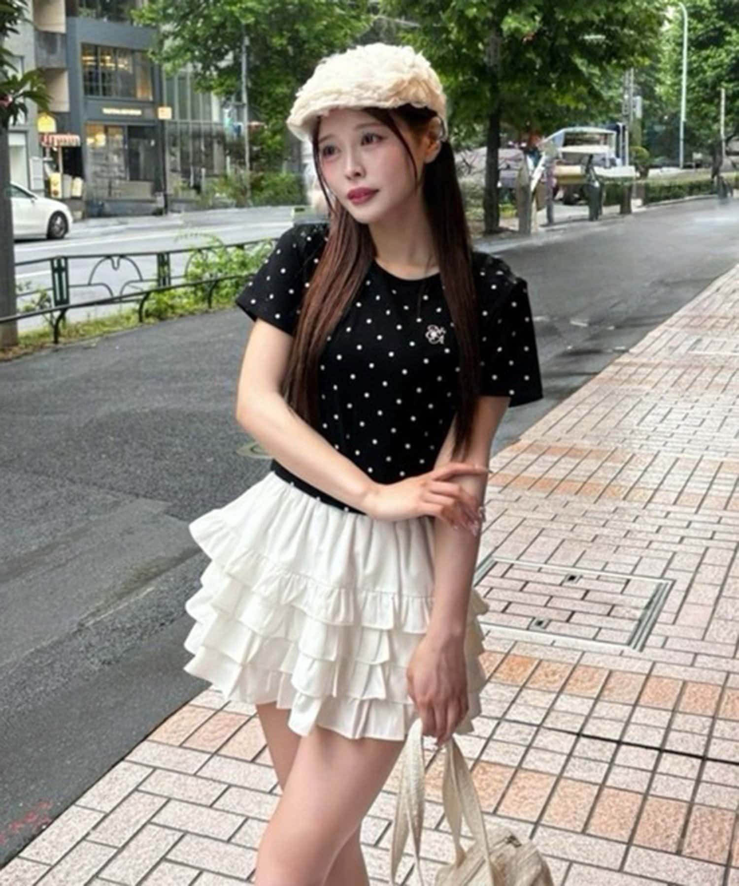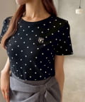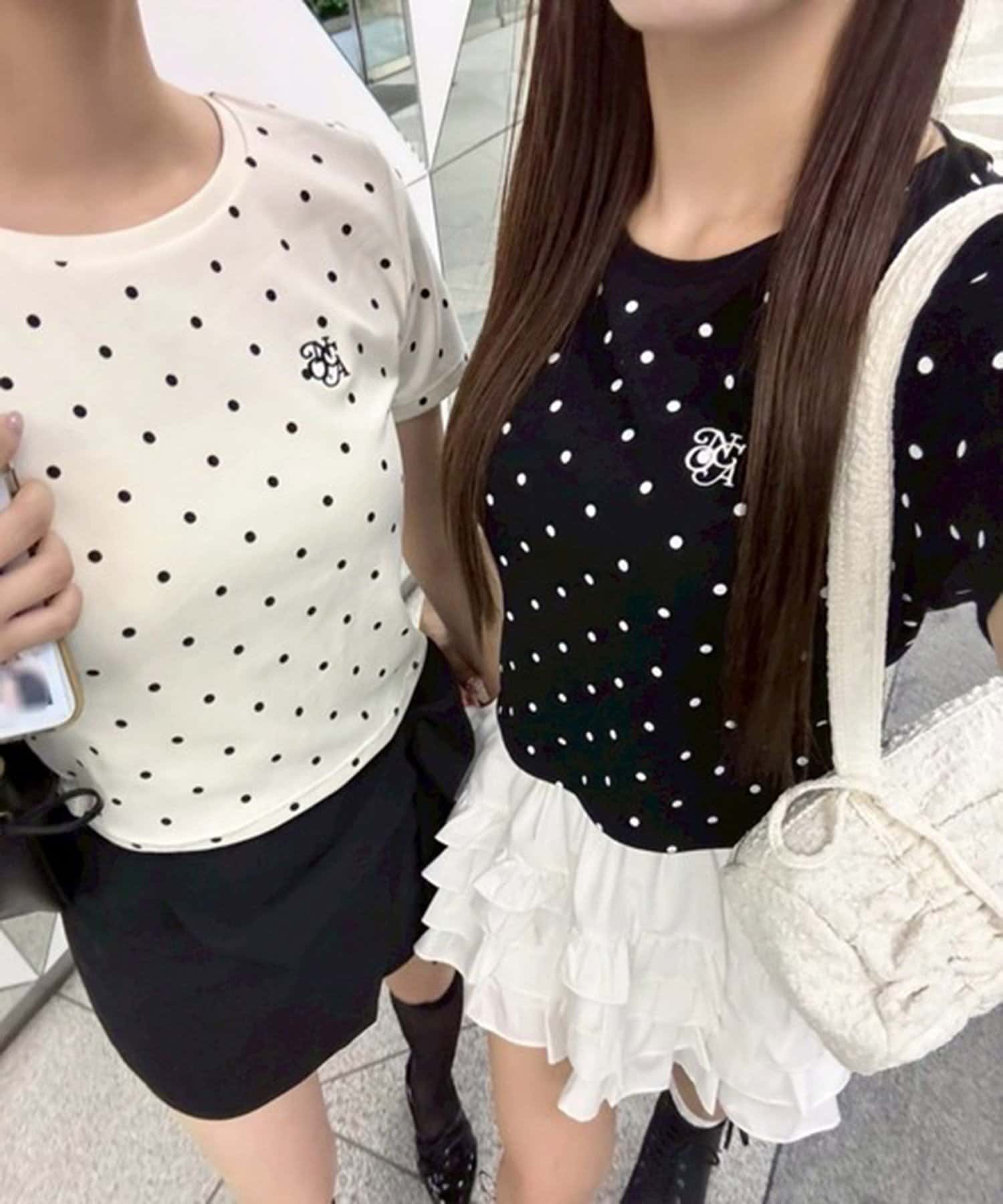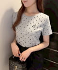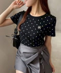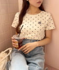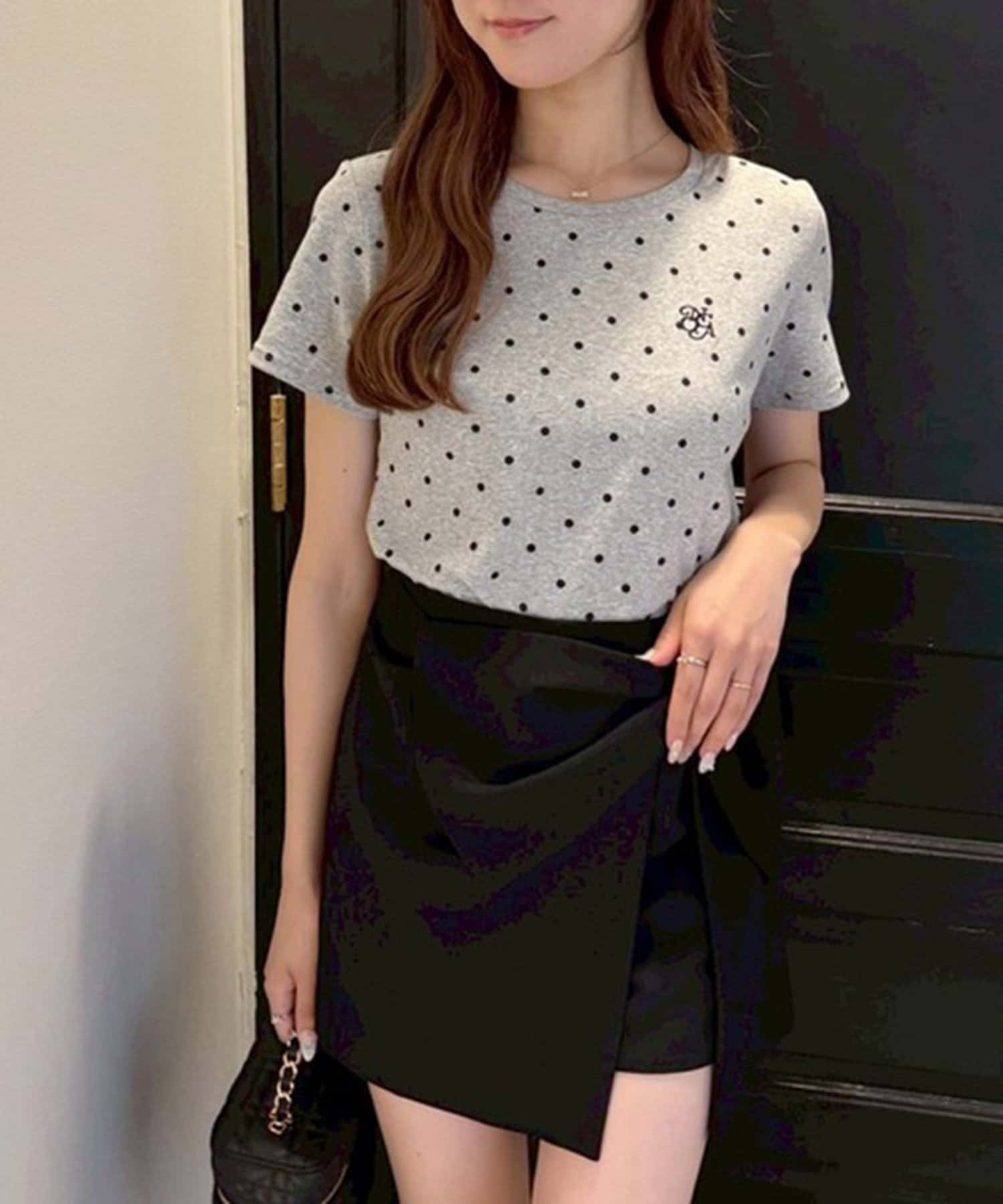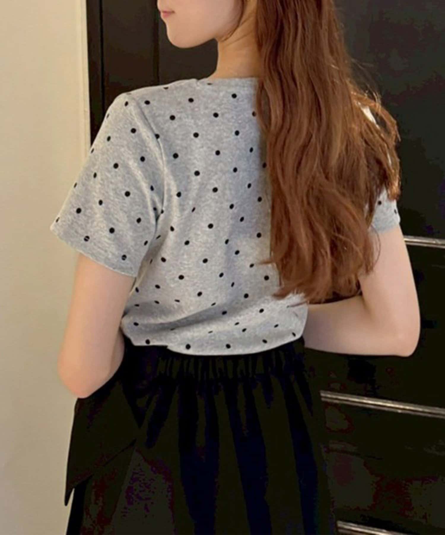 カジュアルになりがちなTシャツも、フェミニンな雰囲気に仕上がるドット柄で、