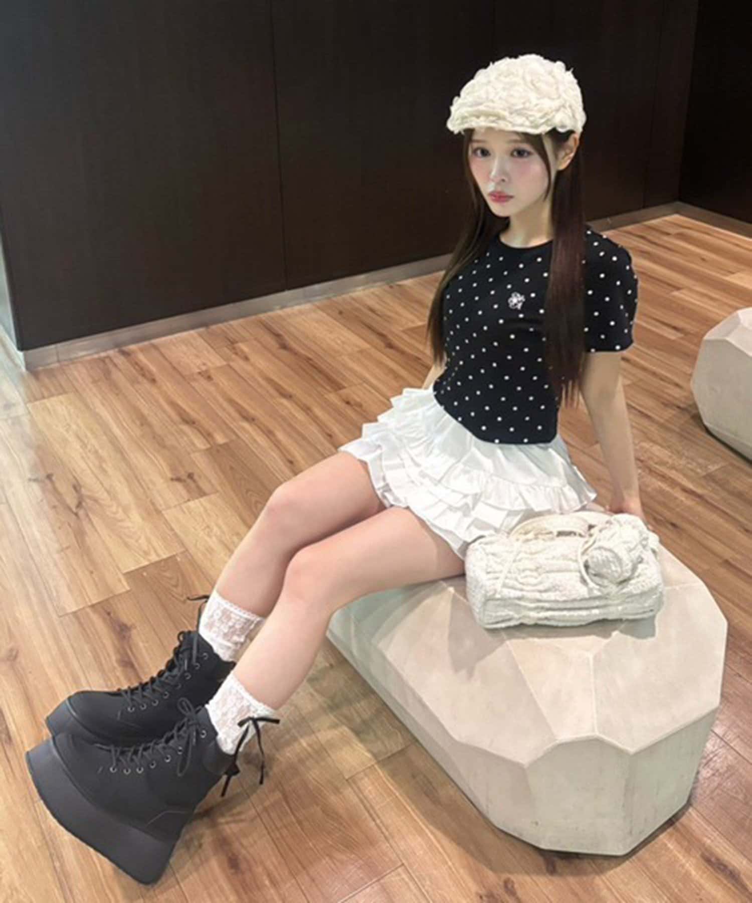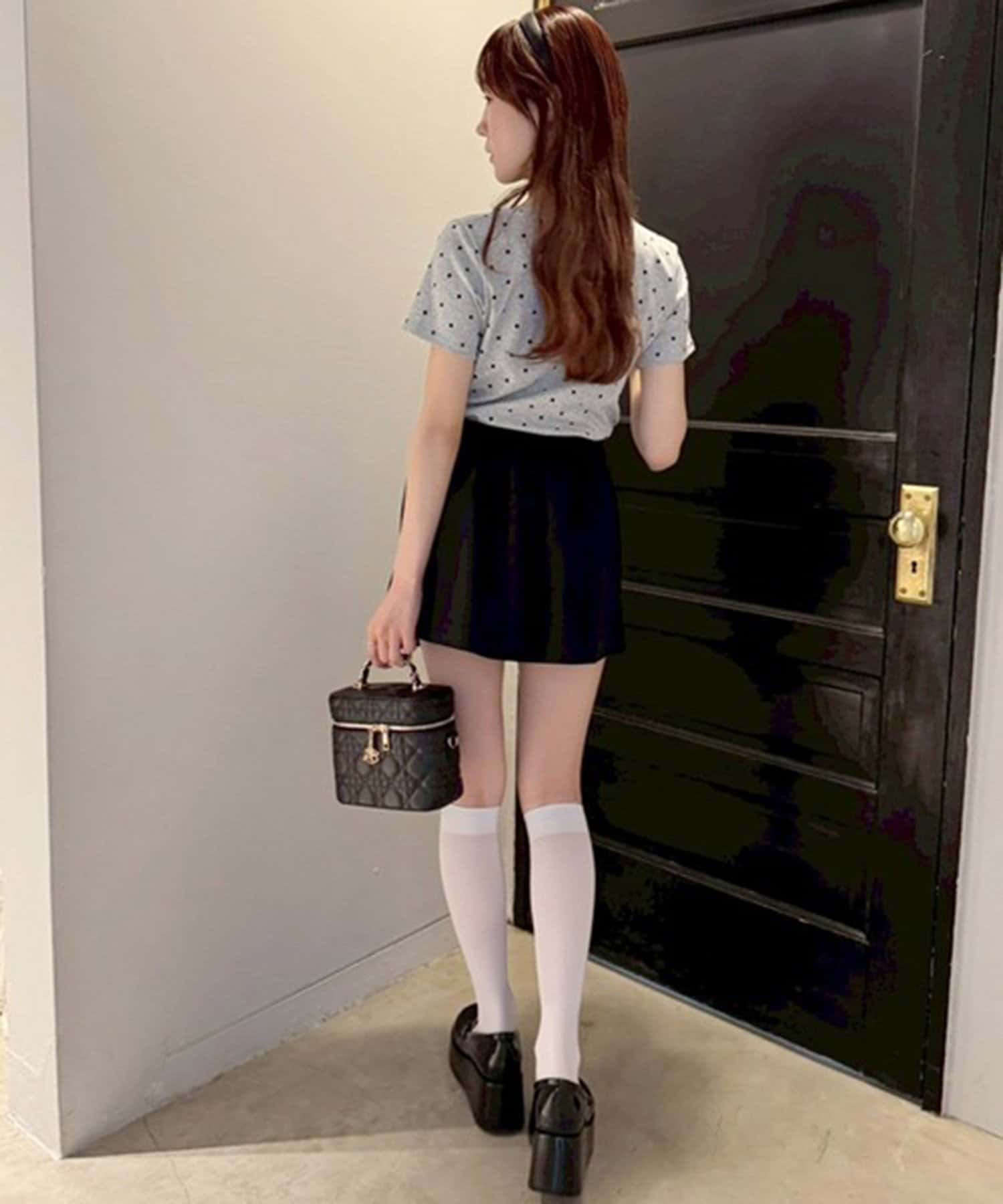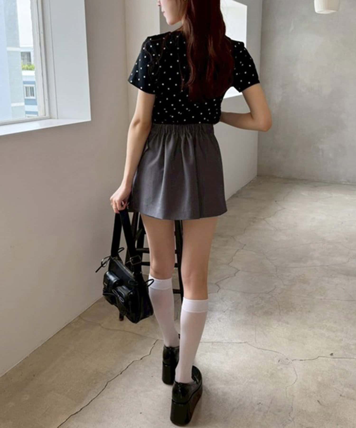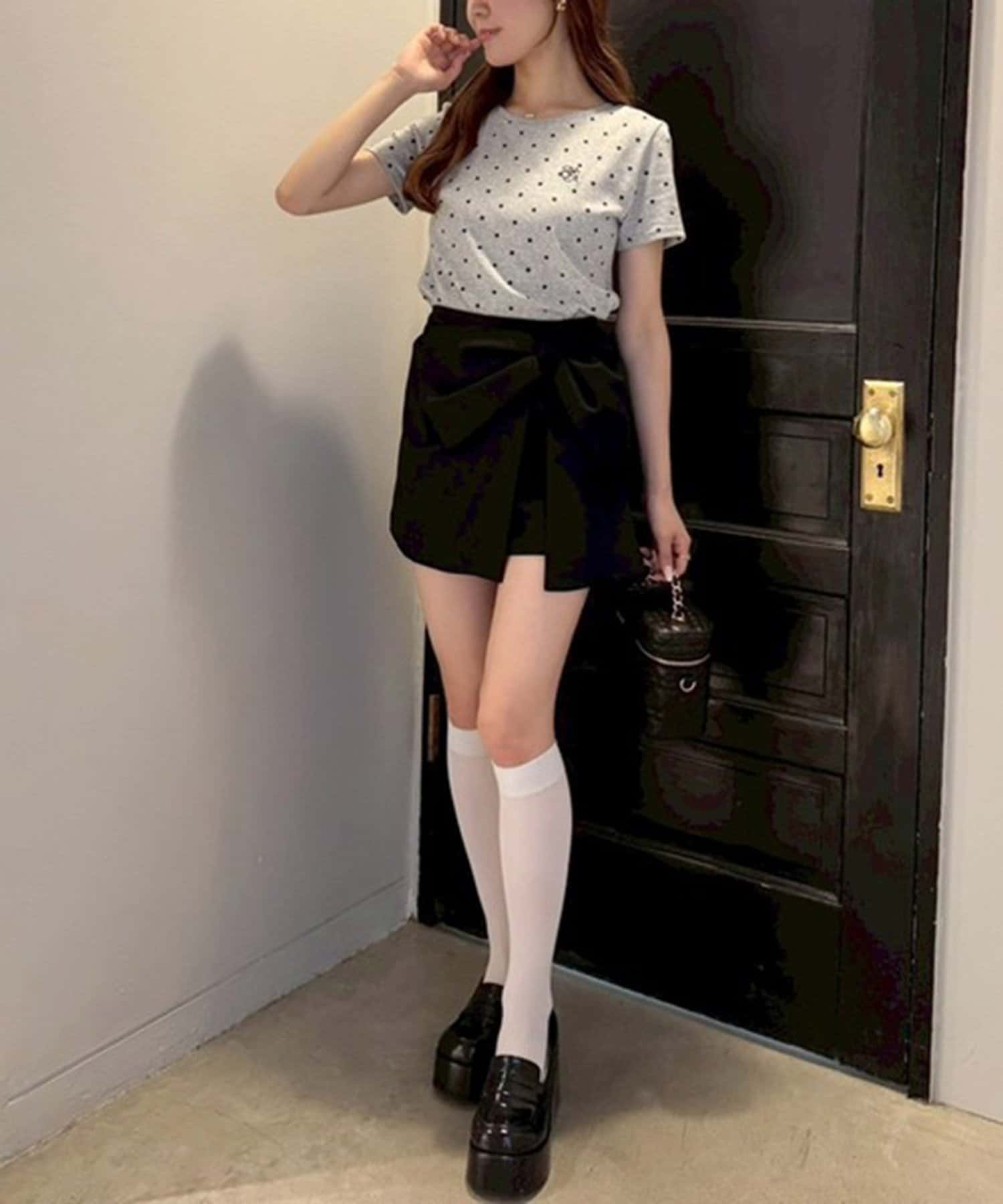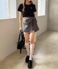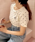 カジュアルになりがちなTシャツも、フェミニンな雰囲気に仕上がるドット柄で、