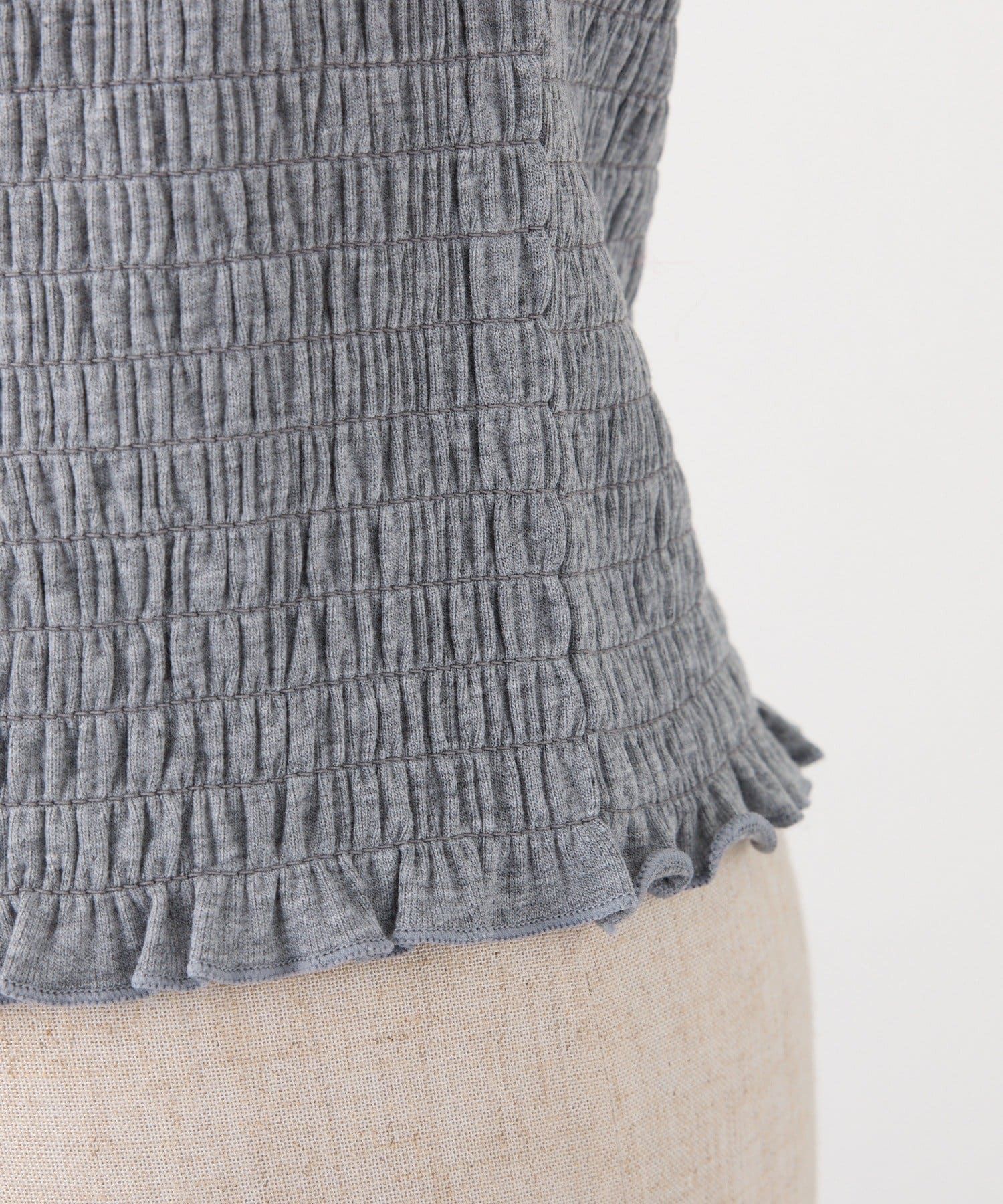 全体にシャーリングを効かせた、フィット感のあるトップス。