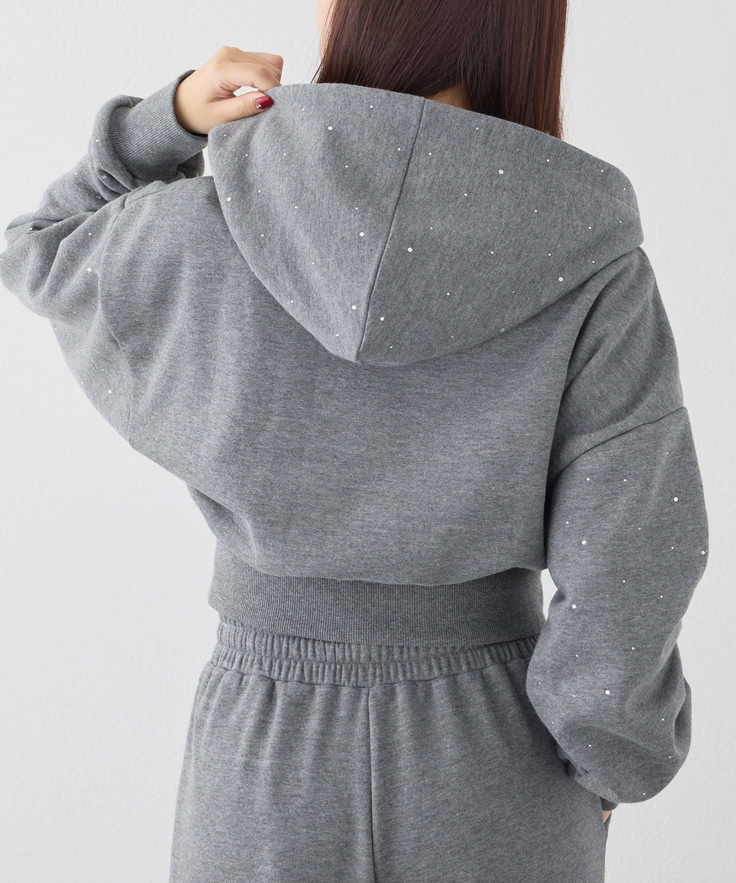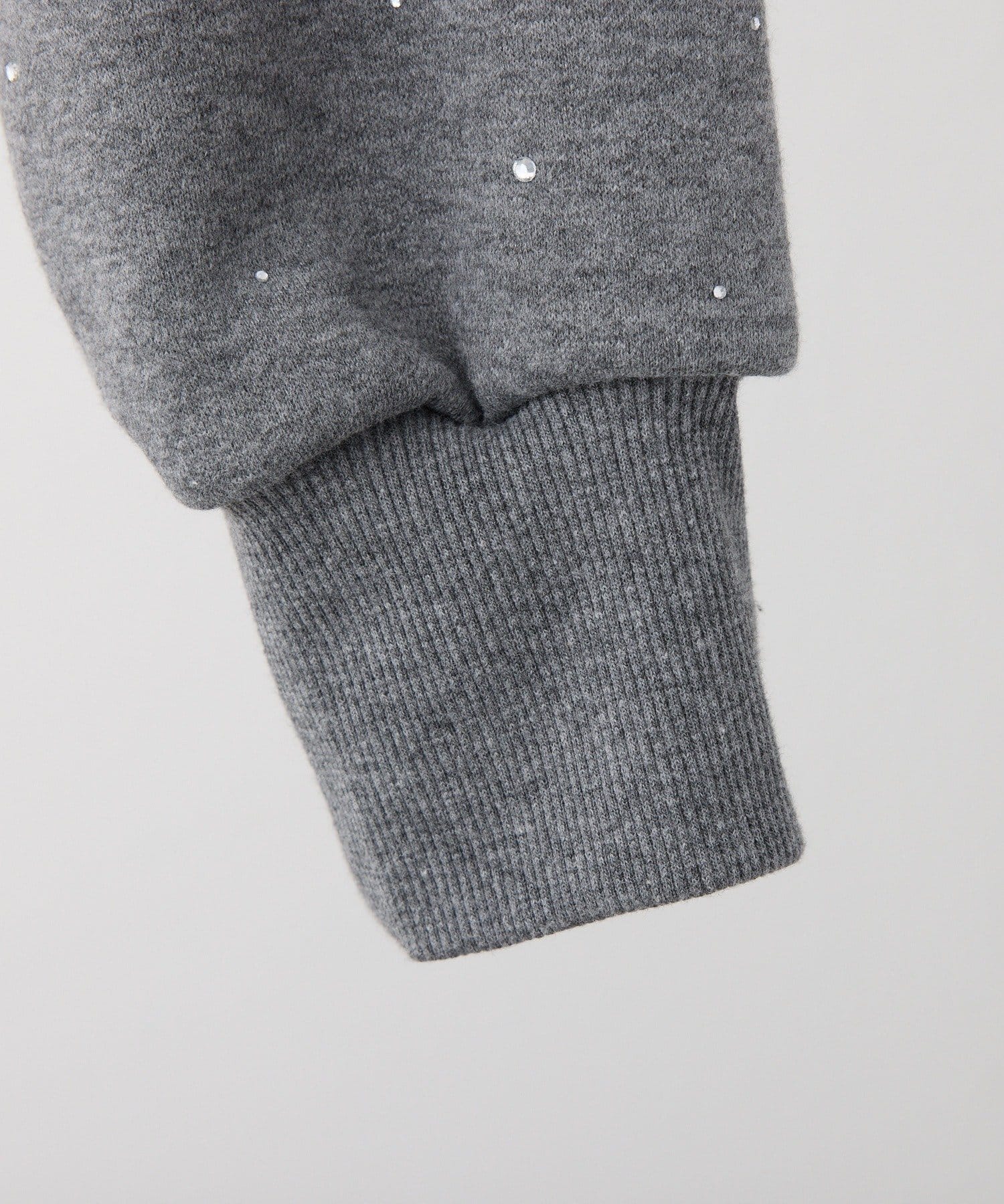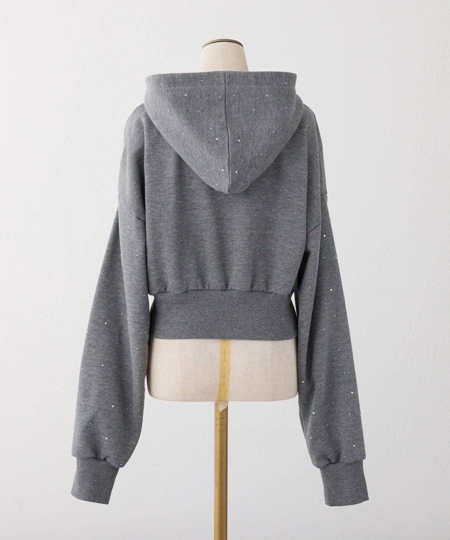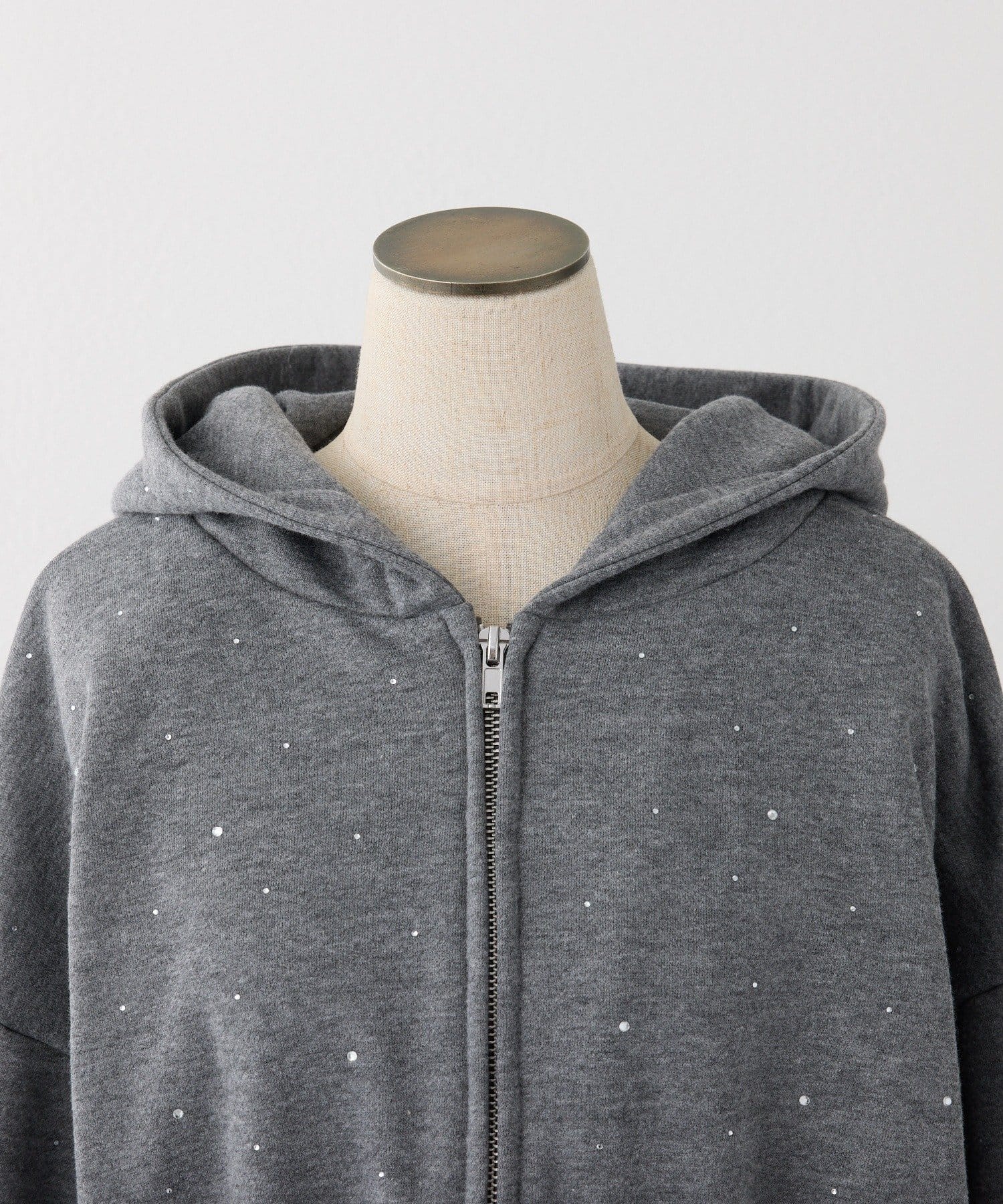 全体ににビジューをあしらった、大人フェミニンなパーカー