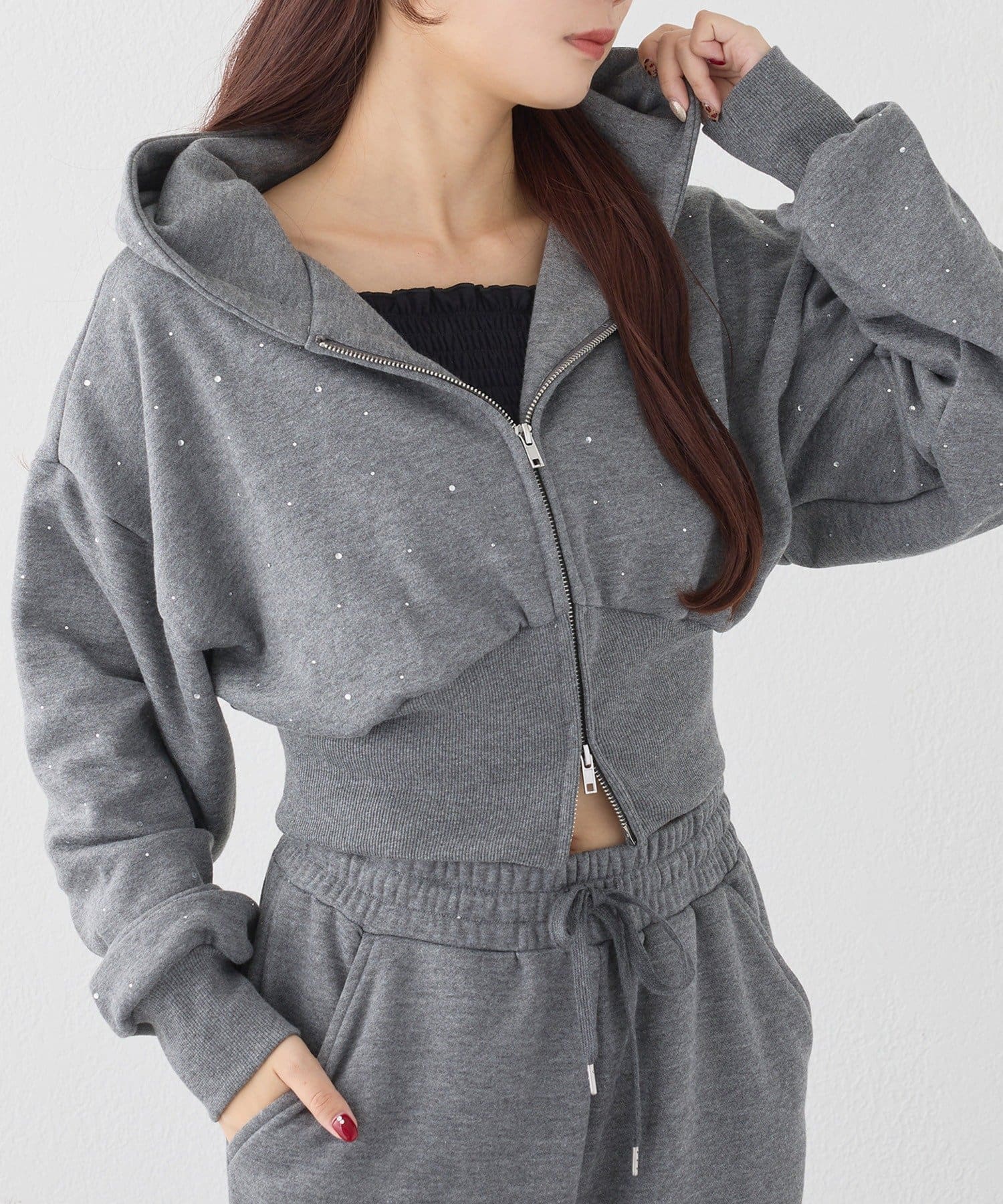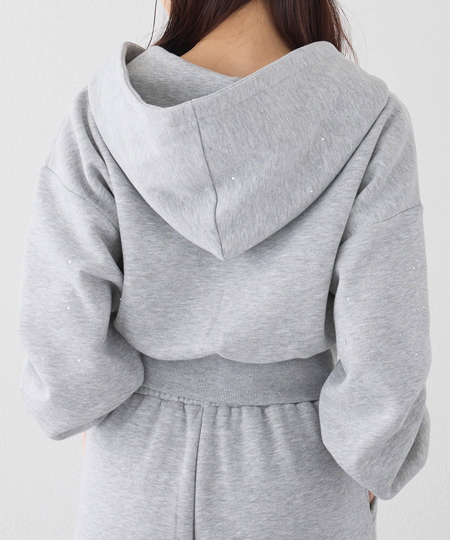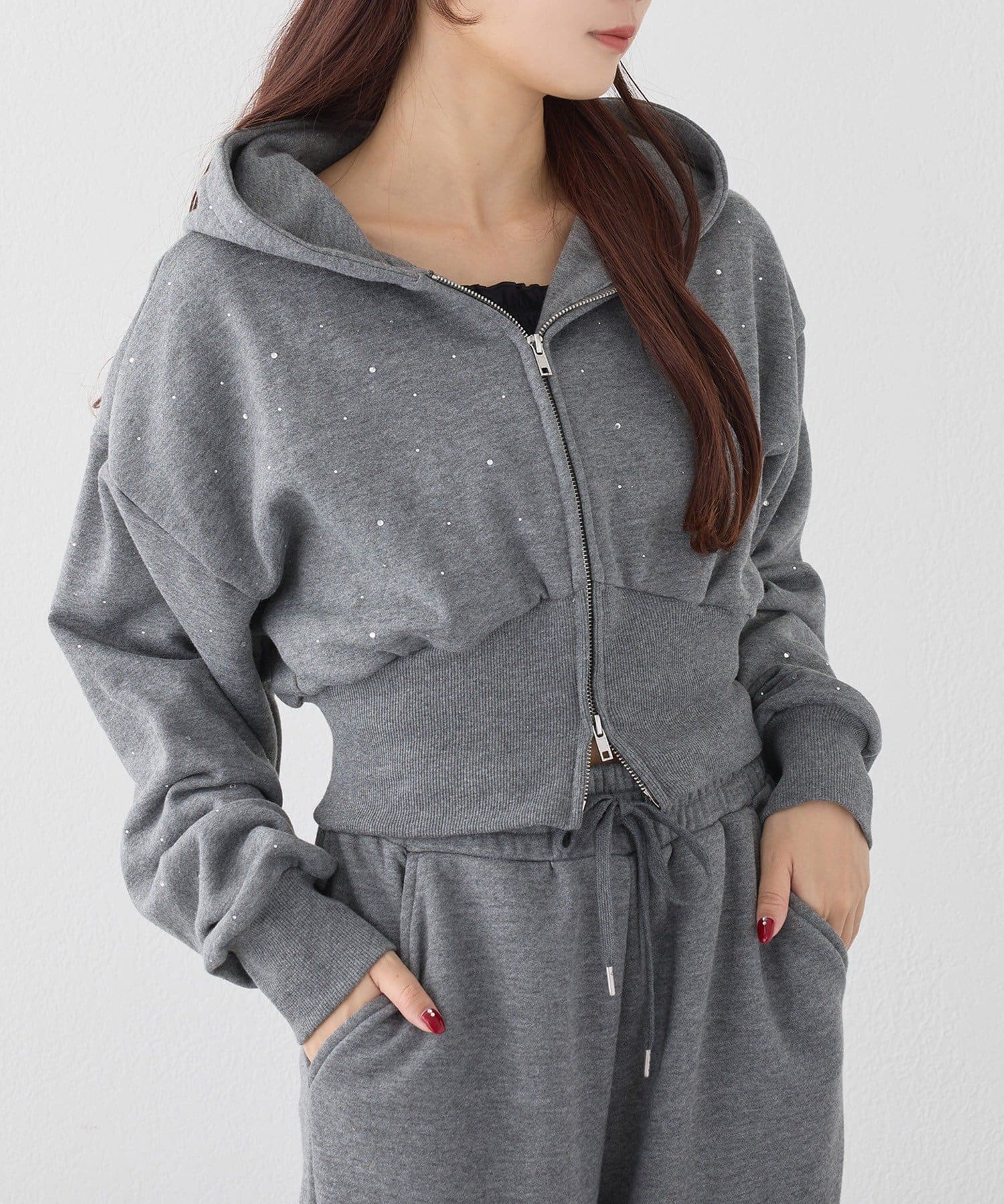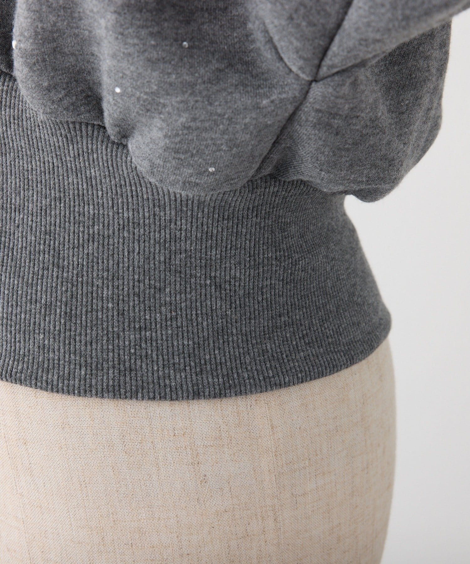 全体ににビジューをあしらった、大人フェミニンなパーカー