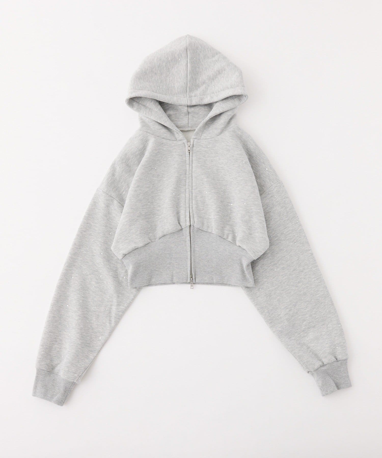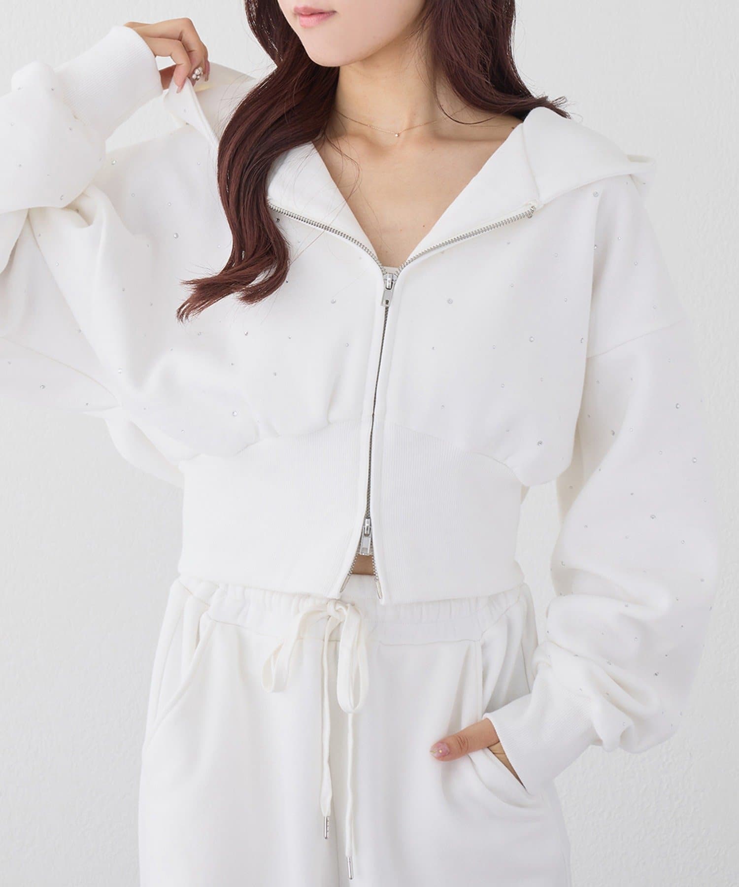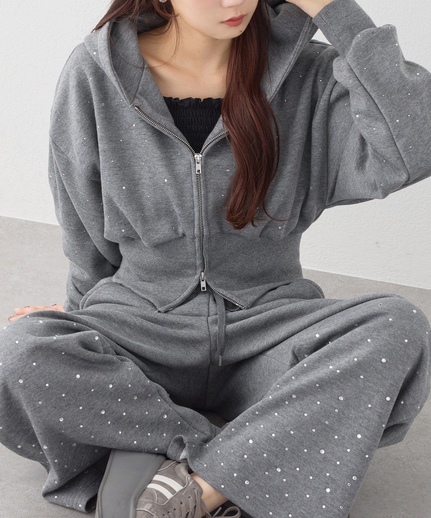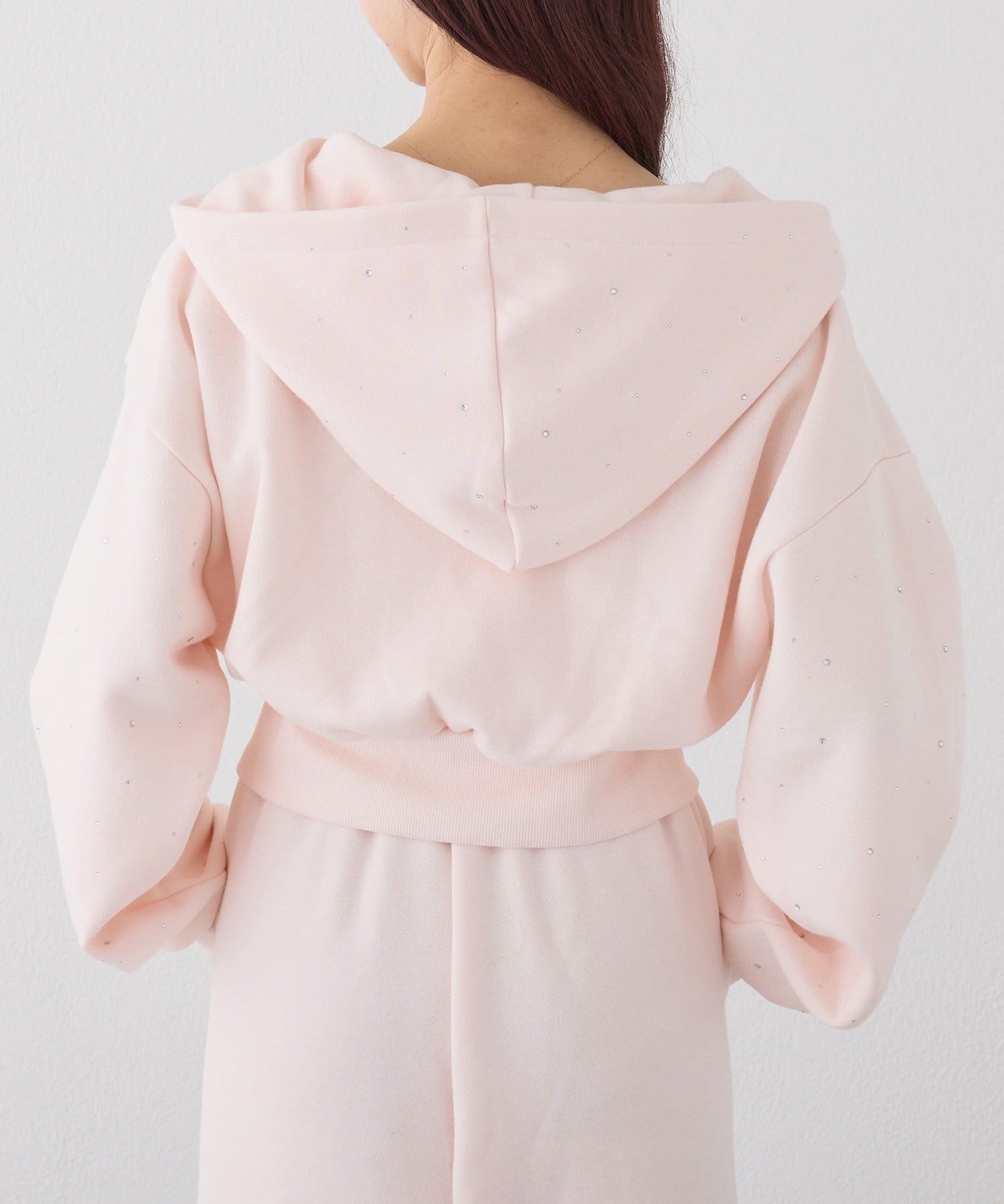 全体ににビジューをあしらった、大人フェミニンなパーカー