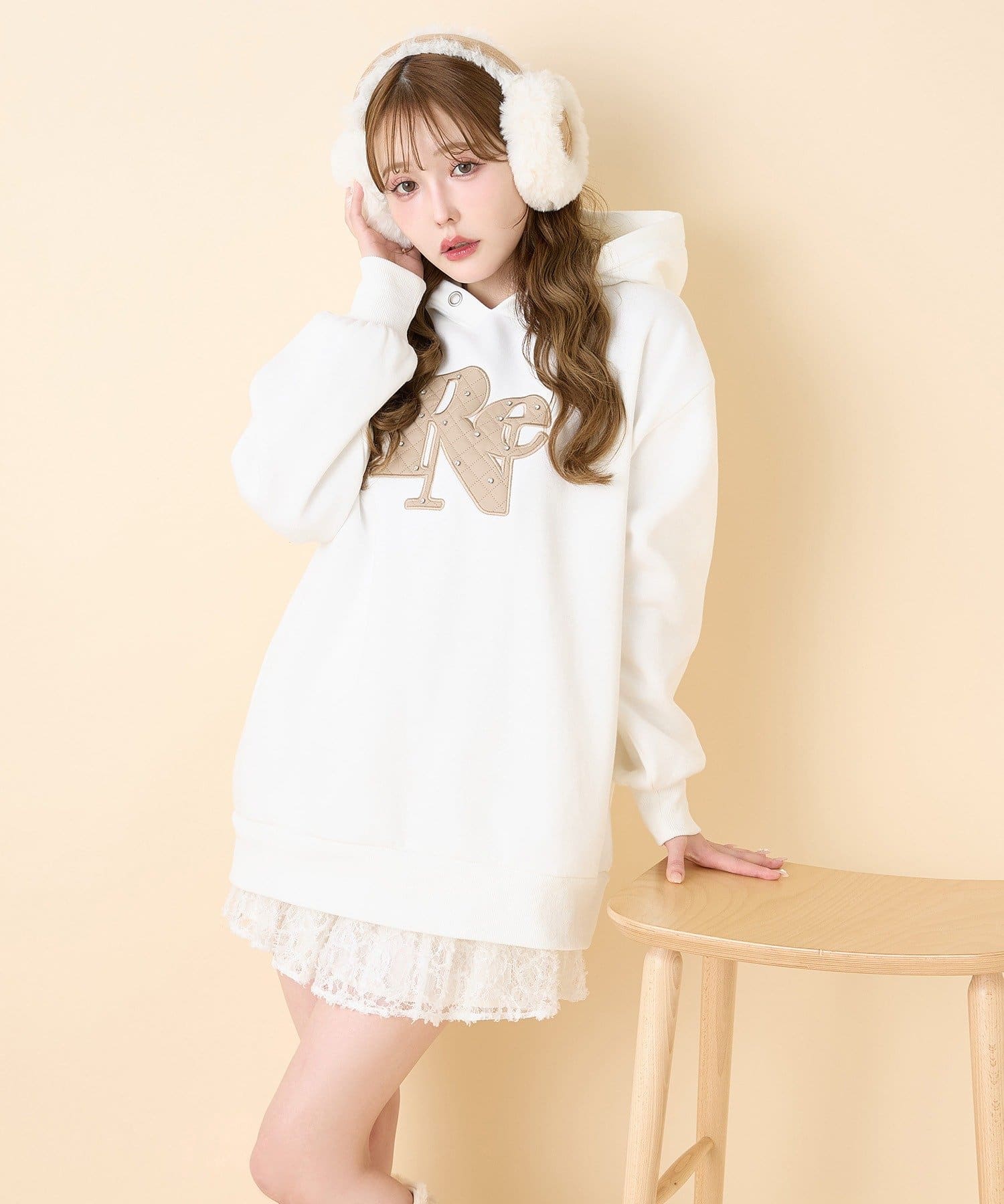 TOP > one after another NICE CLAUP > レディース > トップス > Tシャツ/カットソー > キルティングロゴゆるパーカー