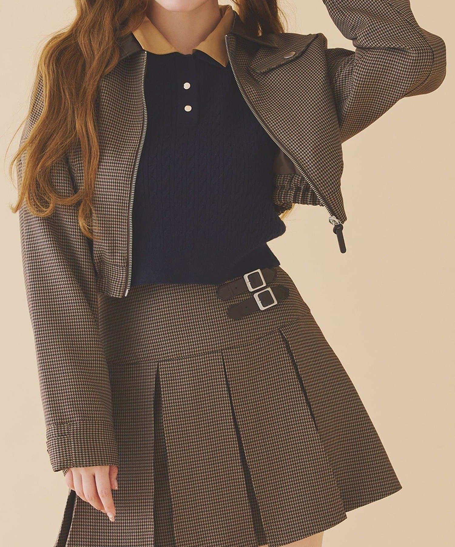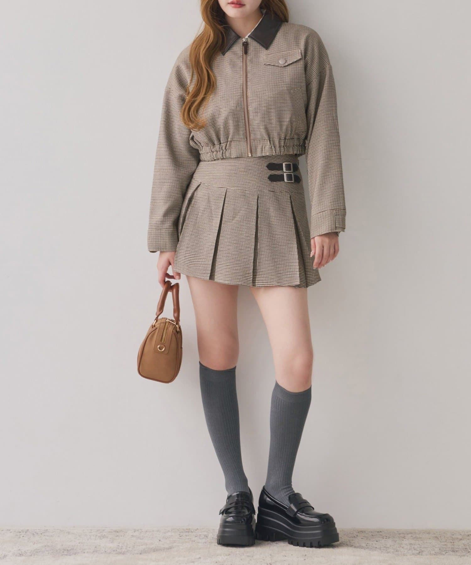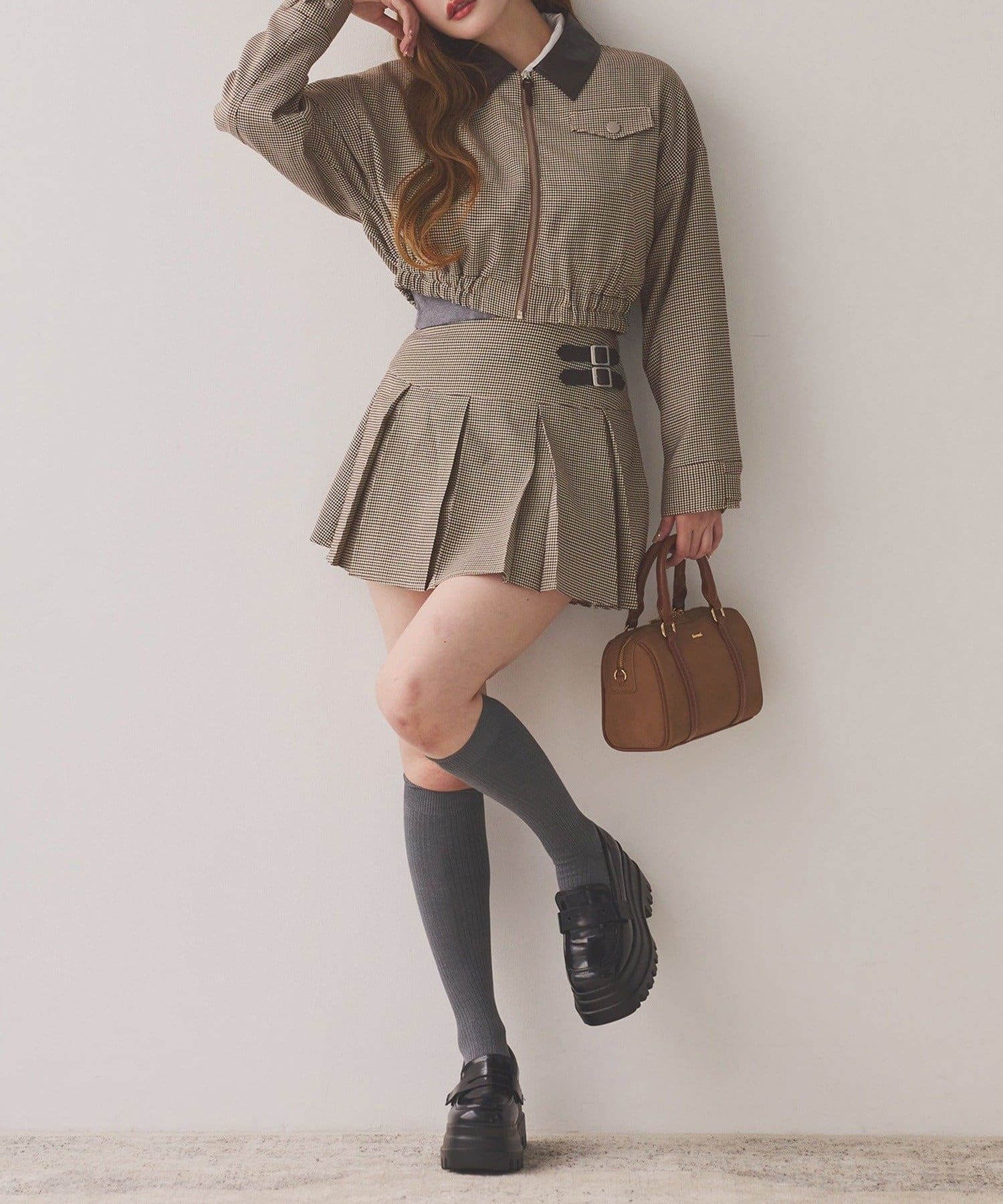ミニボトム×ハイソックス×スニーカーで、トレンドライクなスタイルに。