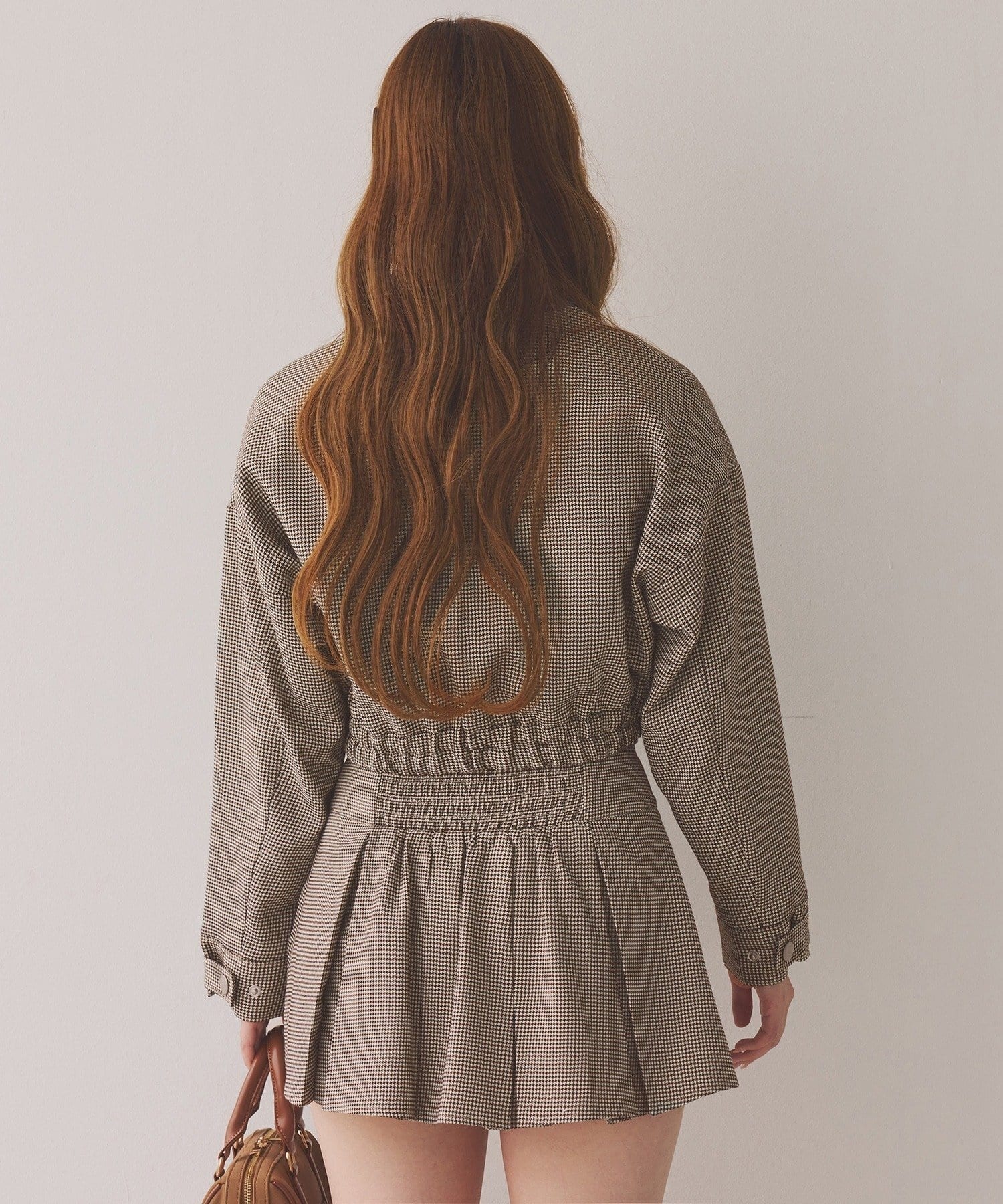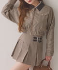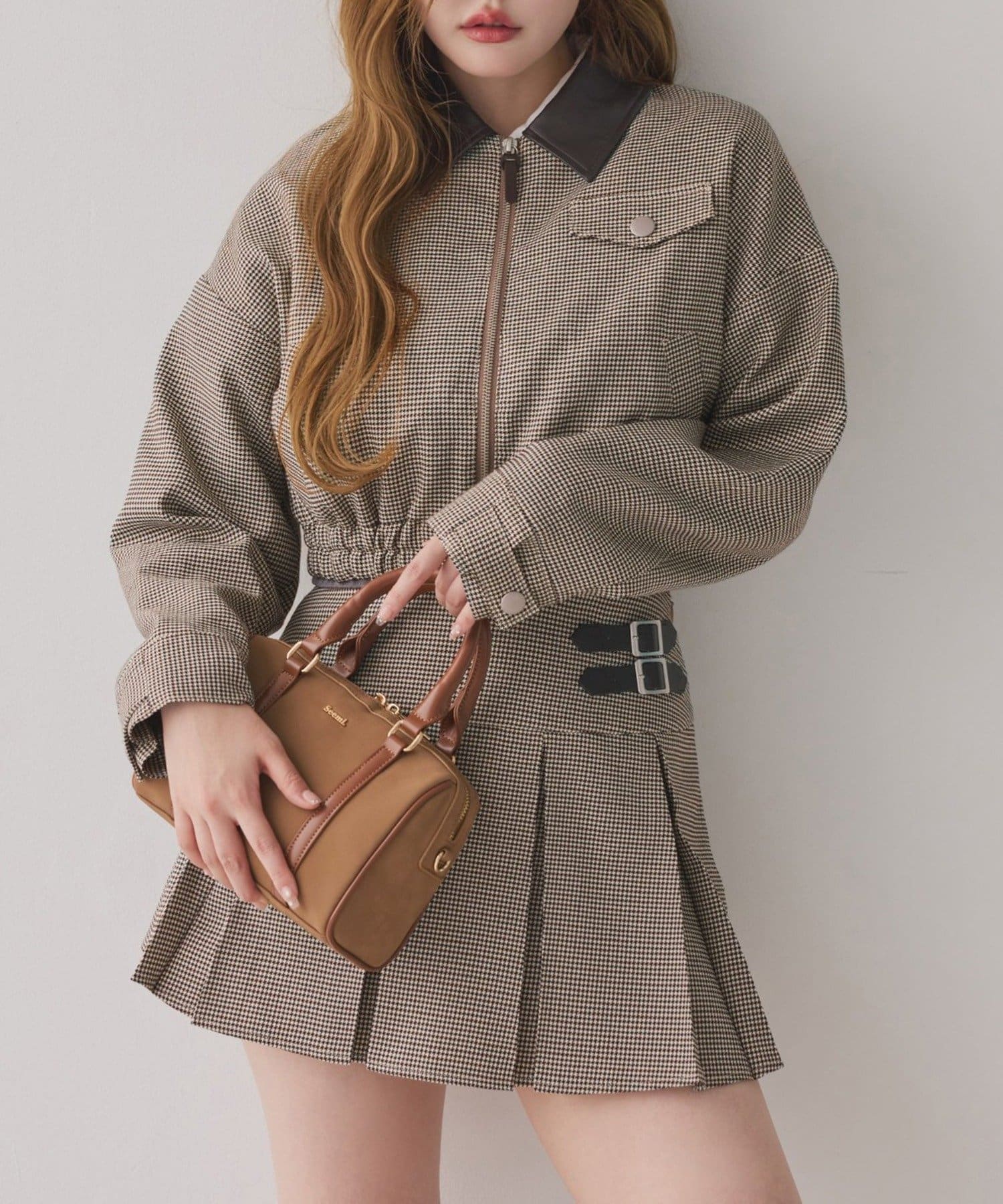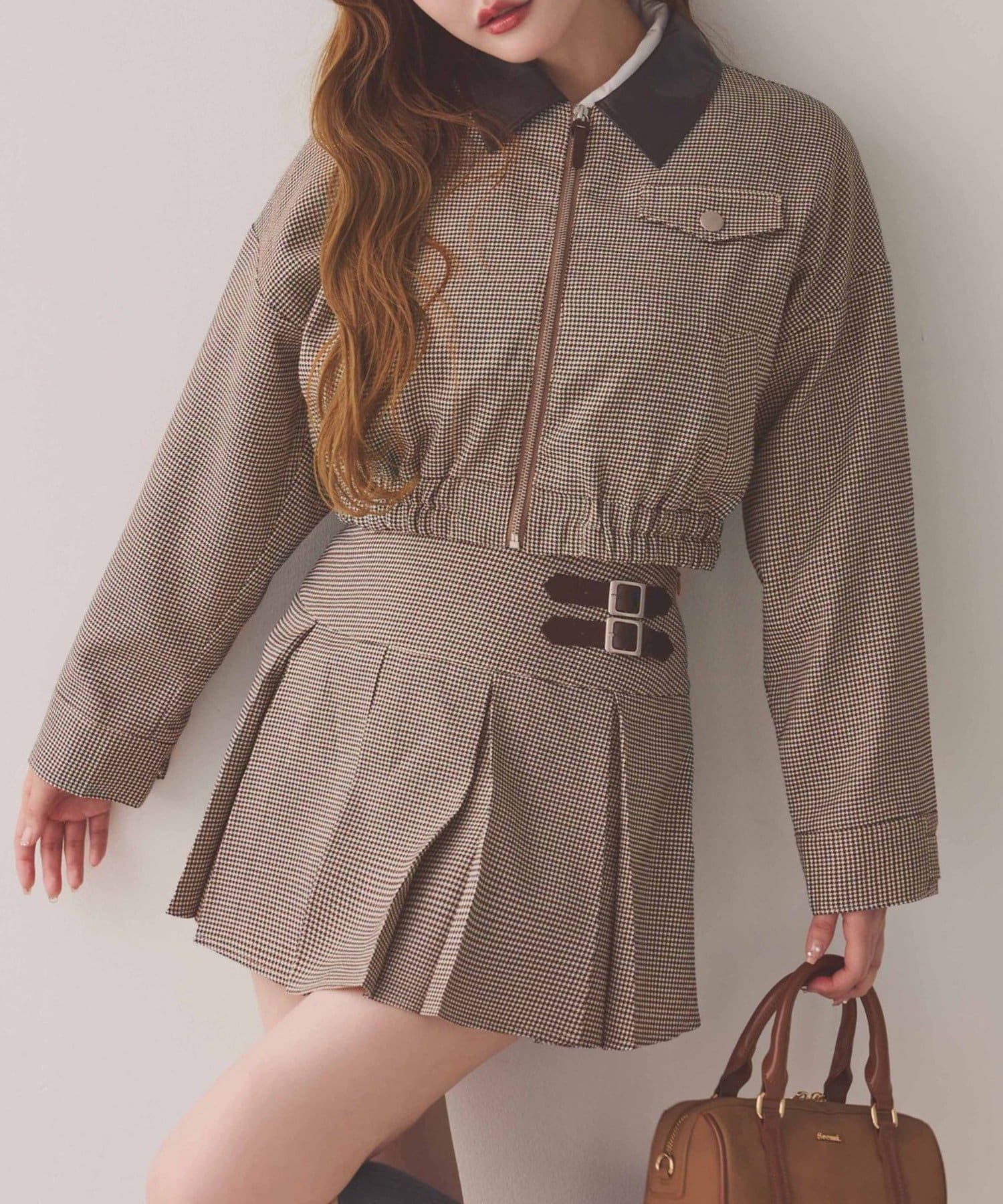 ミニボトム×ハイソックス×スニーカーで、トレンドライクなスタイルに。