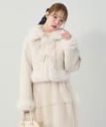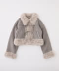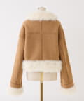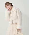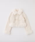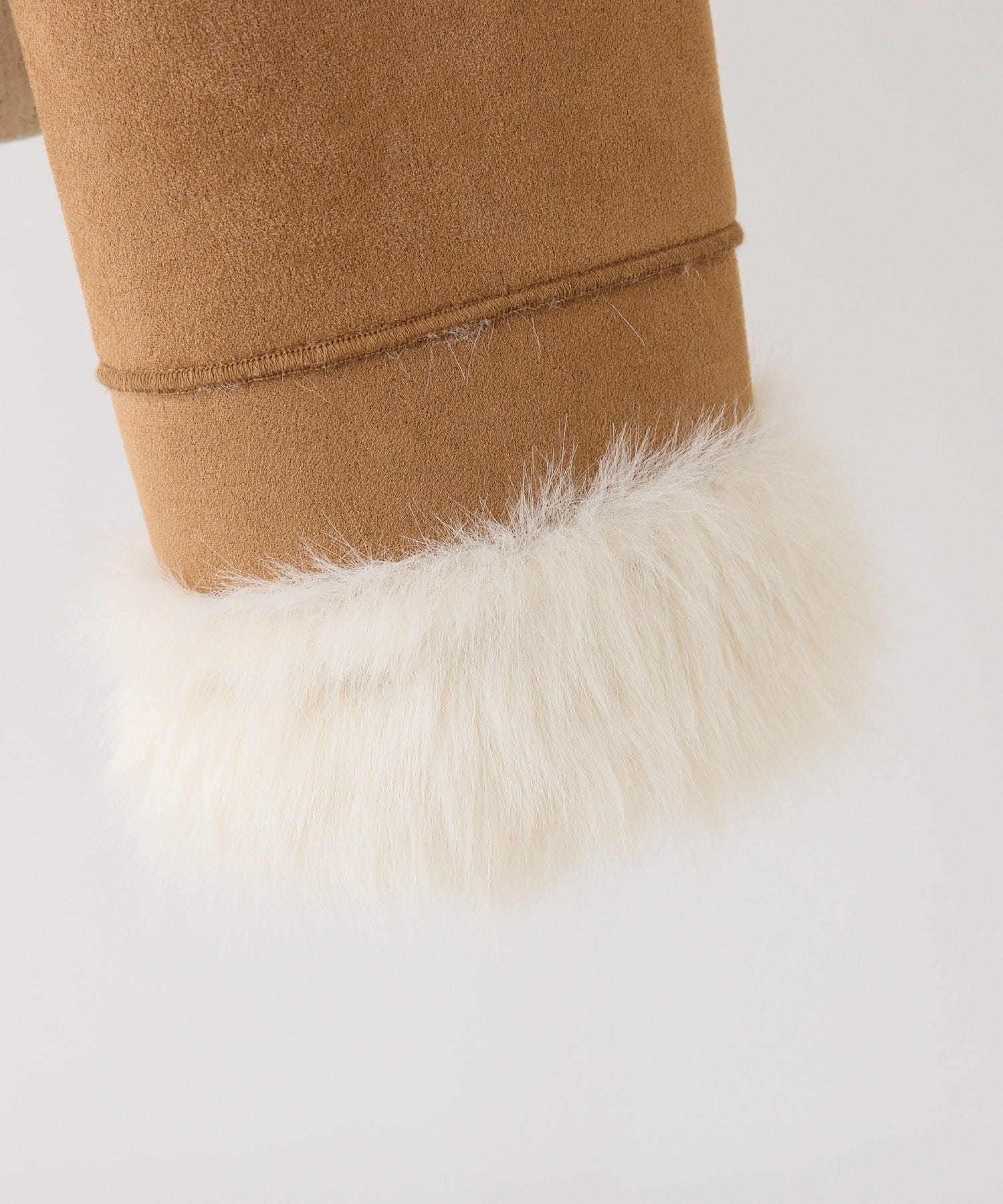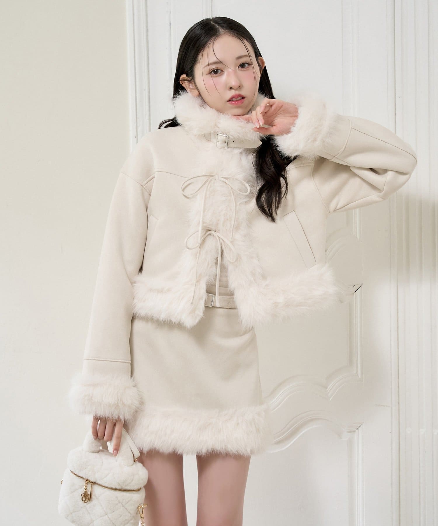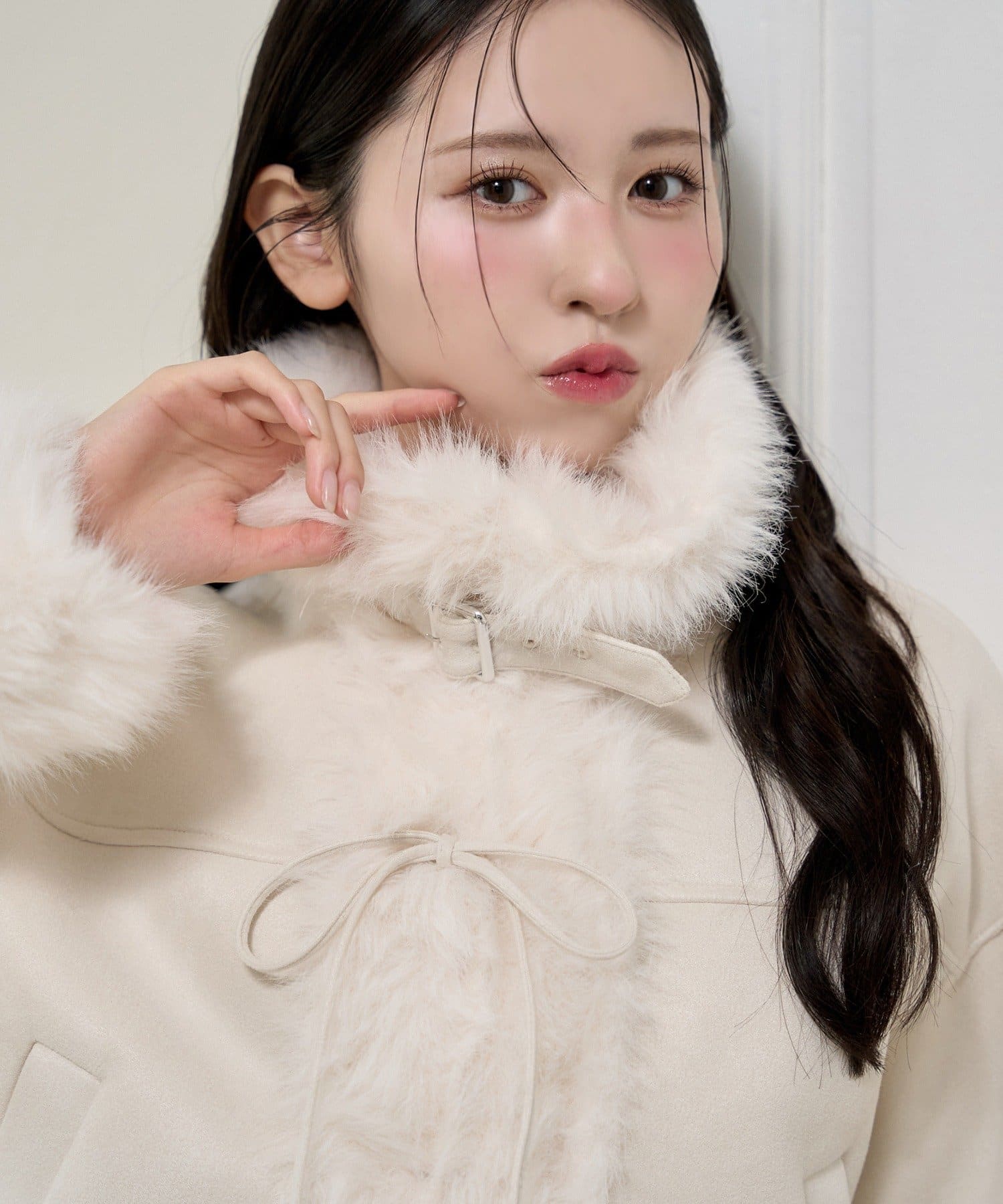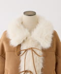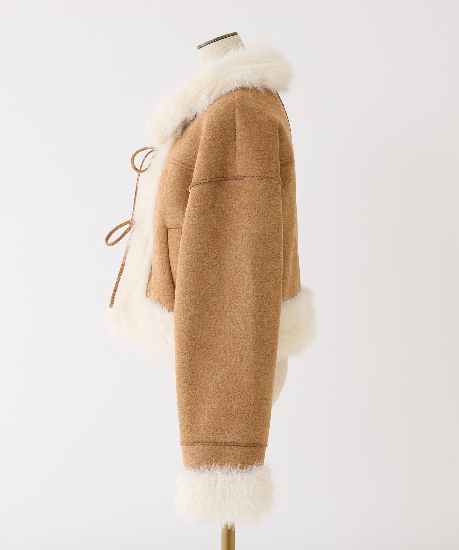 リボンディテールが可愛いアクセントになったショート丈のフェイクムートンコート。