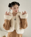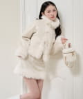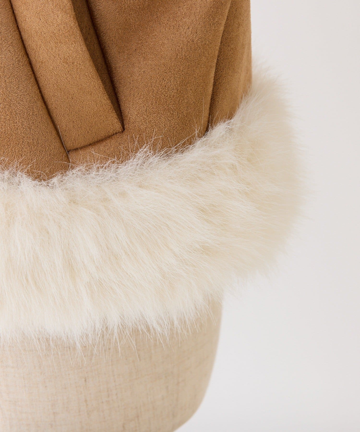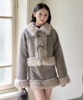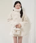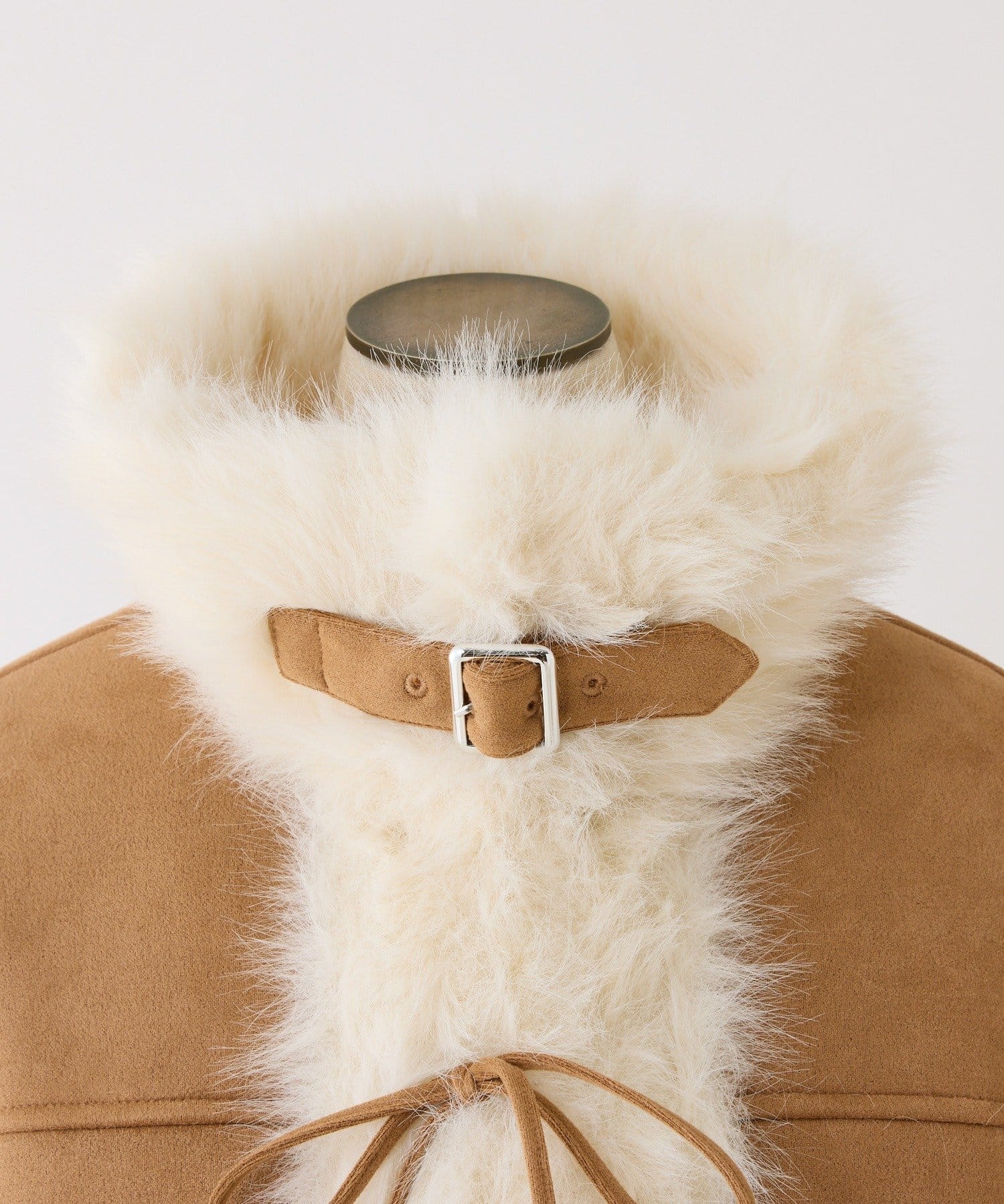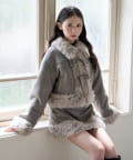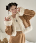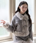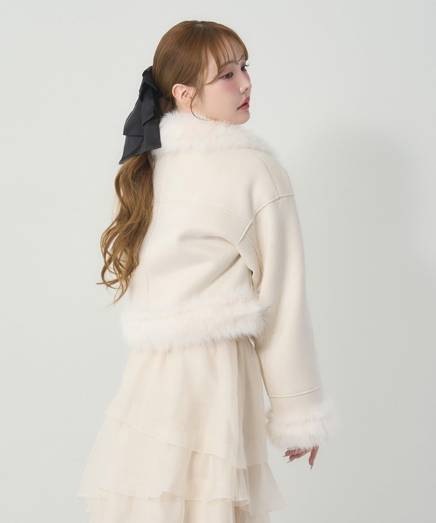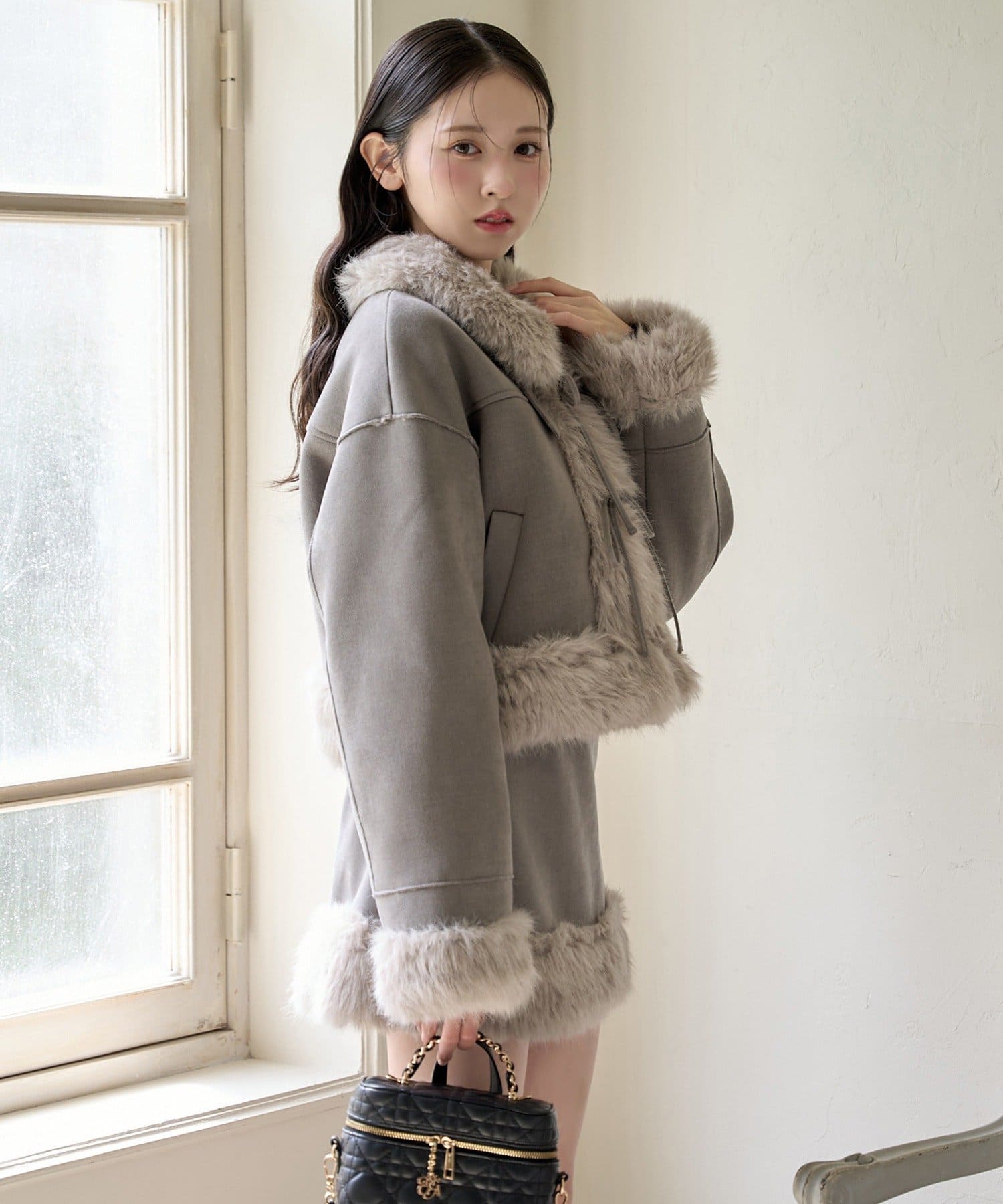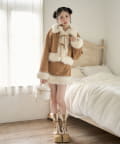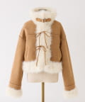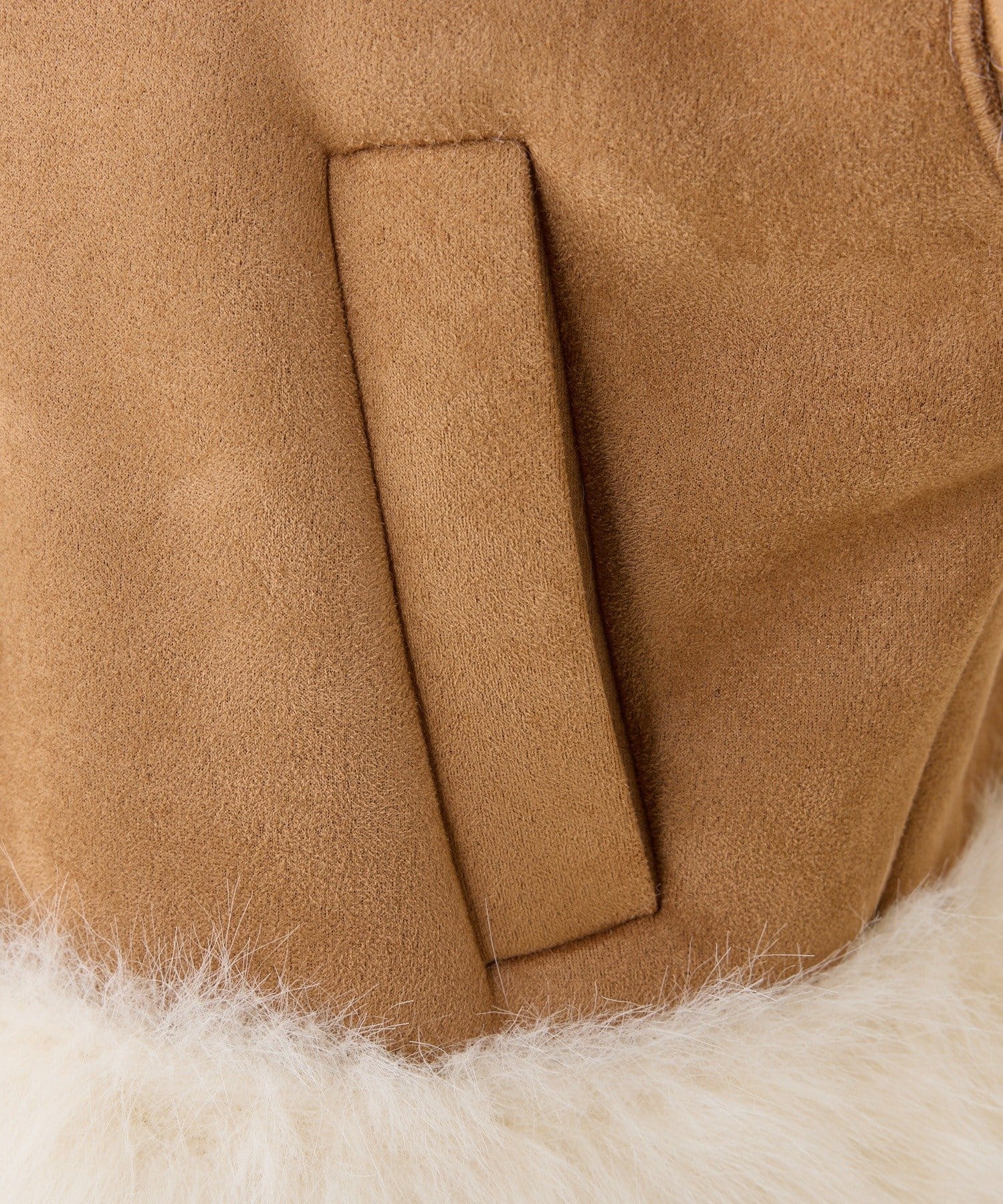 リボンディテールが可愛いアクセントになったショート丈のフェイクムートンコート。