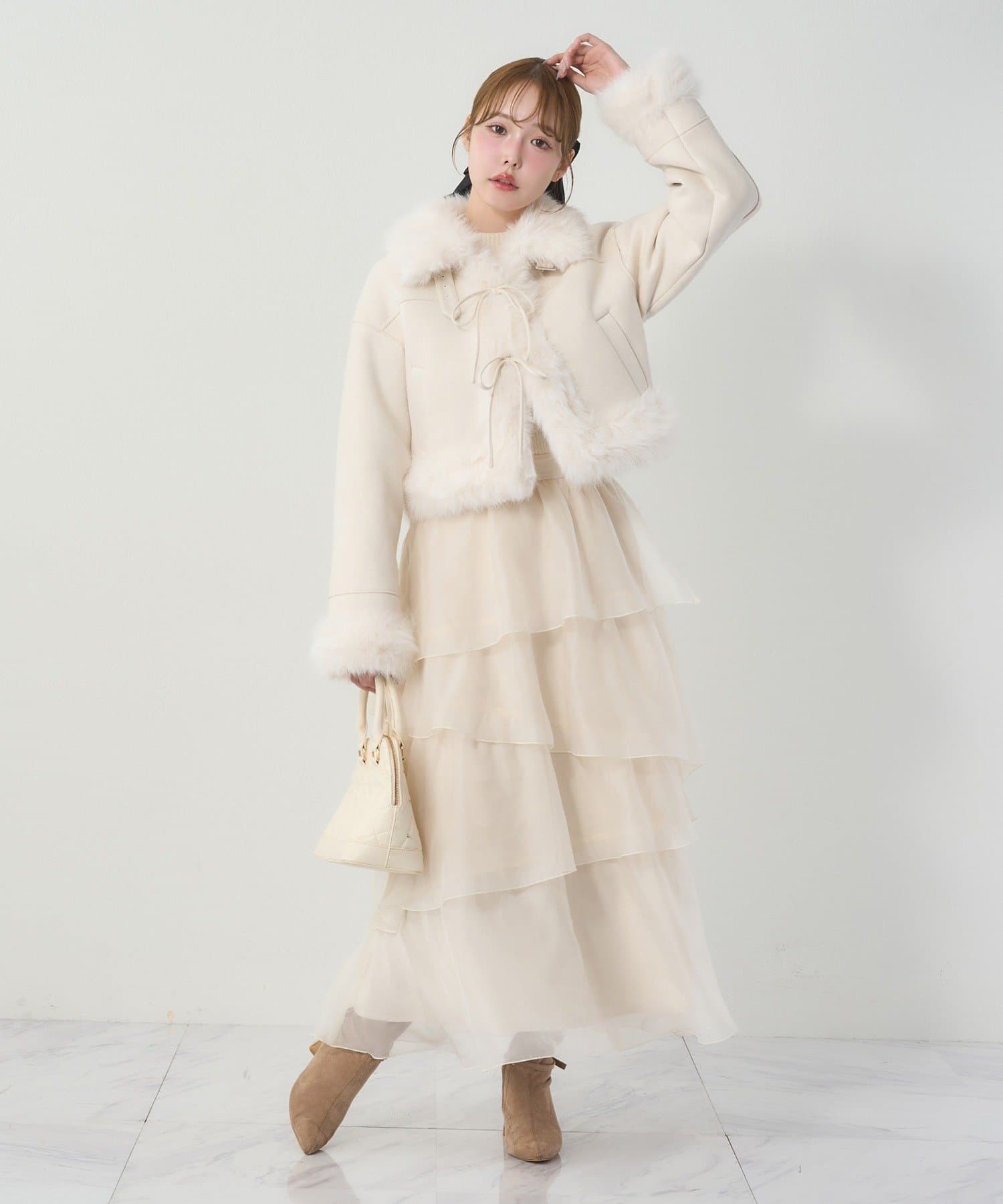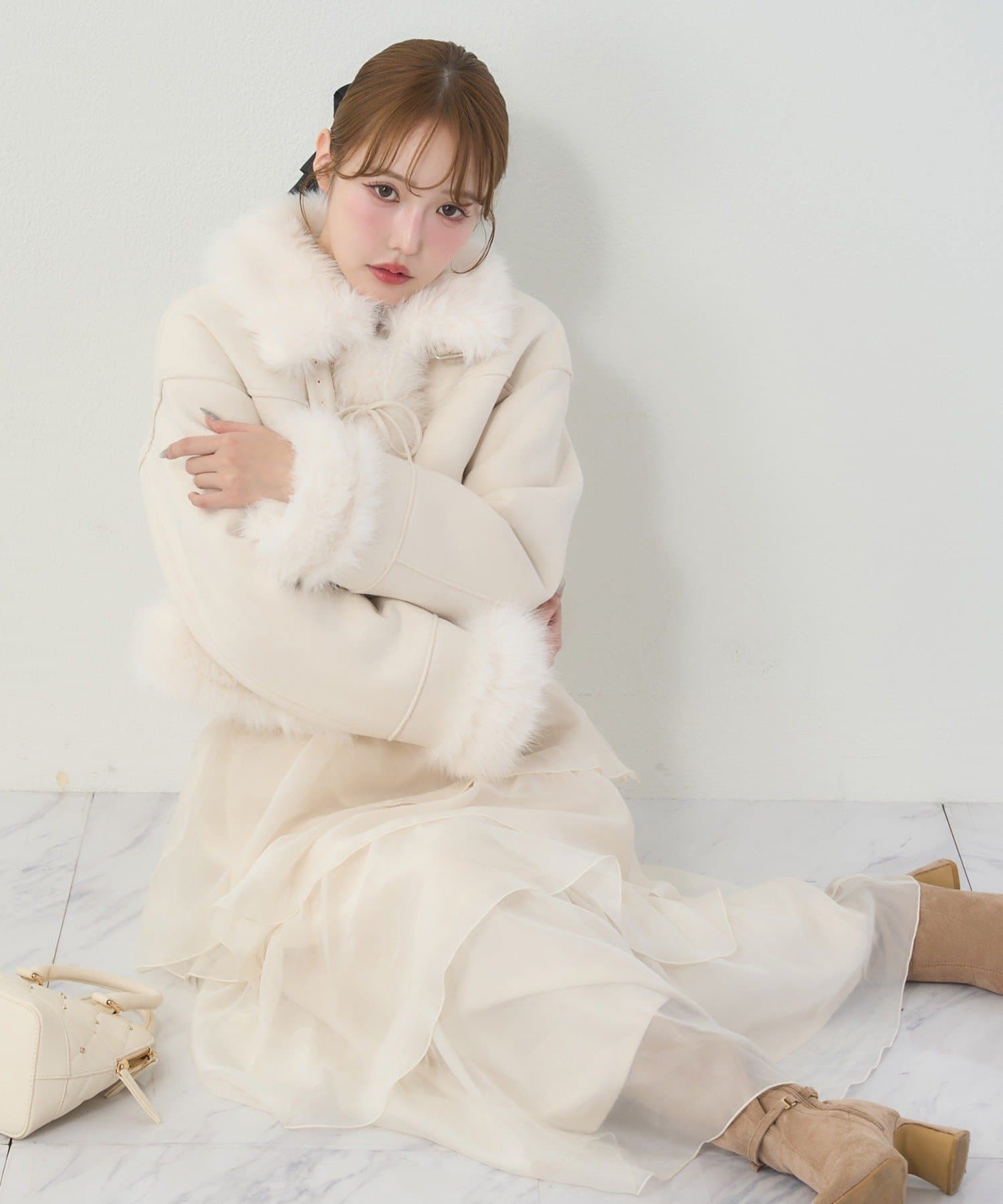 ふんわり柔らかな素材感で、暖かさと大人可愛さを両立した一枚です。
