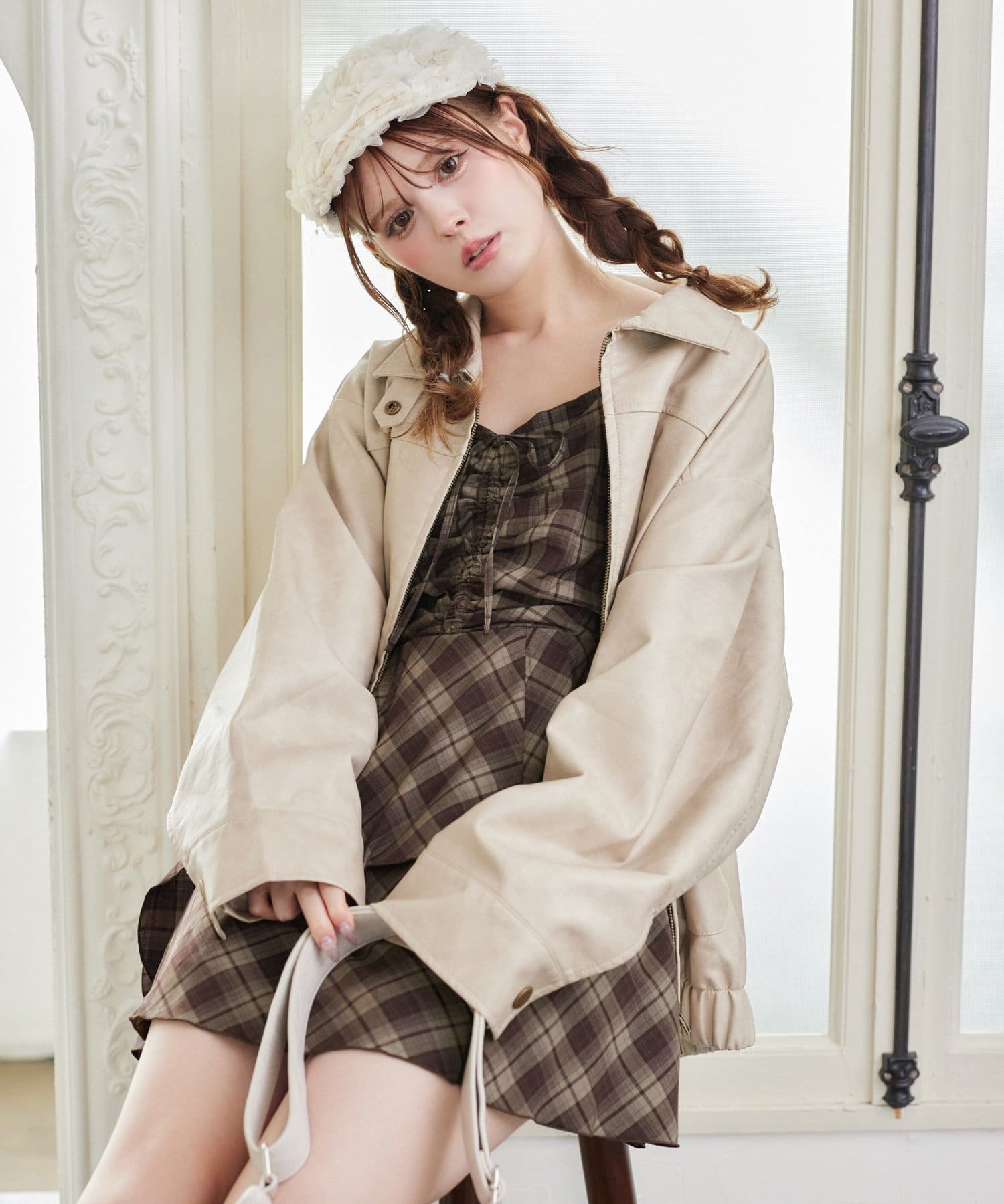 オーバーサイズのシルエットが女の子らしい可愛いシルエットを演出してくれます。