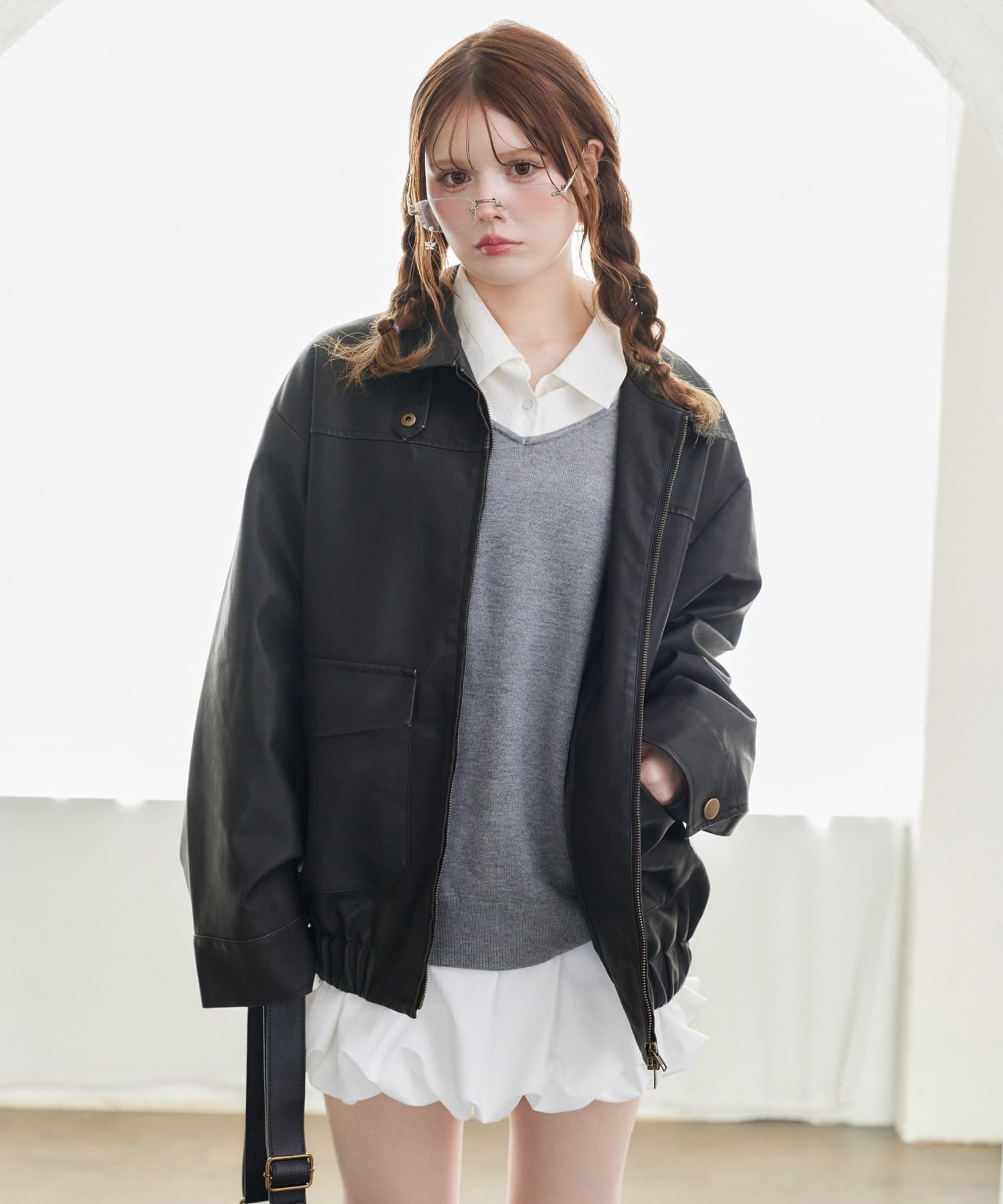 秋始めの羽織りにピッタリなフェイクレザージャケット
