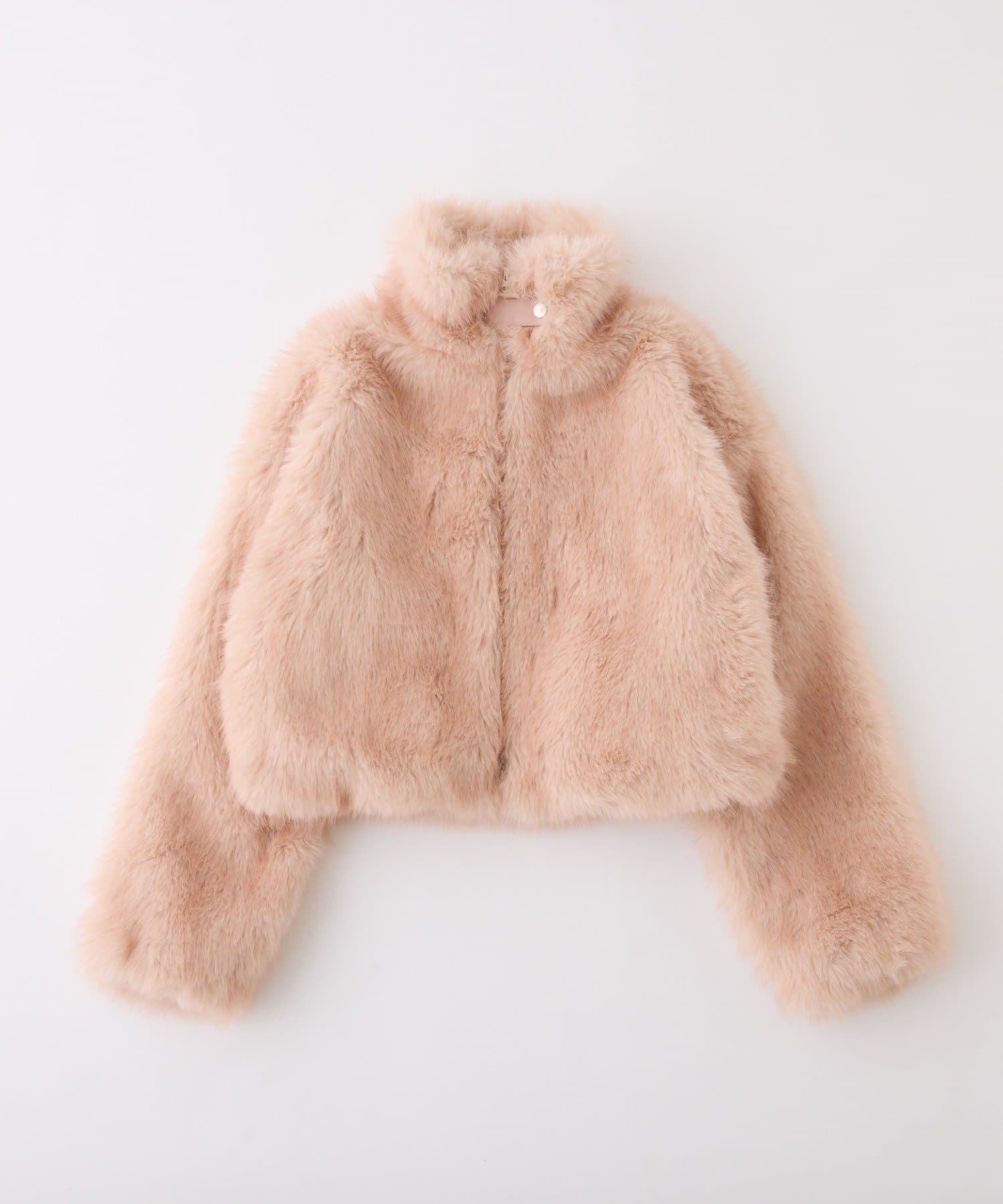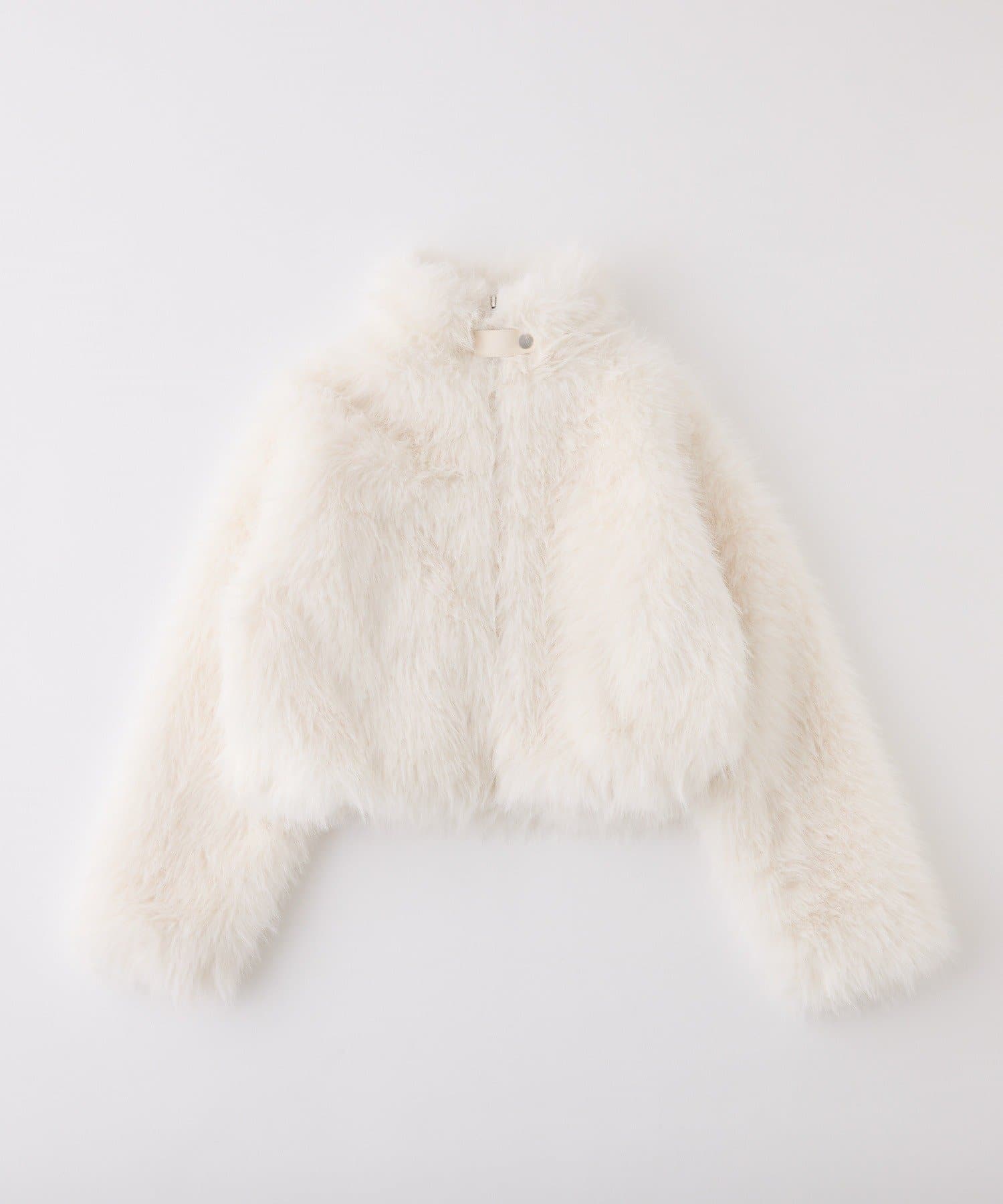 ふわふわのフェイクファーがシーズンムードを盛り上げてくれるショート丈ジャケット。
