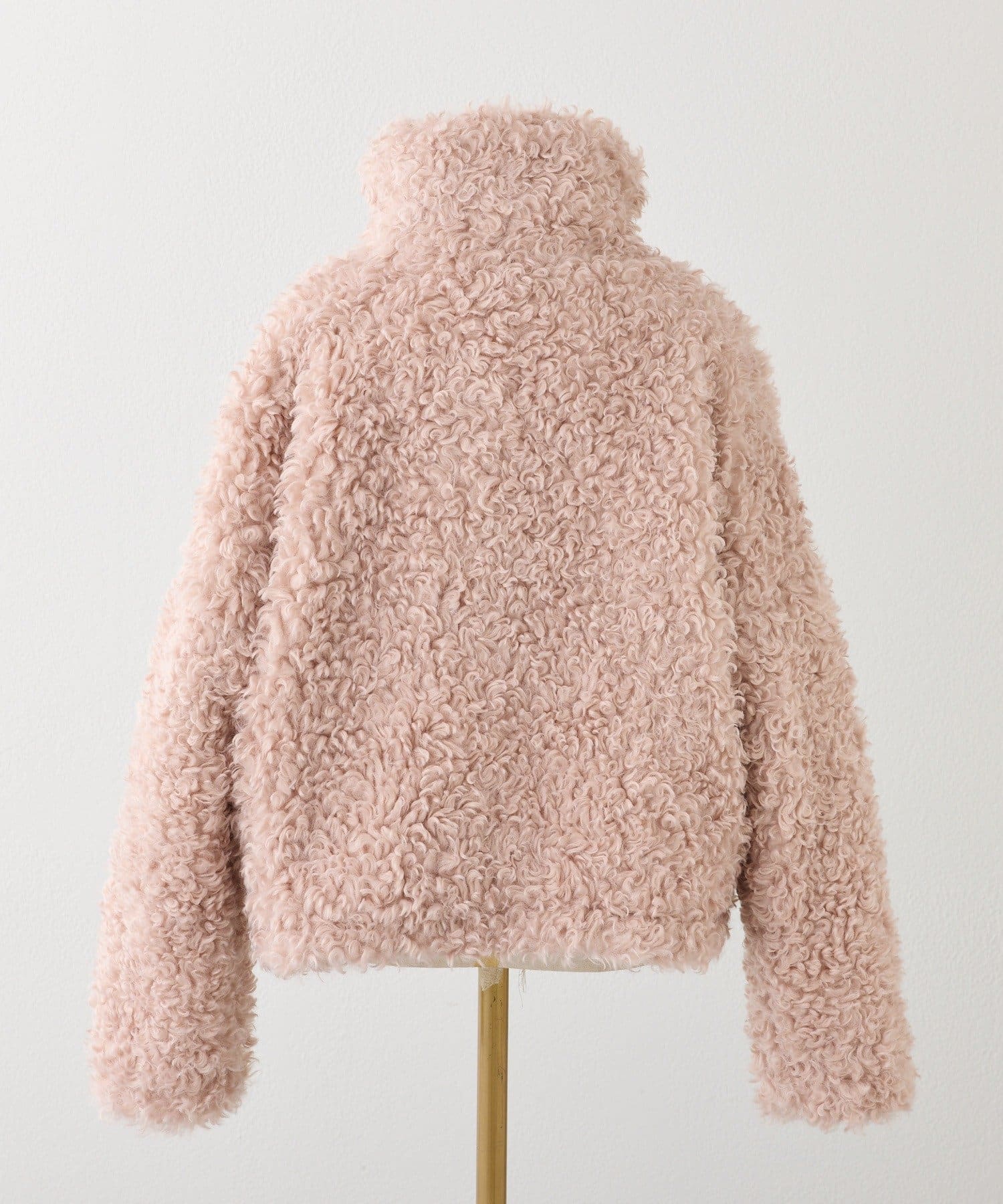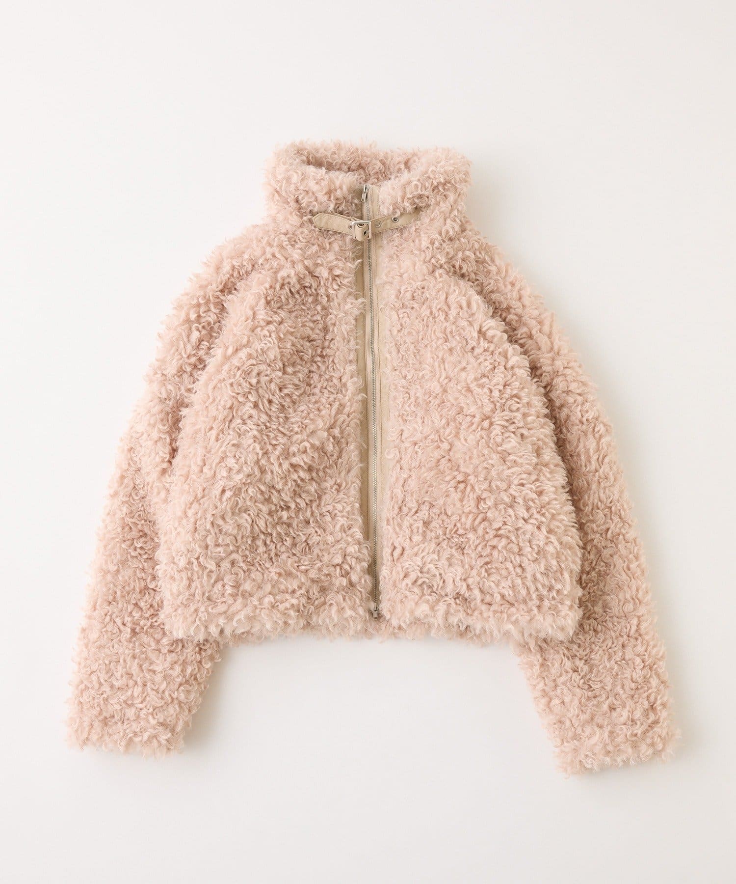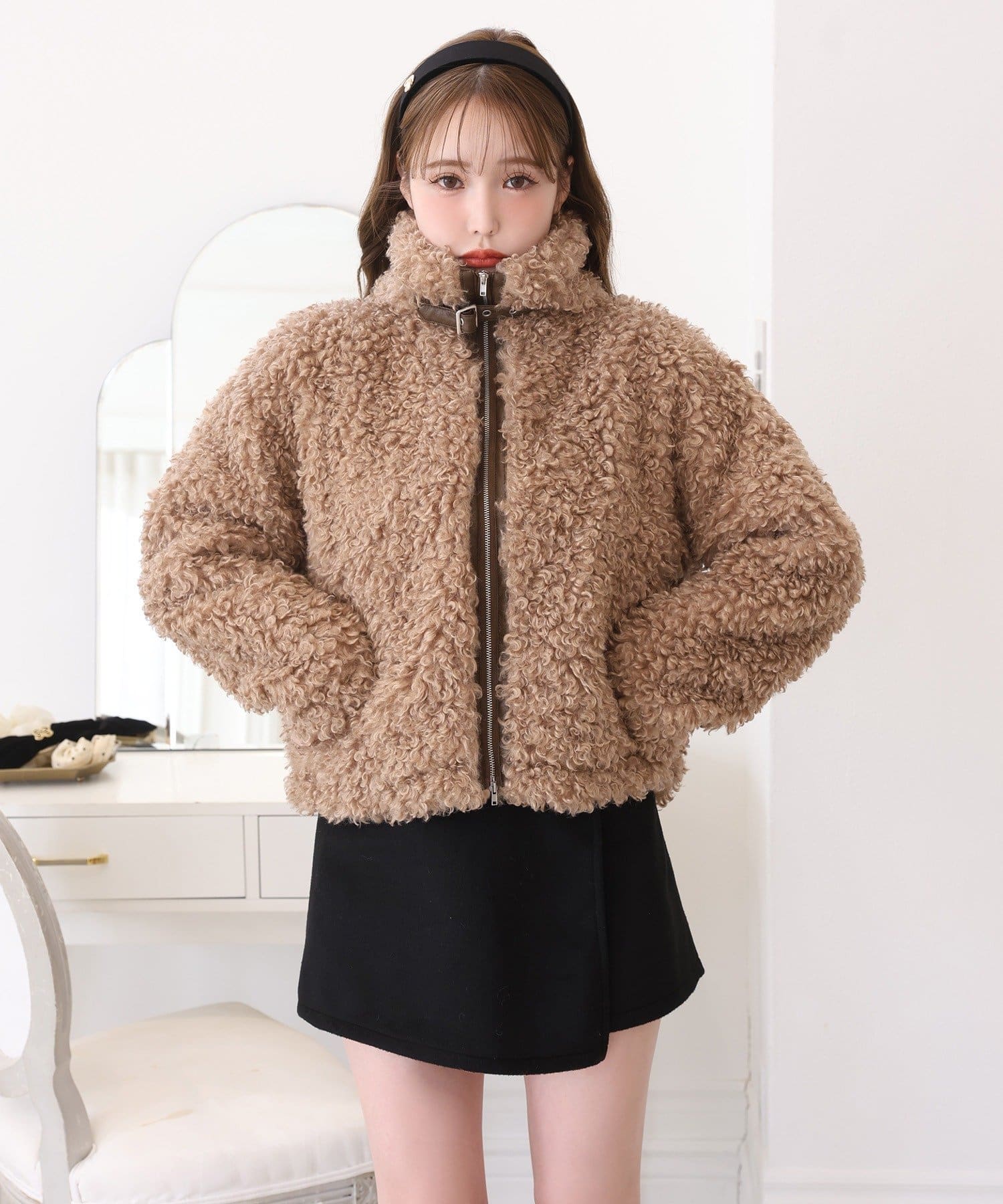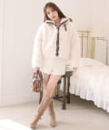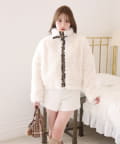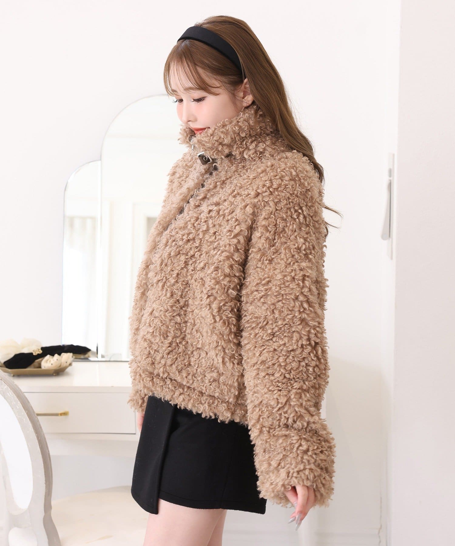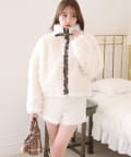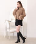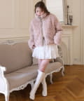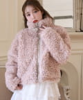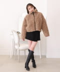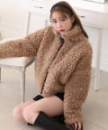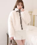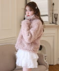 ふわふわのプードル素材で仕立てたショート丈コート。