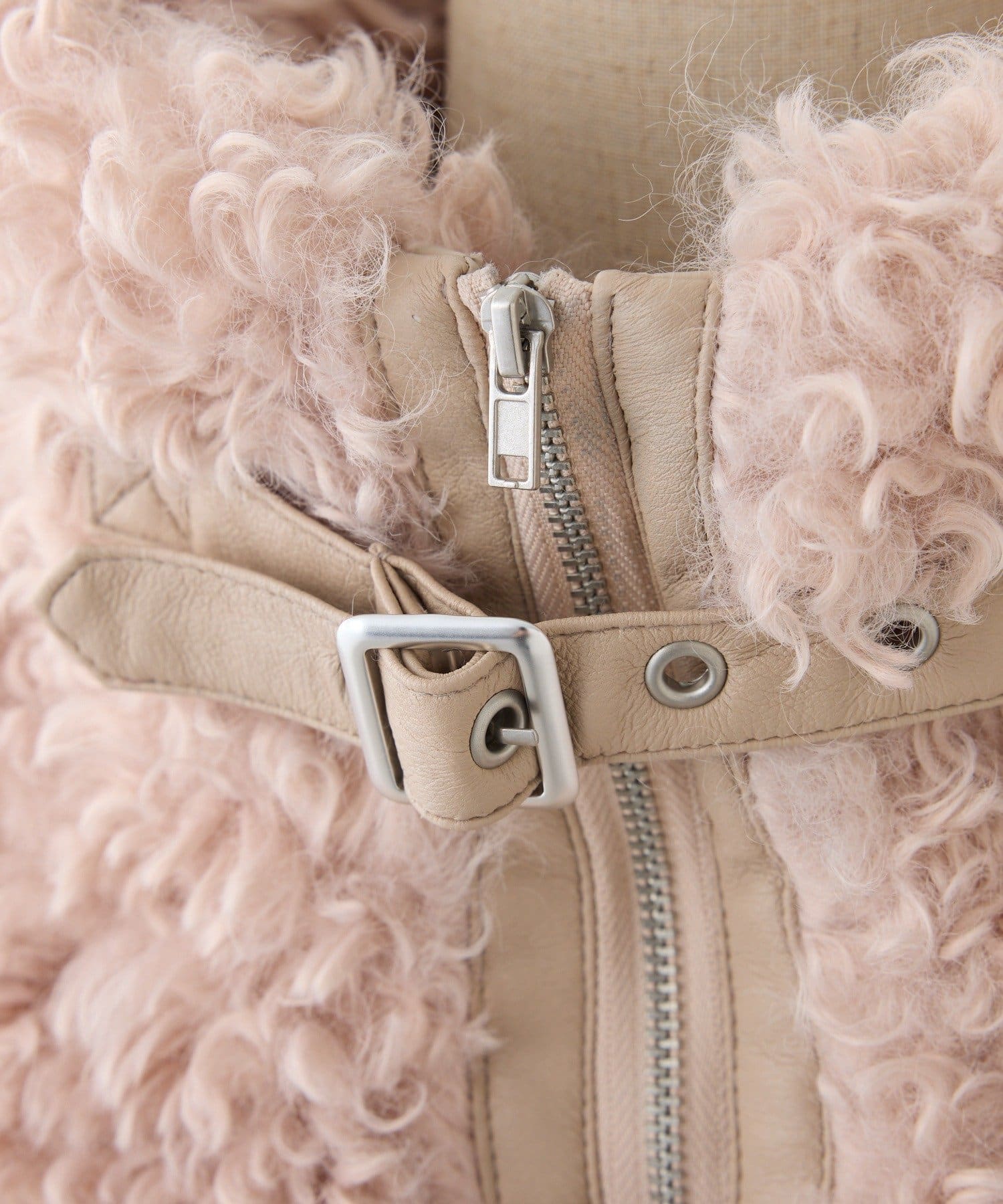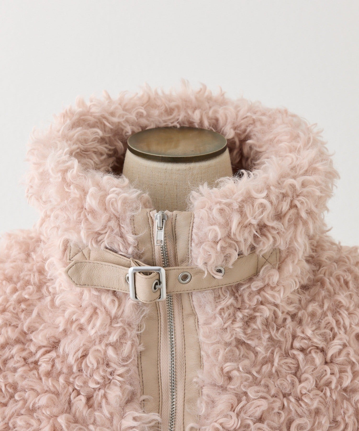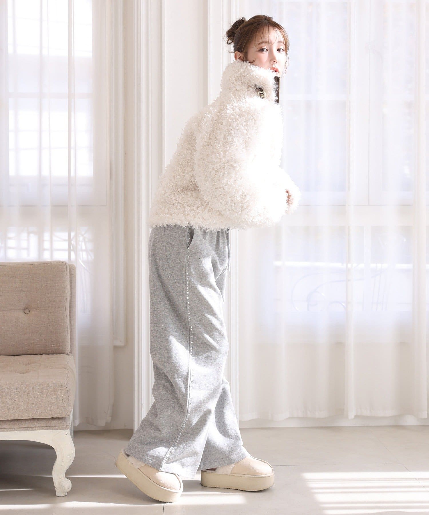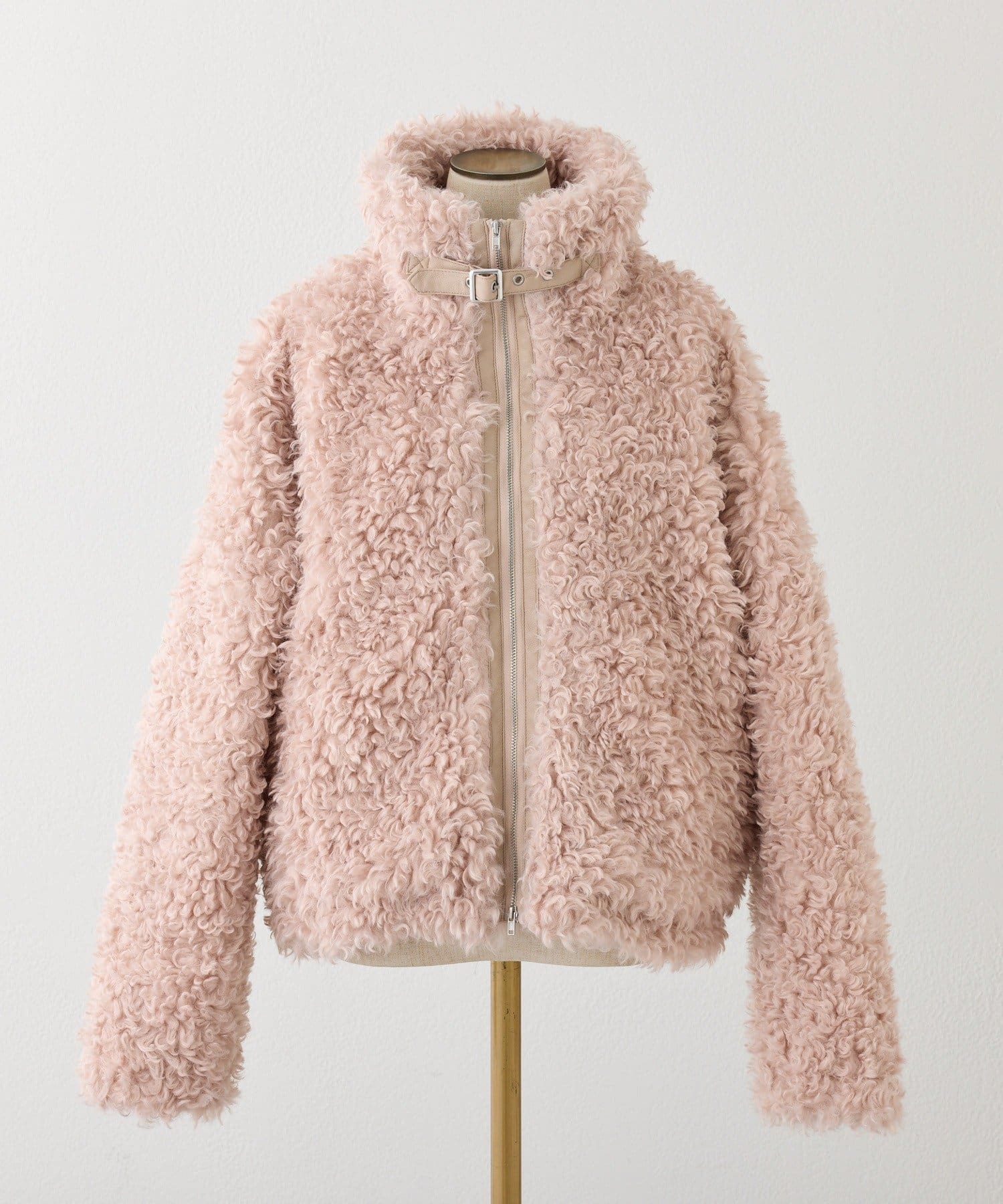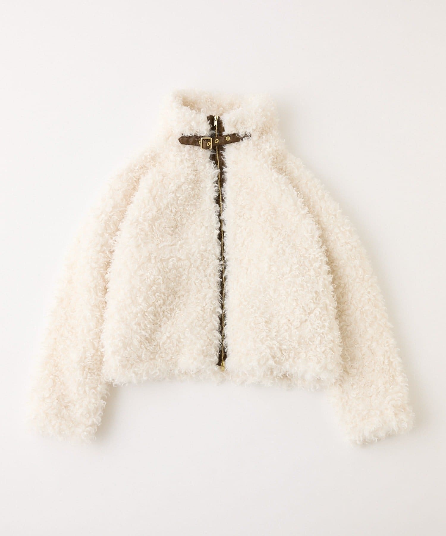 ふわふわのプードル素材で仕立てたショート丈コート。