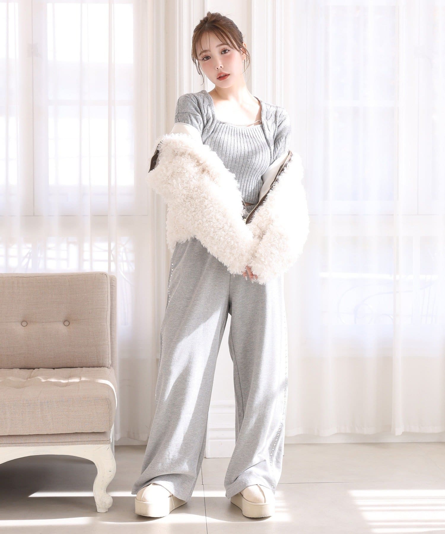 コンパクトな丈感で重たくならず、羽織るだけで冬らしい可愛さをプラス。