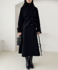 上品な印象になるステンカラーコートは、フレアスカートやワンピース合わせがオススメ。
