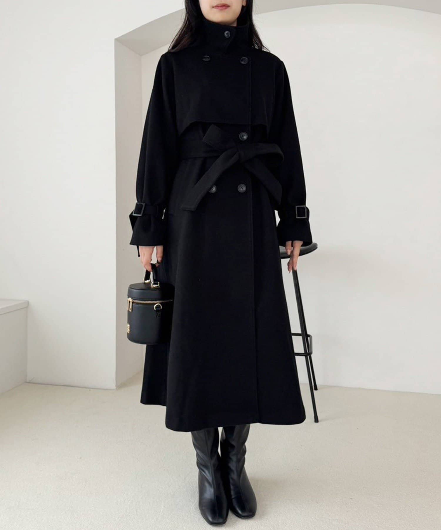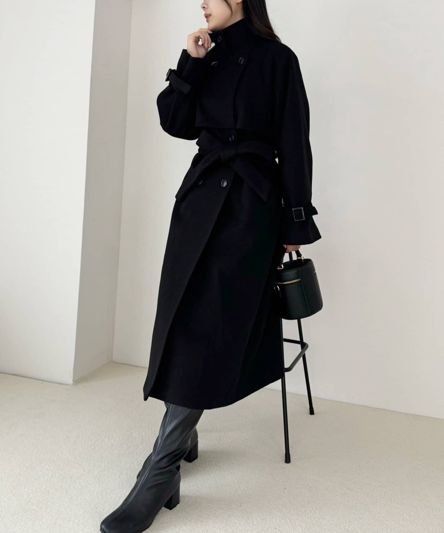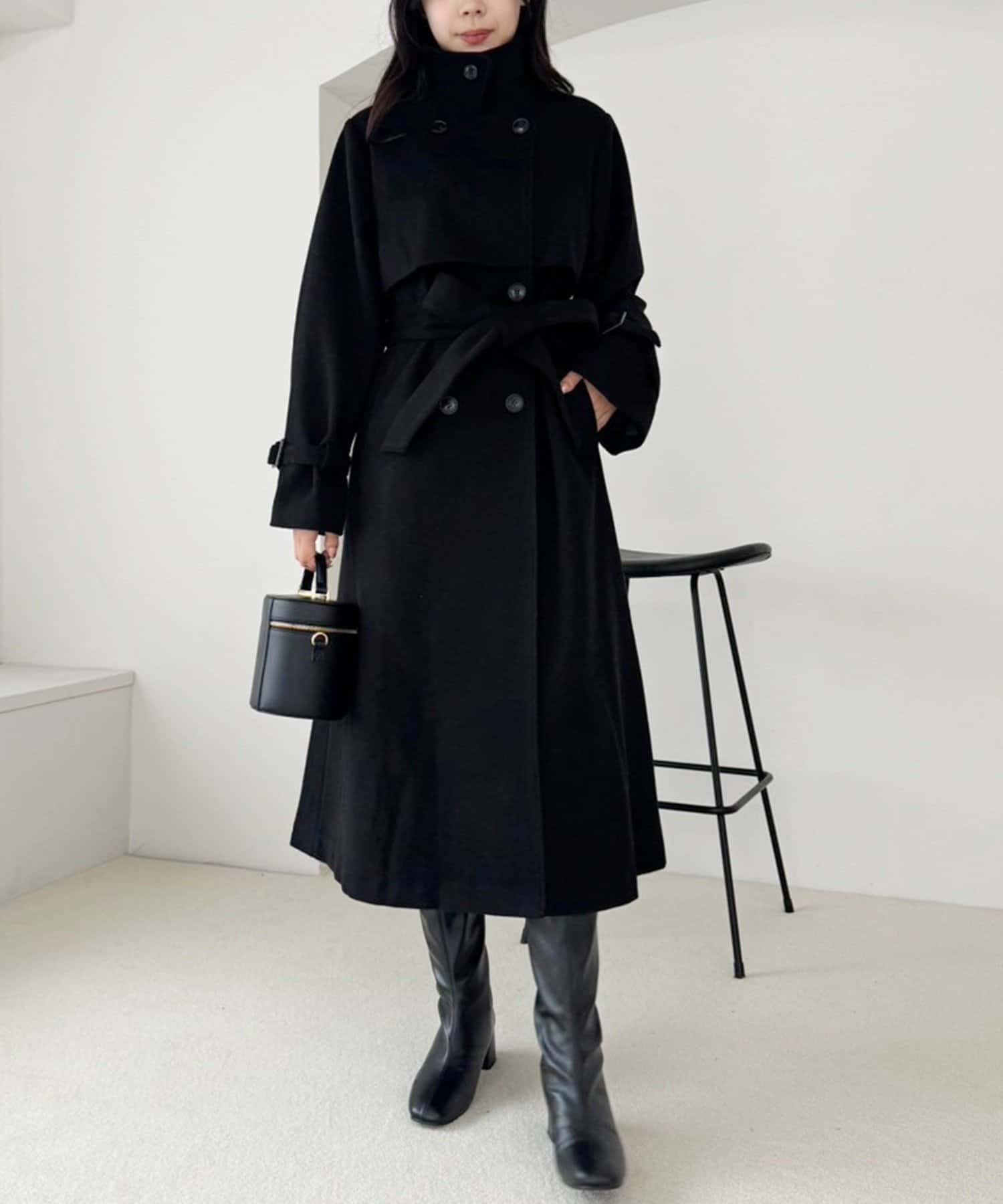 又、ミニボトムなどと合わせてコートを閉じて着ていただいて、