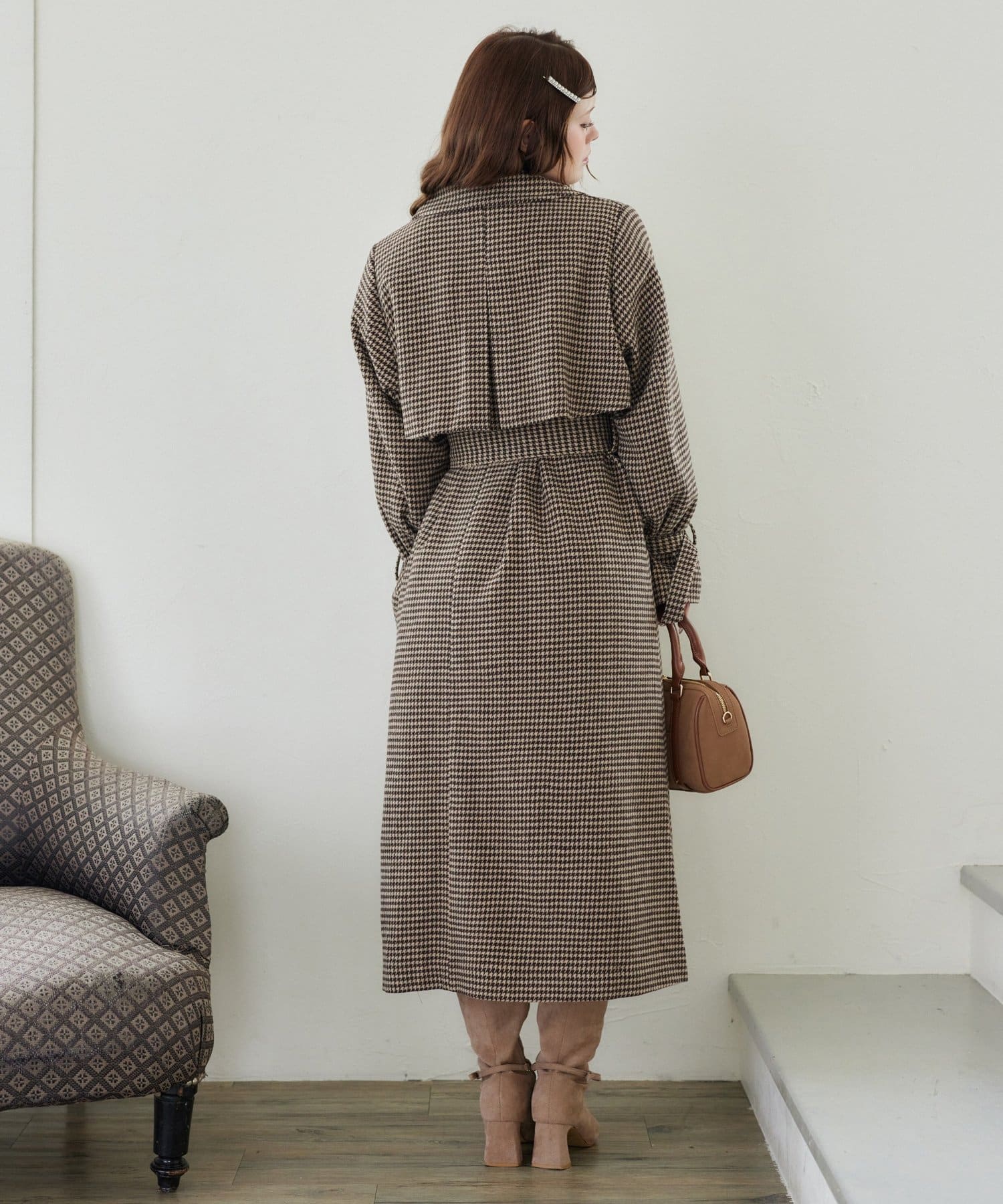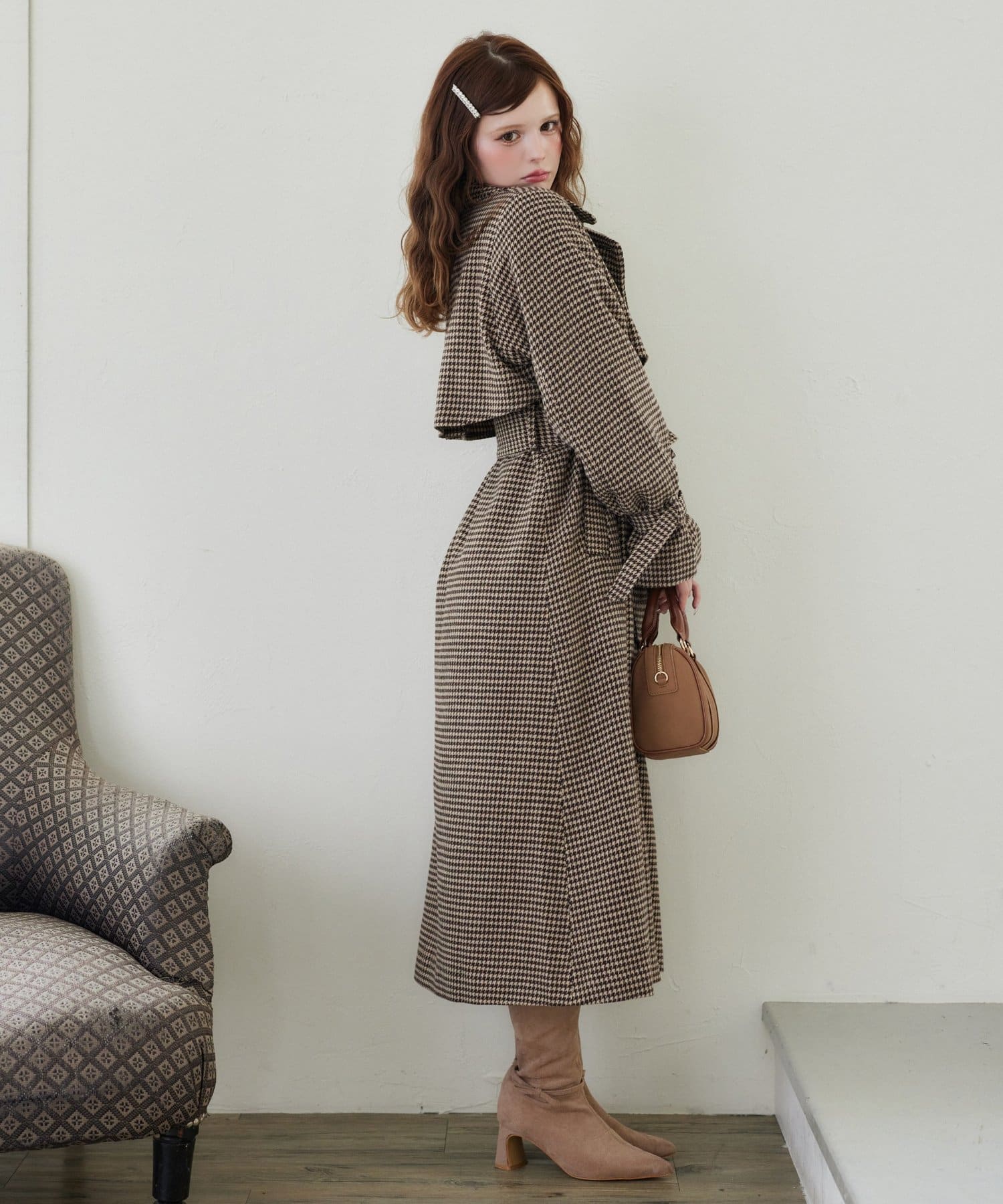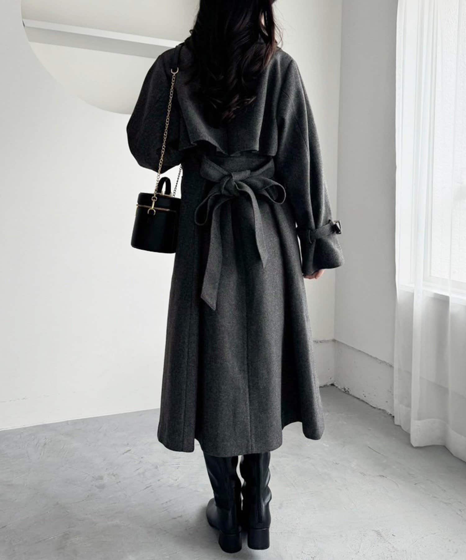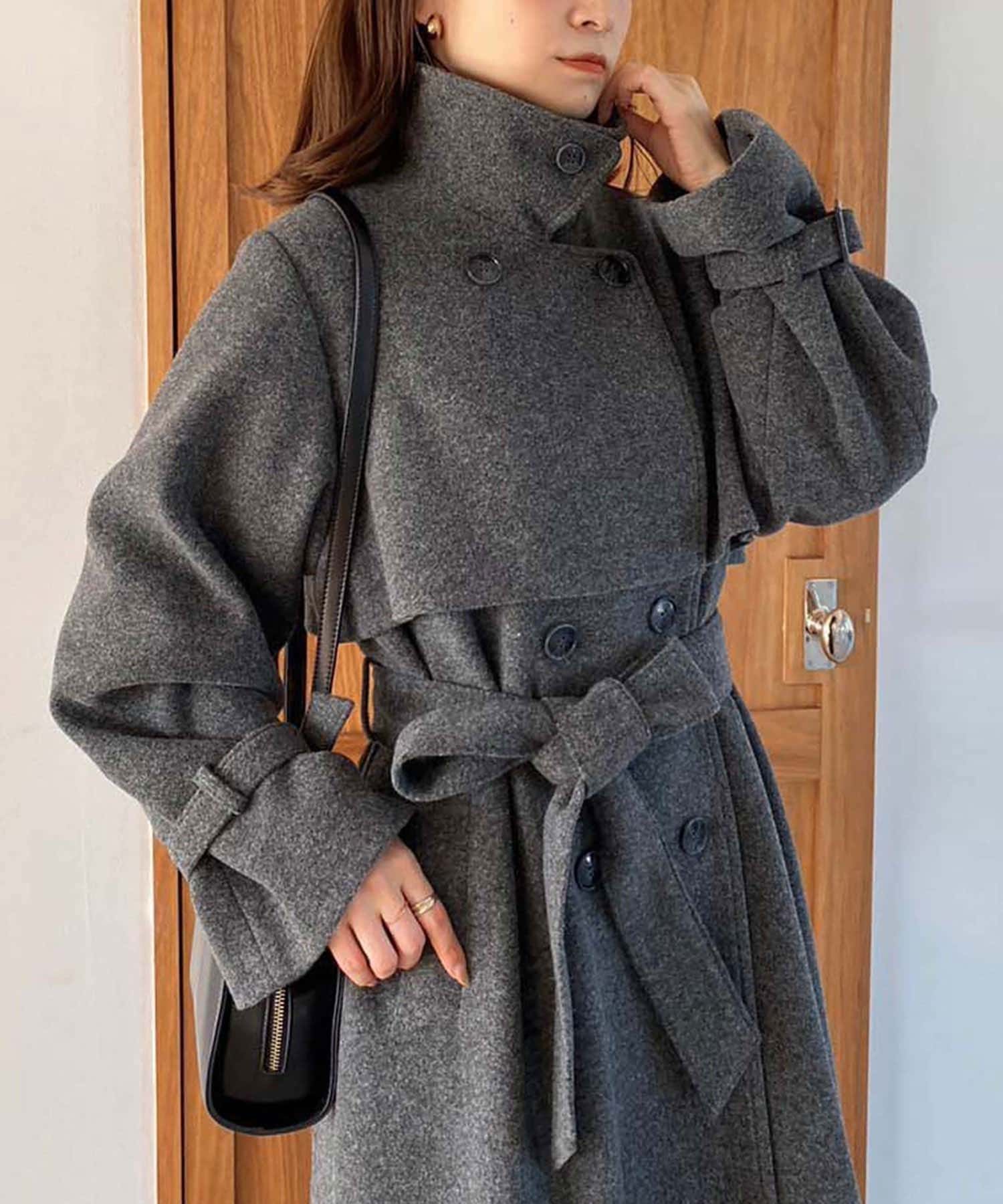 上品な印象になるステンカラーコートは、フレアスカートやワンピース合わせがオススメ。