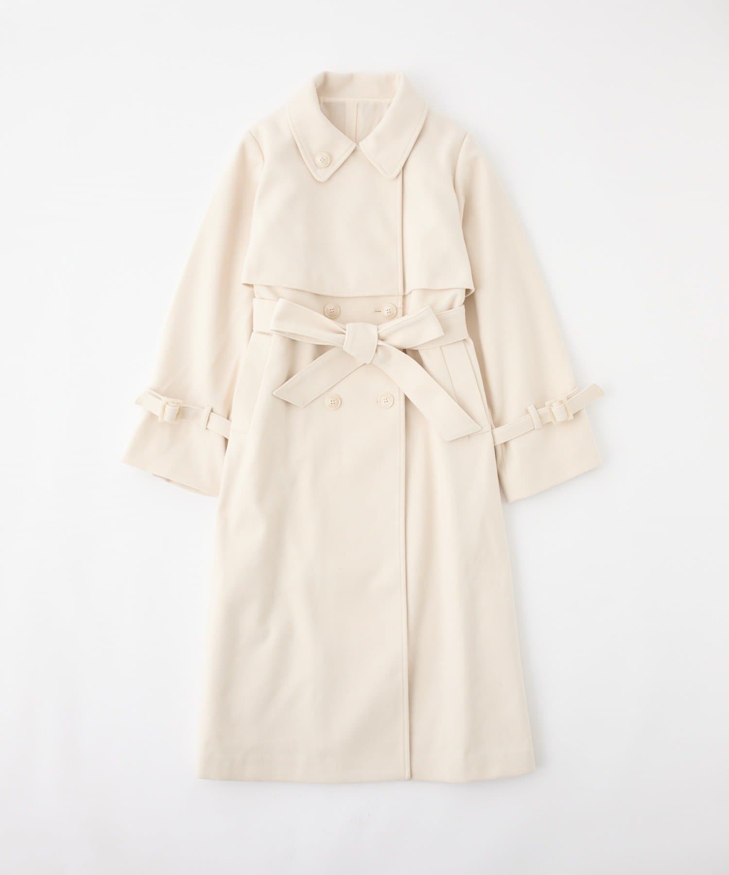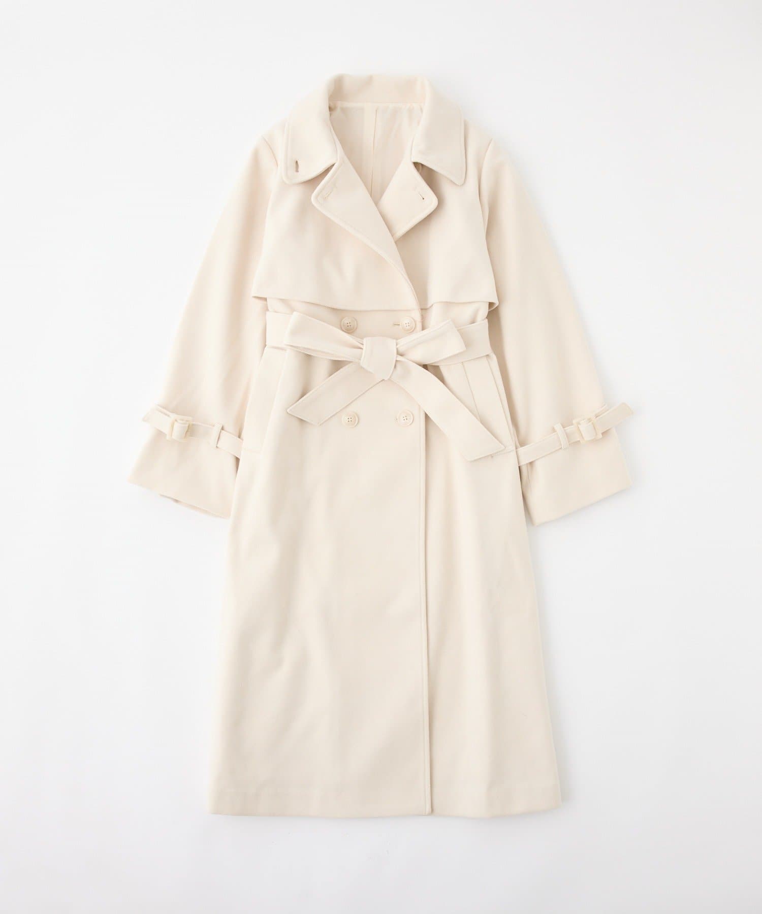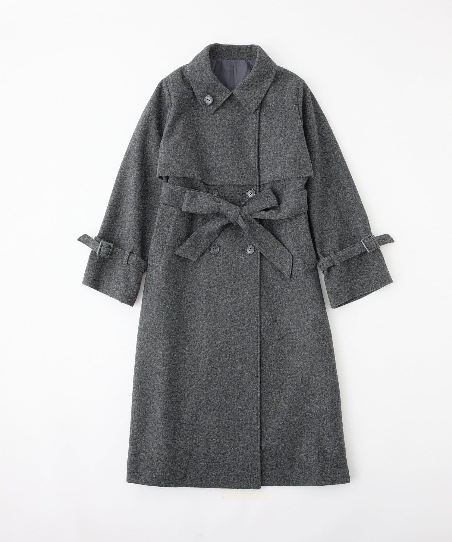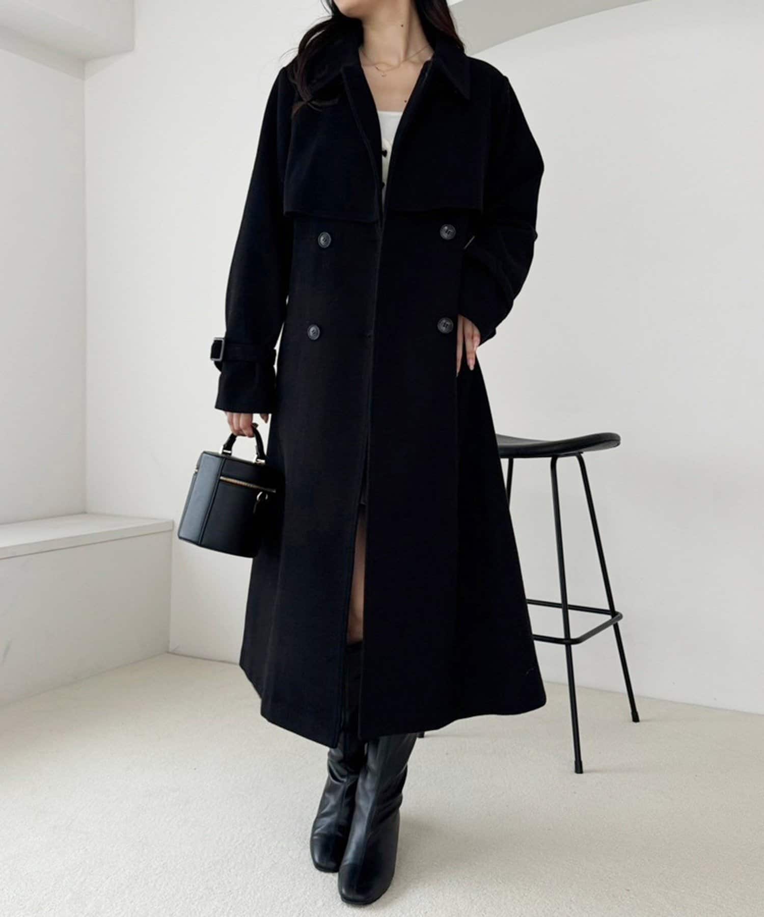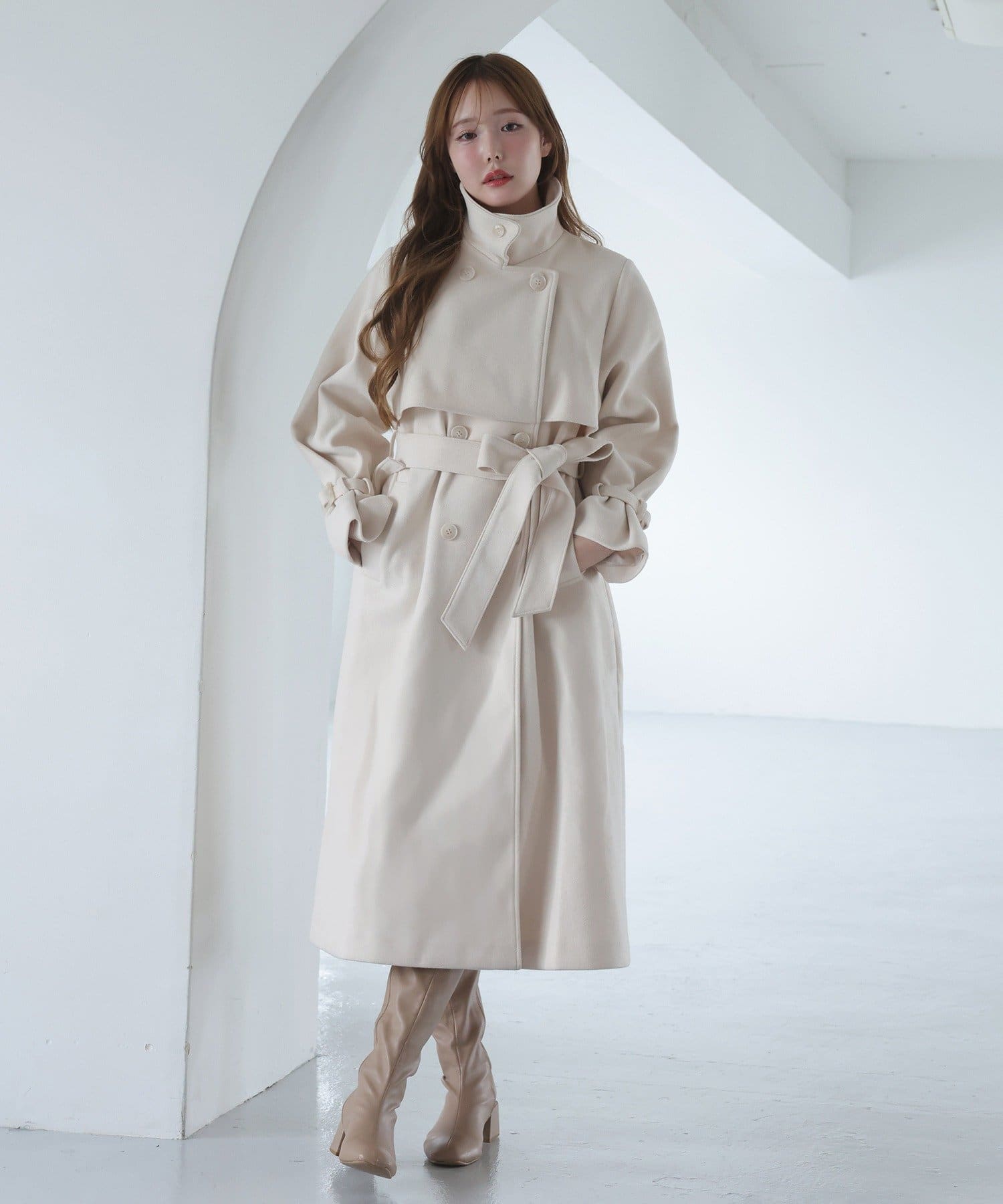 上品な印象になるステンカラーコートは、フレアスカートやワンピース合わせがオススメ。