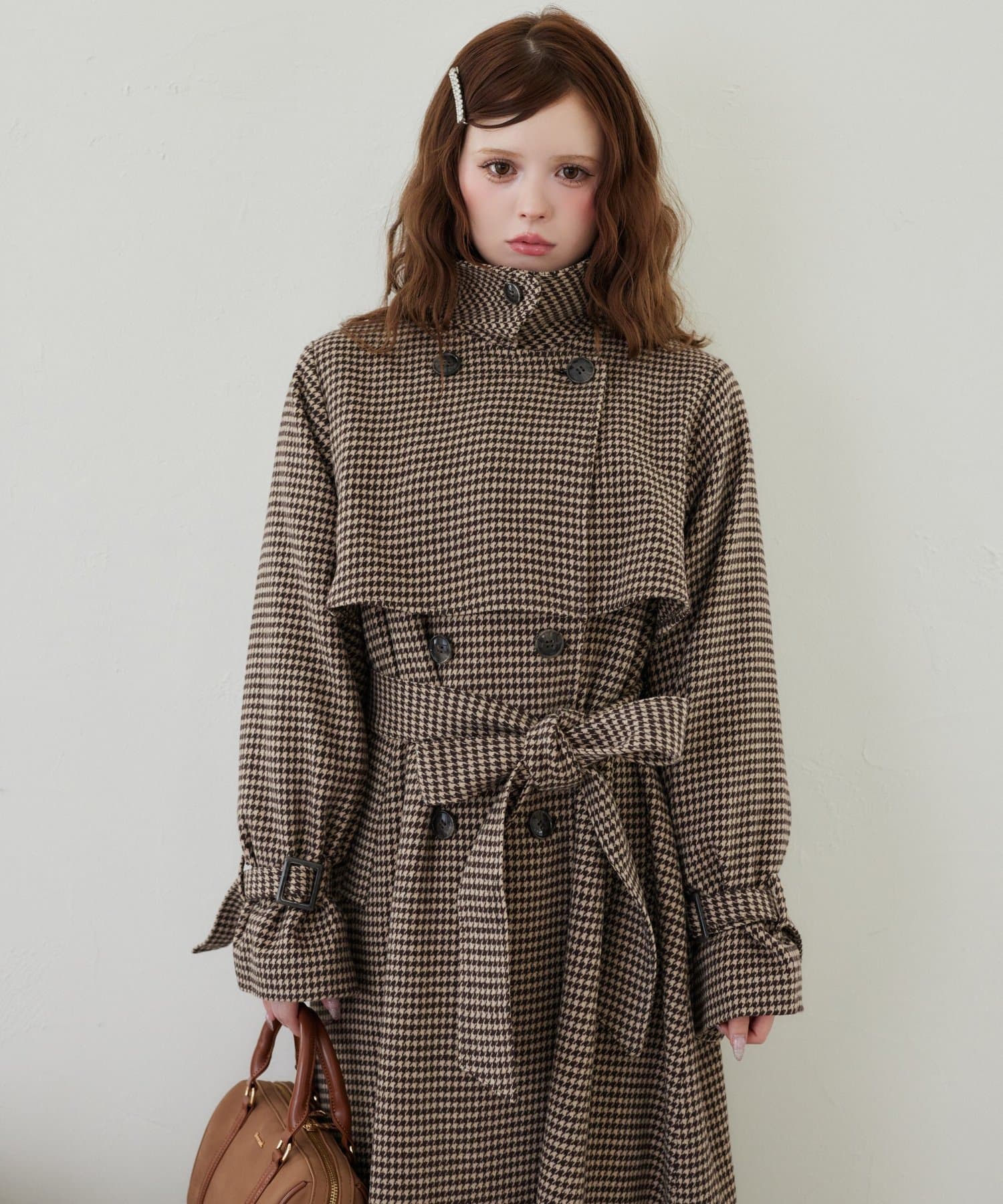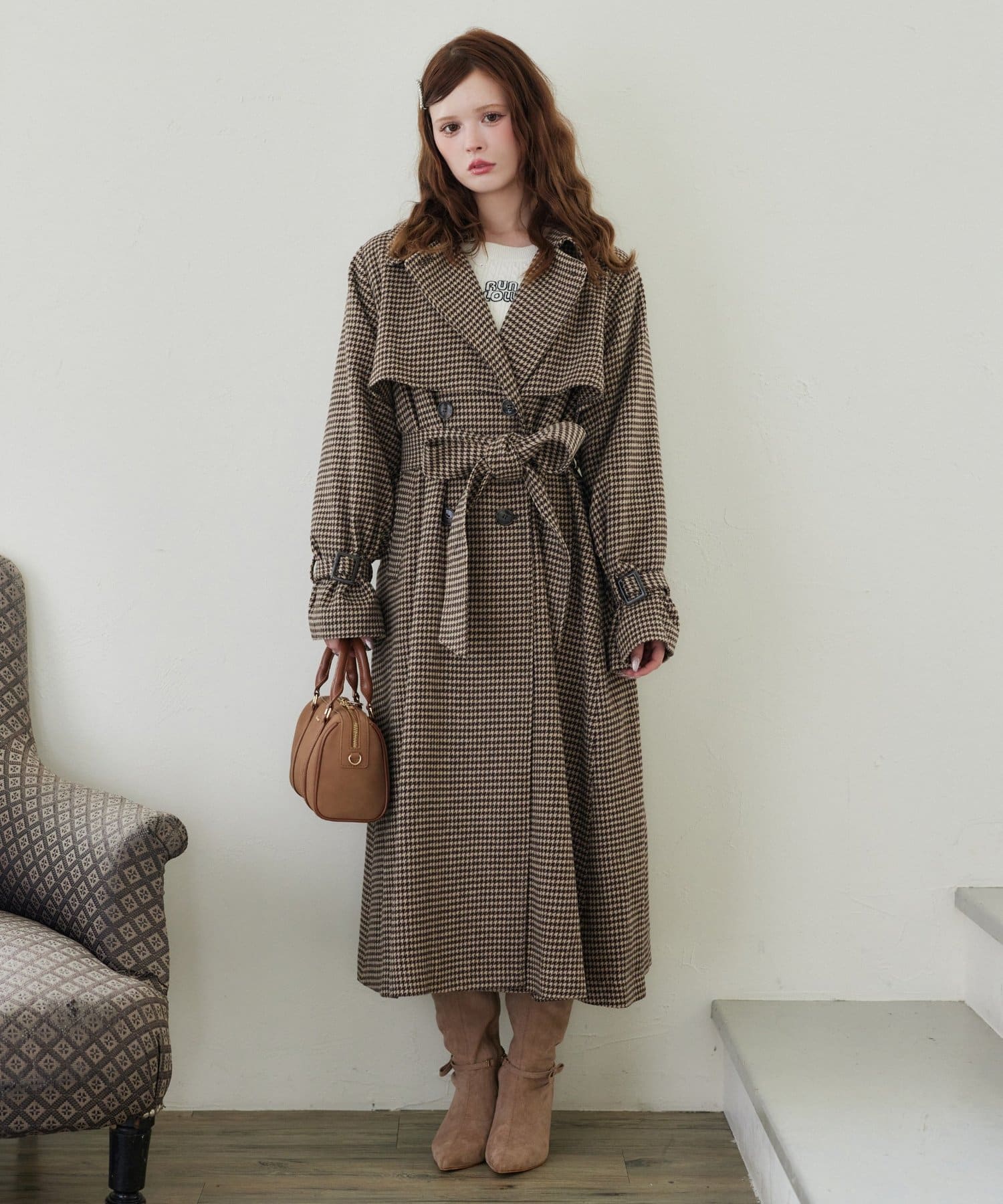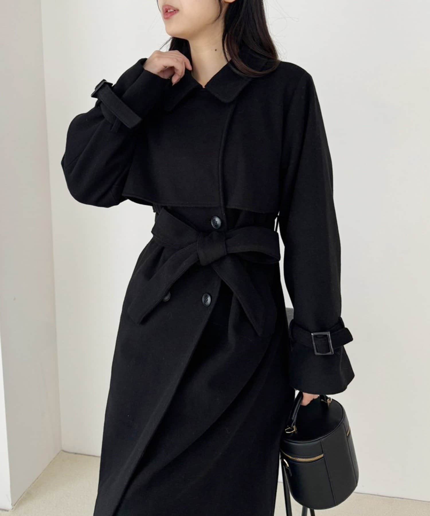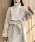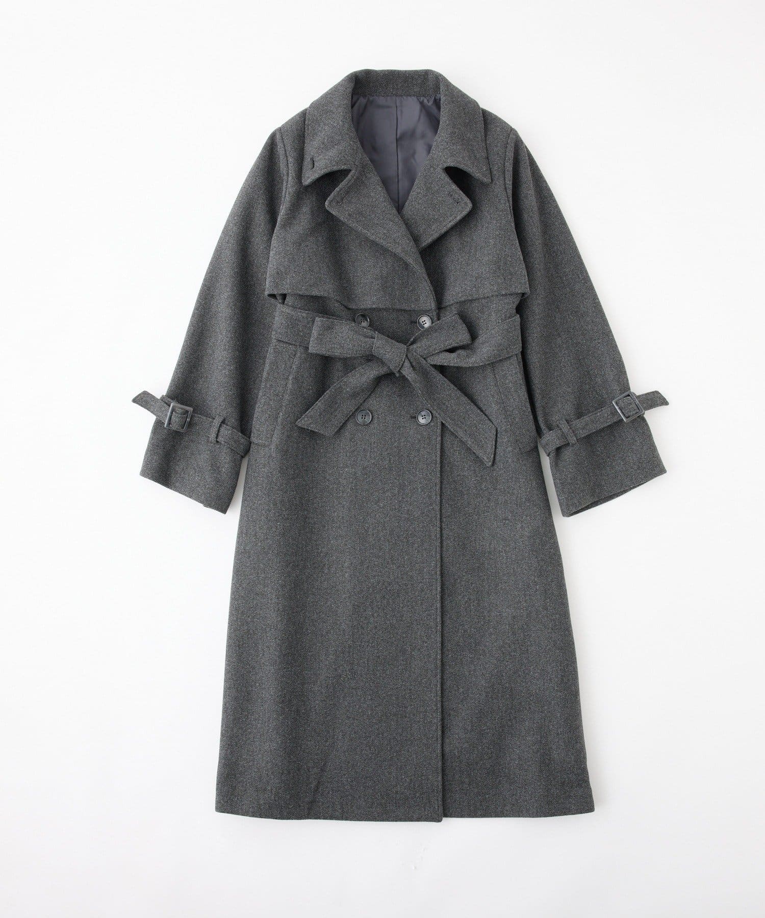 上品な印象になるステンカラーコートは、フレアスカートやワンピース合わせがオススメ。