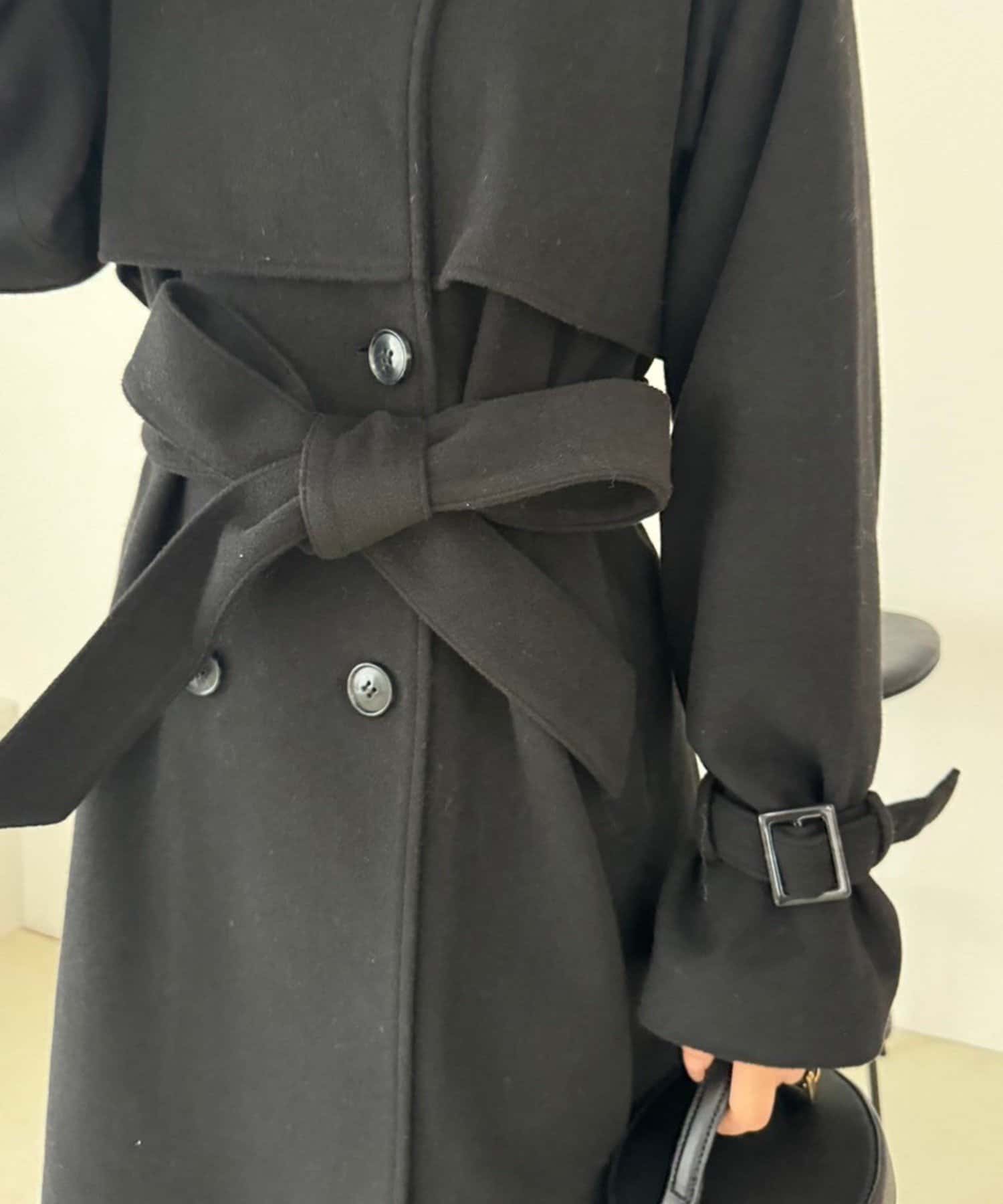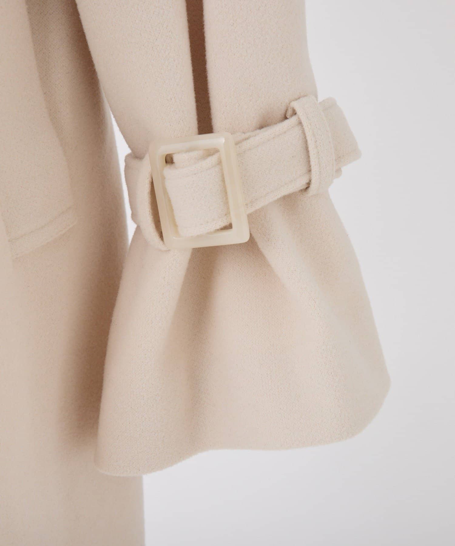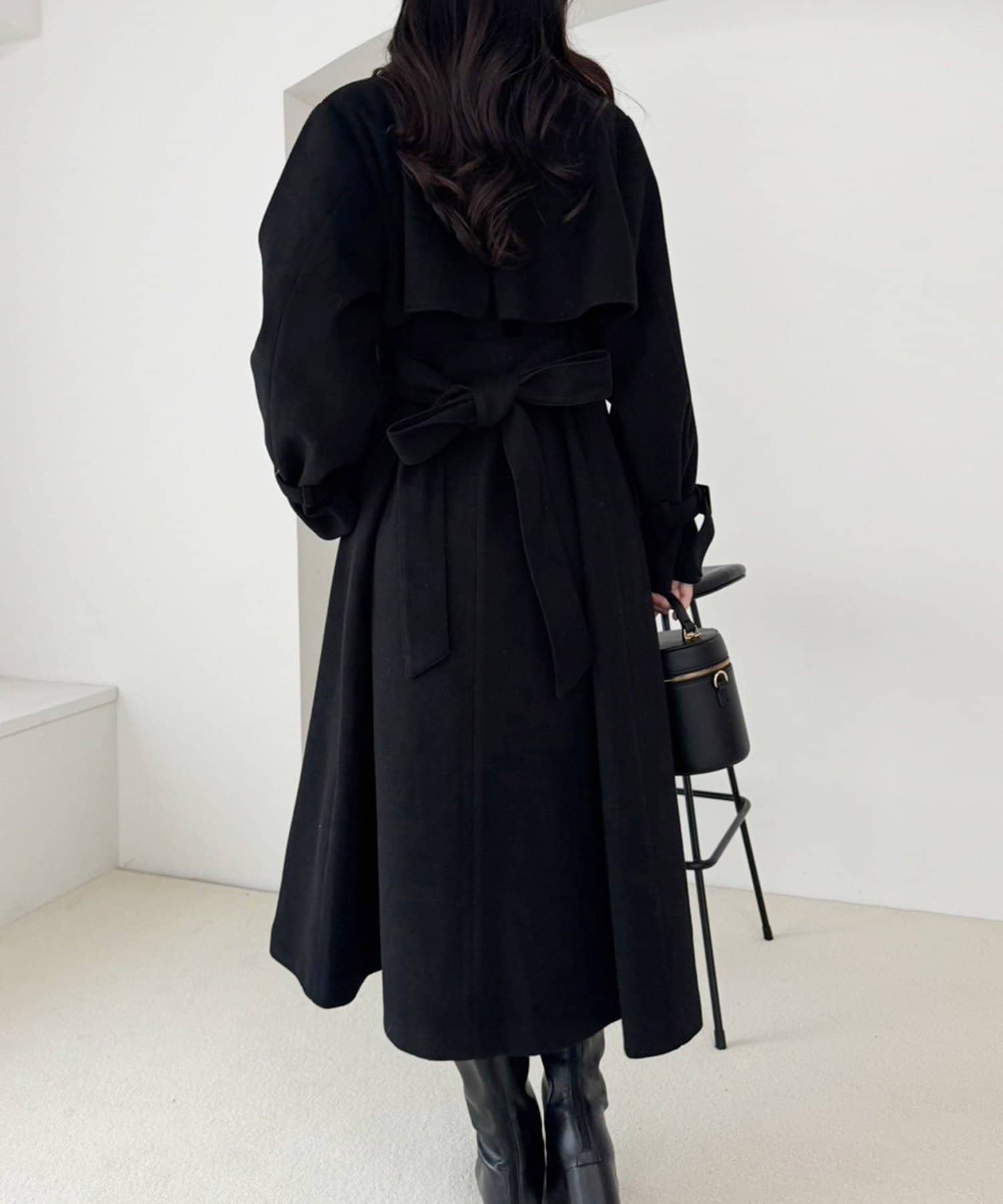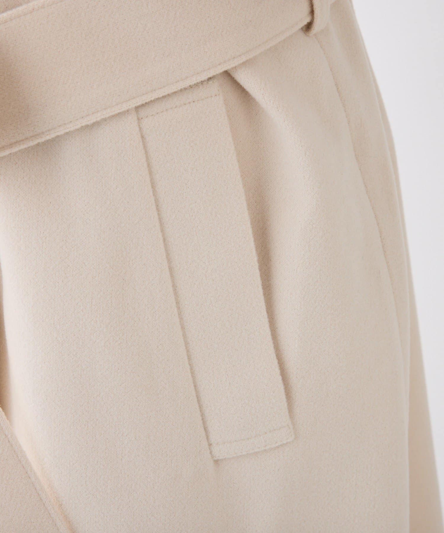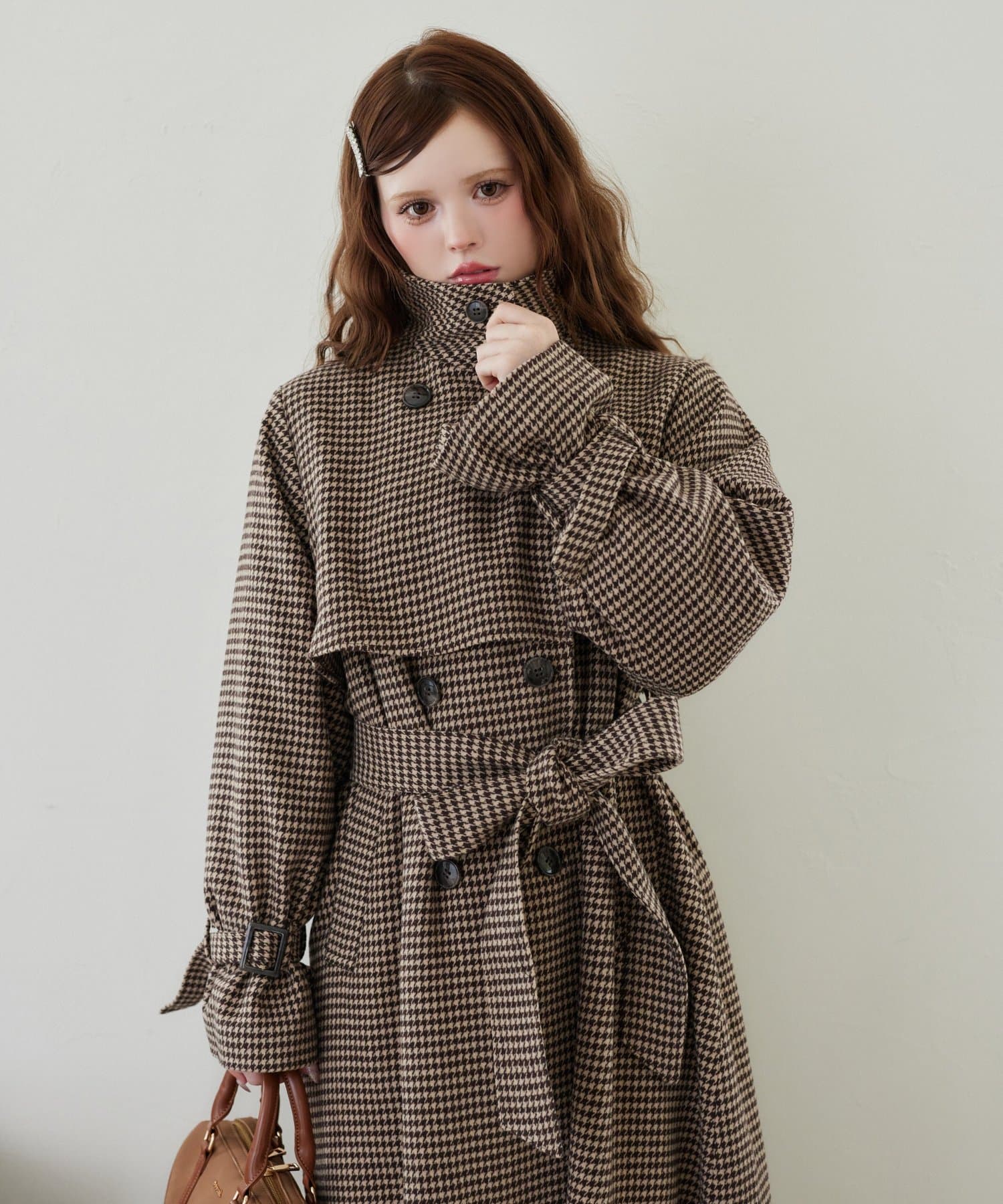 上品な印象になるステンカラーコートは、フレアスカートやワンピース合わせがオススメ。