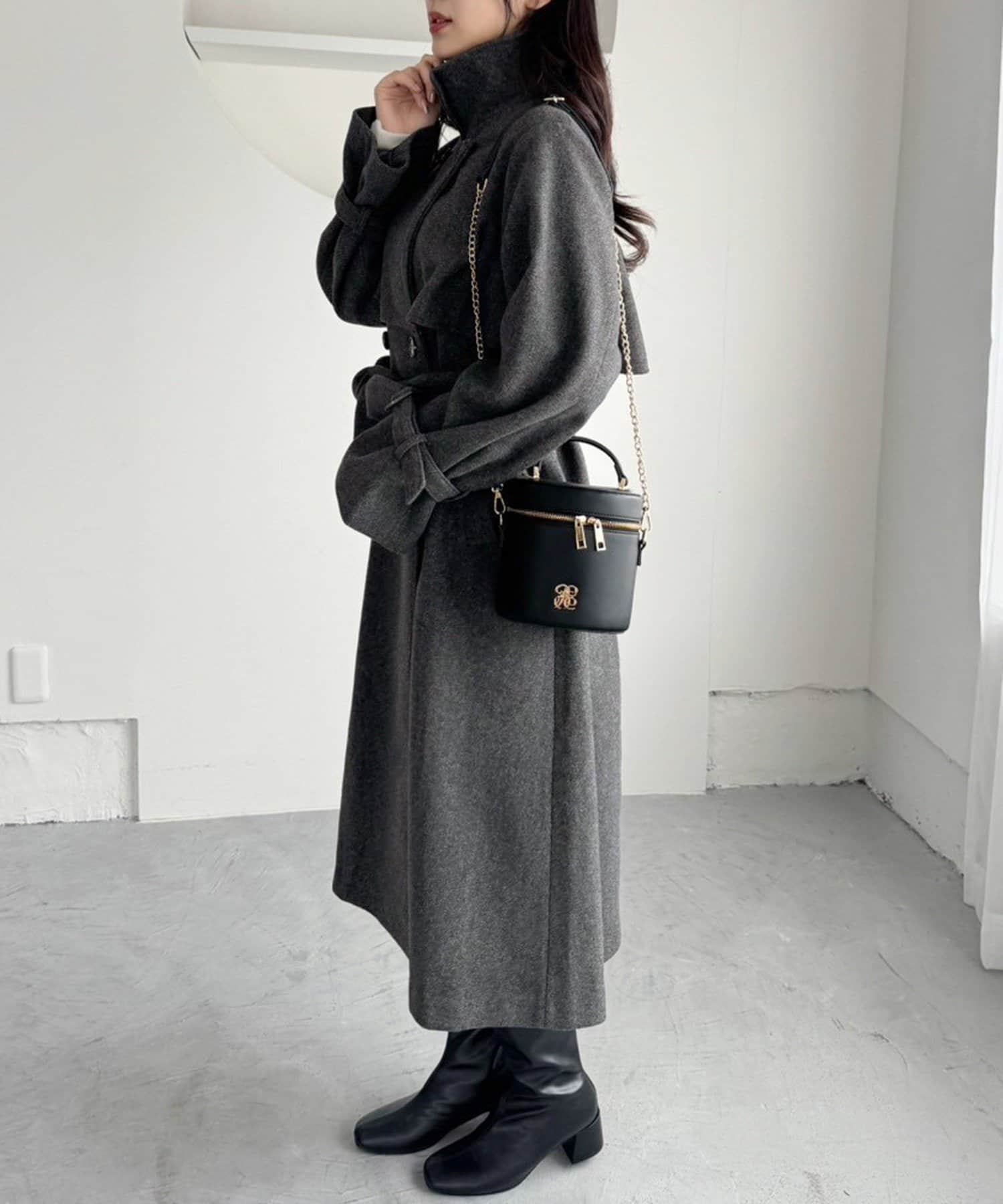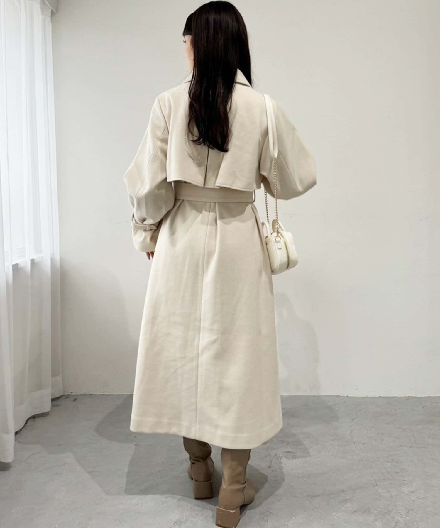 又、ミニボトムなどと合わせてコートを閉じて着ていただいて、