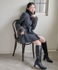 リボンが女性らしいシルエットを演出してくれるミドル丈コート。