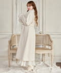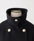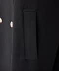 フロントはWボタン仕様でクラシカルな印象に仕上げ、ウエストのリボンでシルエットの調整も可能。