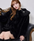 全体がふわふわのファー素材で仕立てられた、シーズンムードたっぷりのミドルコート。