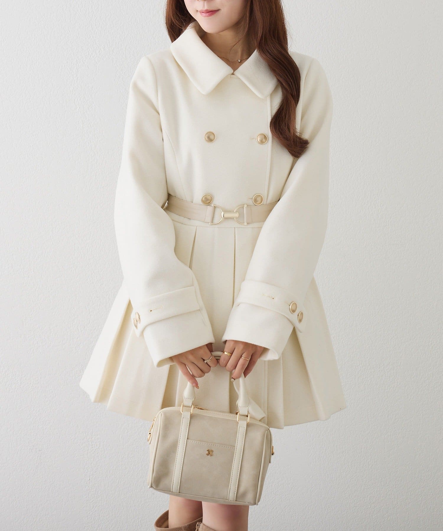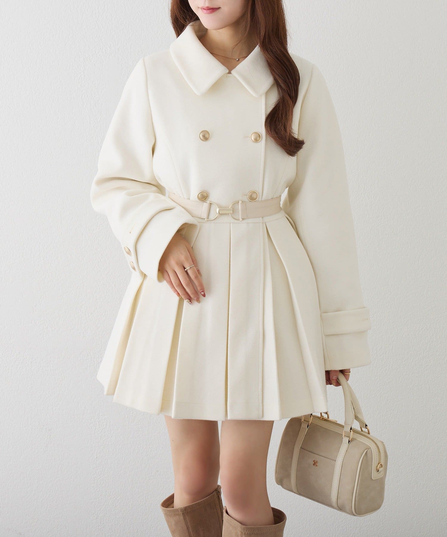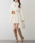タイトトップス×ミニスカートで、コートのプリーツが映えるガーリーコーデ