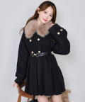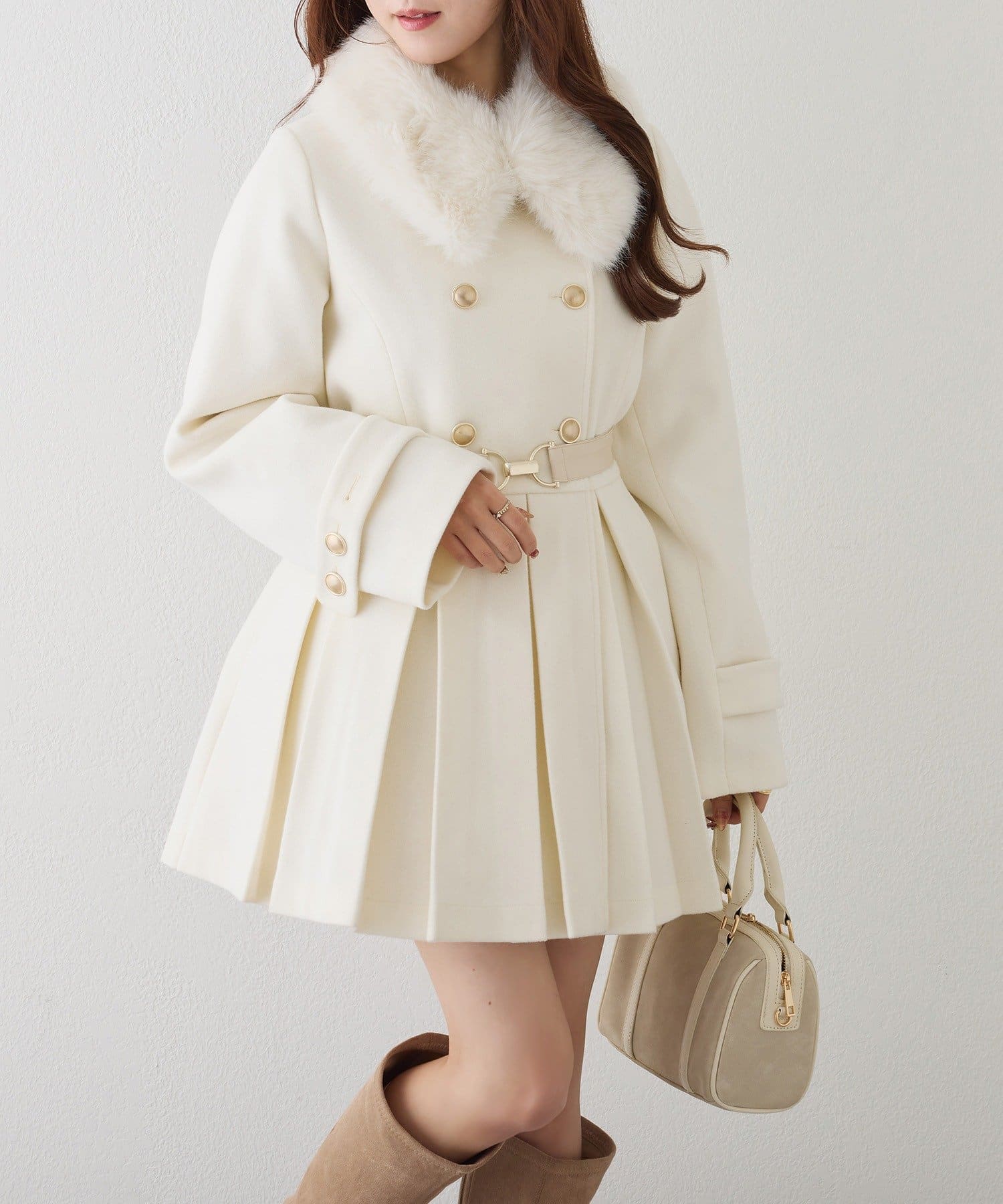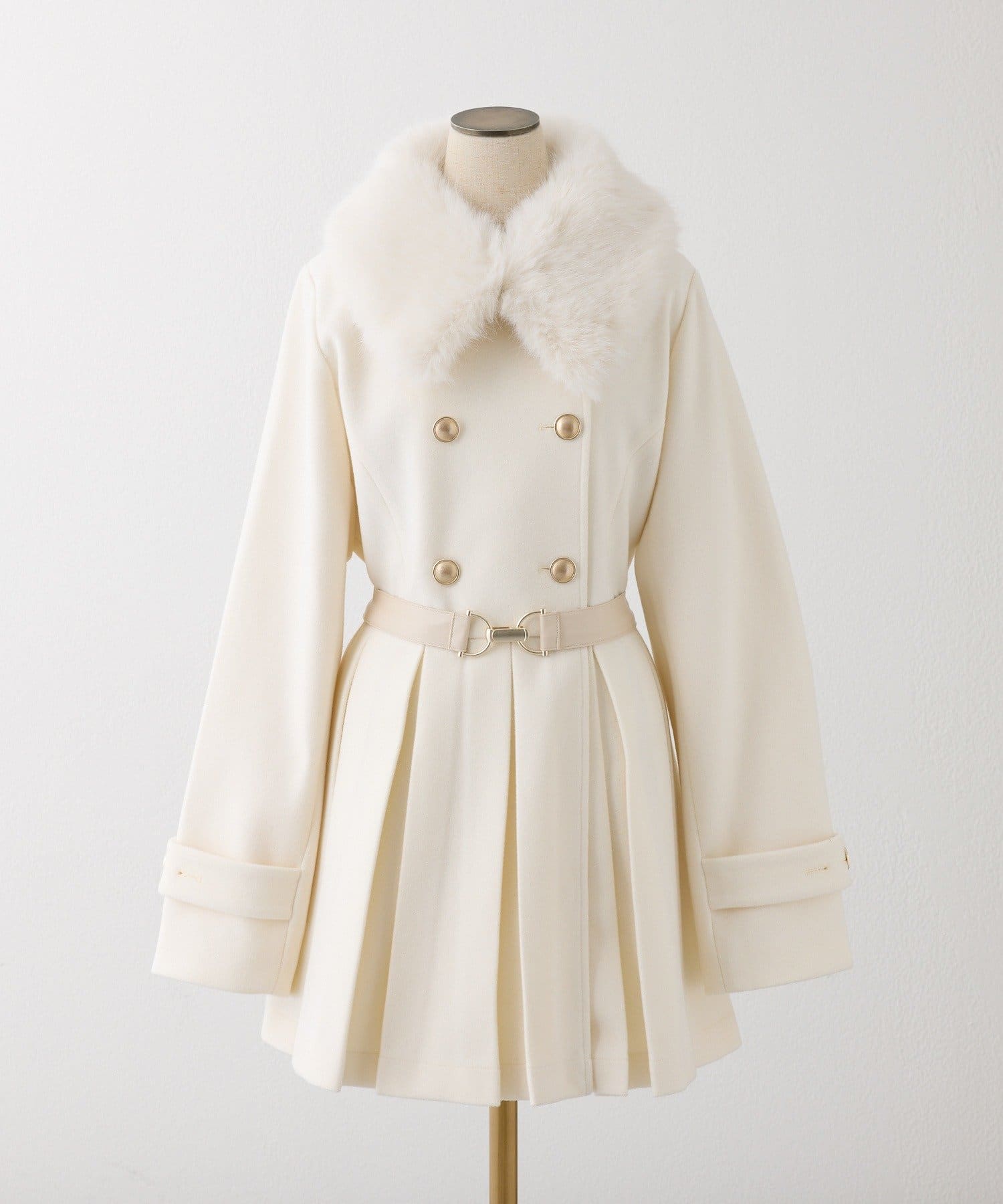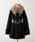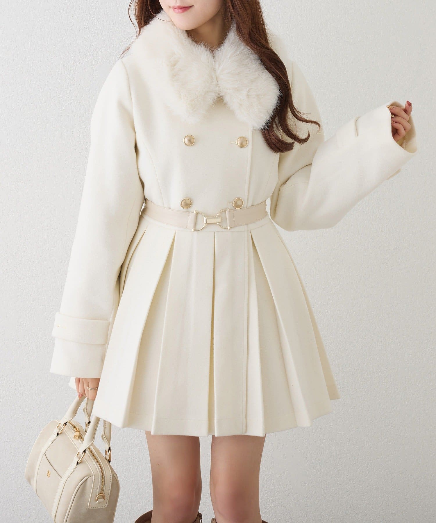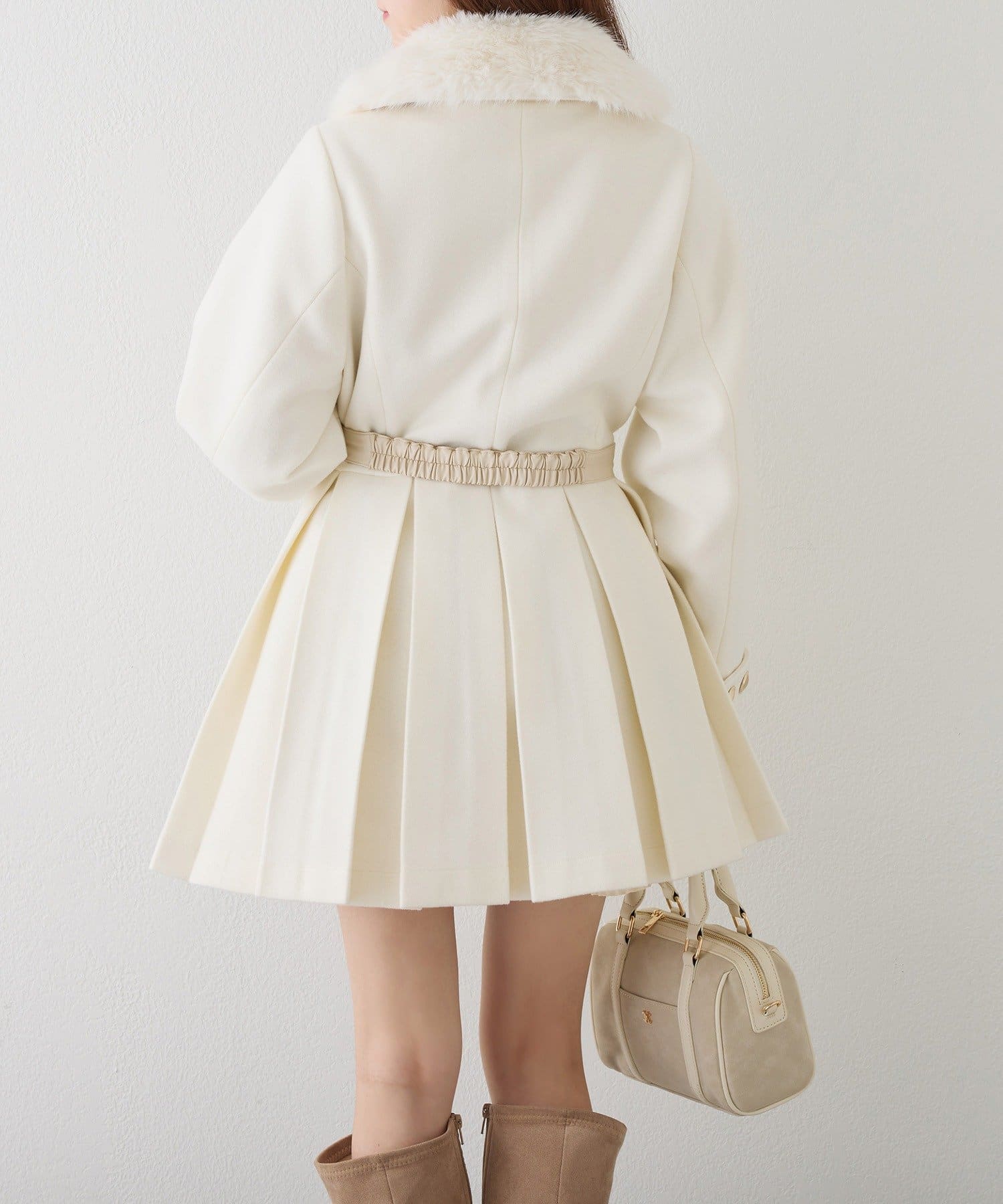 襟元にはふわふわのファーをあしらい、顔まわりを華やかに見せてくれます。