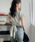 トップスはコンパクトなクロップド丈で足長効果を演出します。